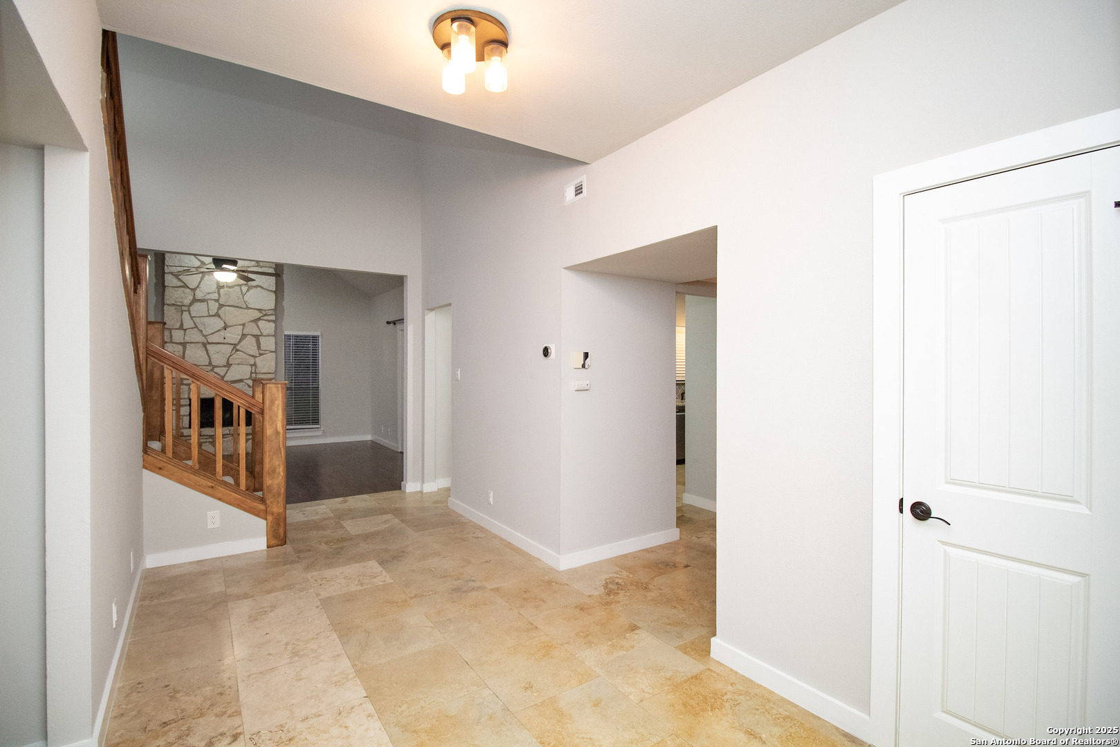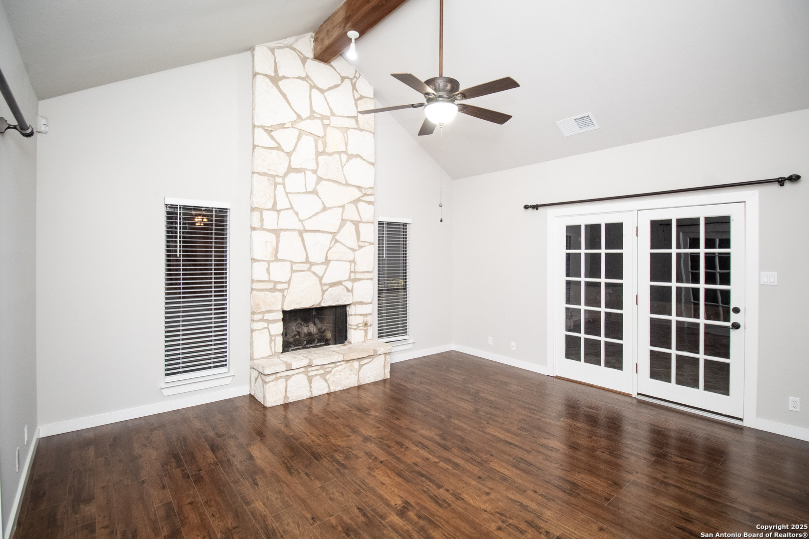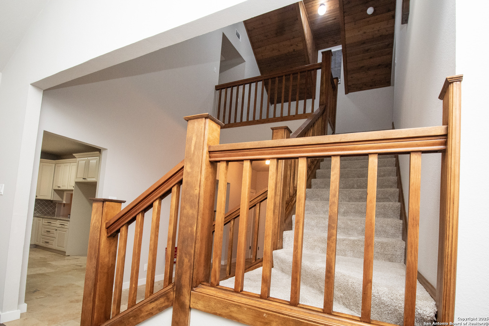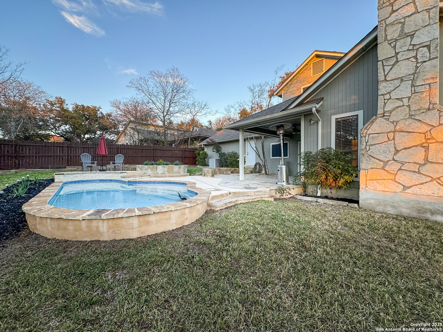 This home highlights numerous attributes that make it a standout property in the community. This residence boasts great curb appeal and features a beautiful large covered front porch perfect for relaxation or entertaining guests. Inside, you will find many custom elements, including a stunning wood ceiling, a skylight, and elegant dual French doors in the living room that open to two covered porches, further enhancing the entertaining space. Additionally, the home includes a heated pool, freshly built in 2022, and has recently renovated master and upstairs bathrooms. The property also comes equipped with a sprinkler system and is surrounded by many established oak trees. Notably, the home has a new roof and a brand-new water softener, ensuring its well-maintained status. Situated conveniently near 1604, IH 10, UTSA, La Cantera Mall, and an HEB coming soon, it is in an excellent location within a quiet neighborhood. This is a unique opportunity to enjoy a private backyard and a comfortable Texas country-living experience.