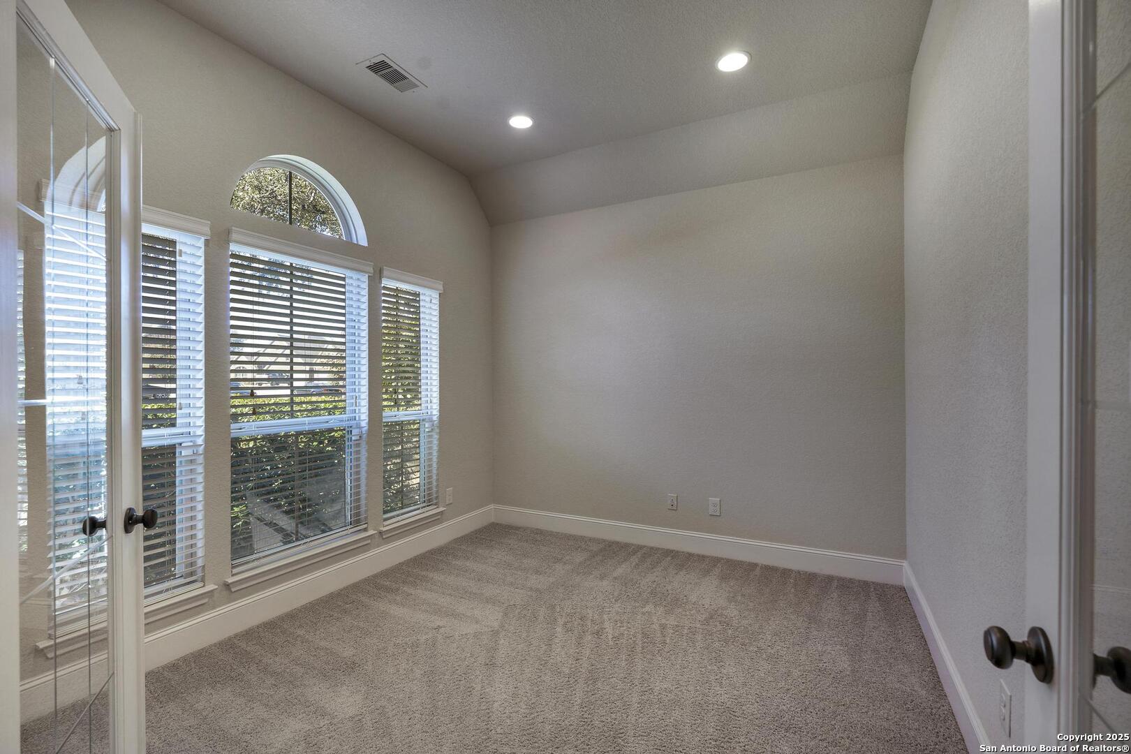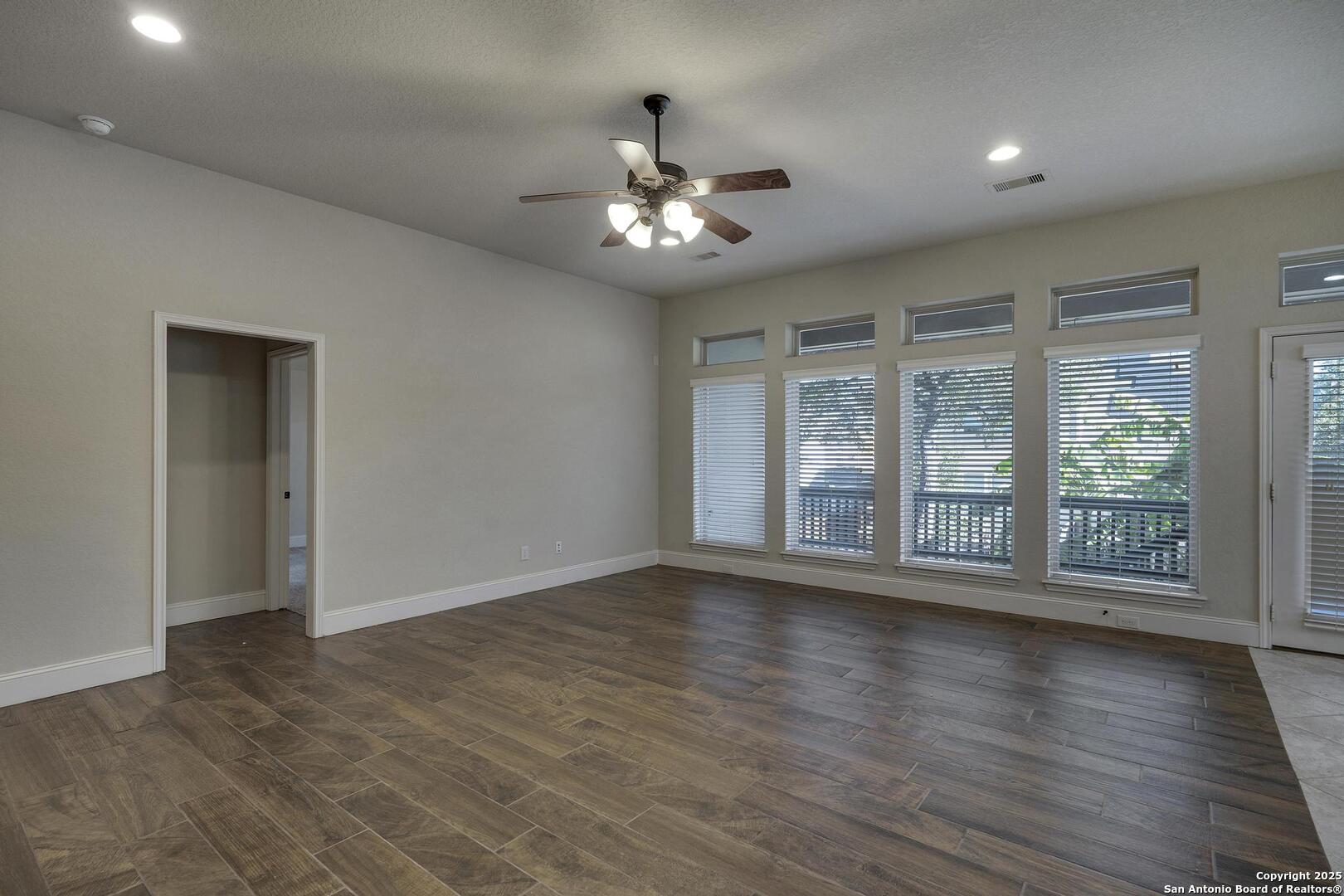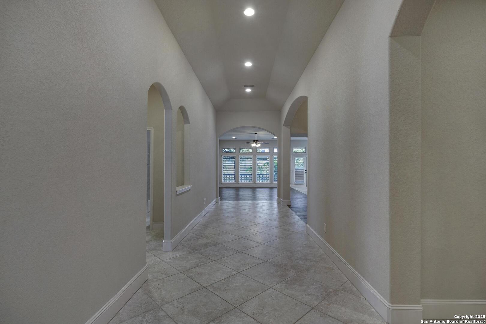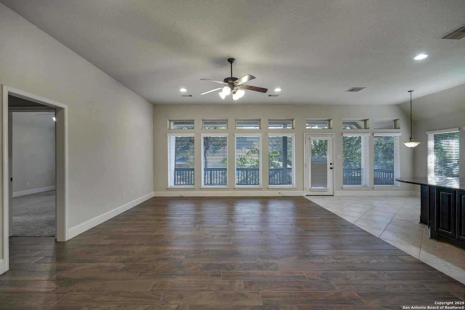 Stunning 4 bed 3 bath one story home with study, media room, & guest suite in highly sought after Bella Vista subdivision. This home looks & feels brand new. Wood tile floors in family room and dining room, with tile at entry and wet areas, and carpet in spare rooms. Very open floor plan, combined with 12' ceilings, floor to ceiling windows, oversized large kitchen, spacious dining room & covered patio scream for entertaining! Split floor plan gives ultimate privacy for guests! Tons of natural light, with large open spaces. Close proximity to highways, military bases, and shopping. Exceptional oversized, one story, Perry Home; with 3000 square feet. Don't miss the finished primary closet! This home is move in ready!