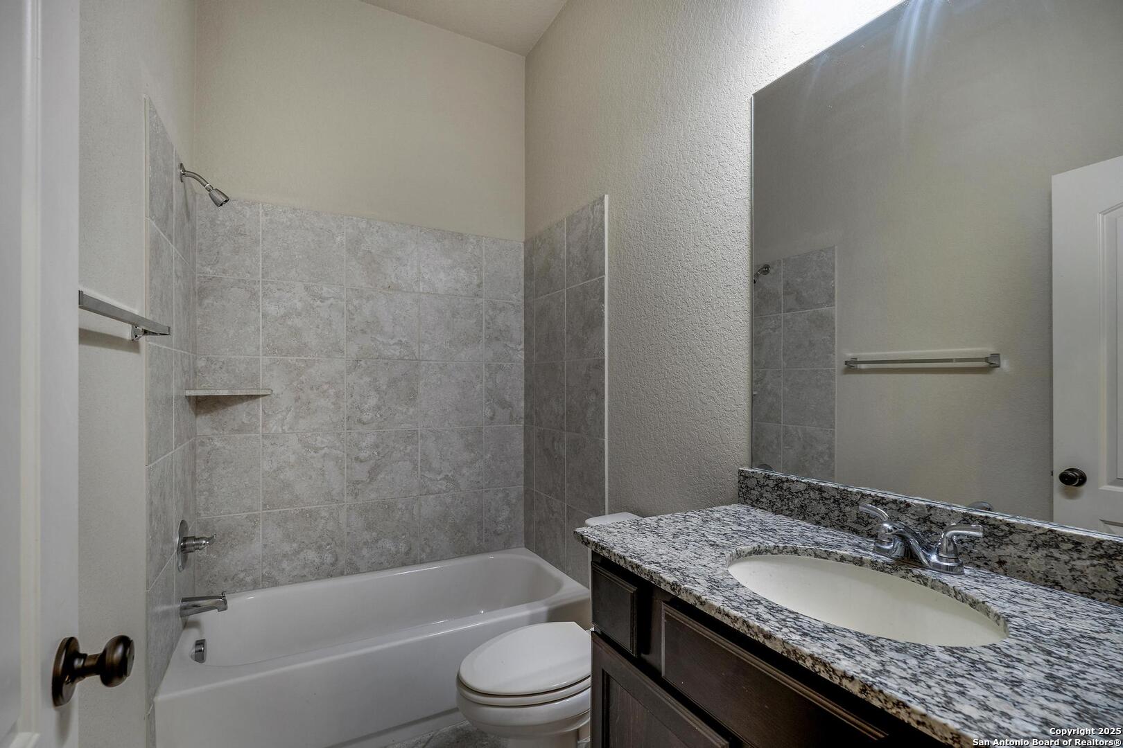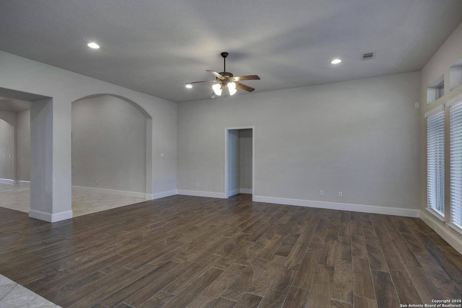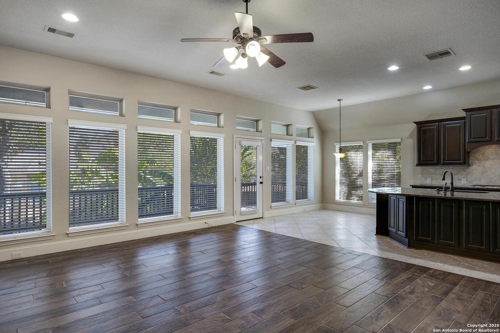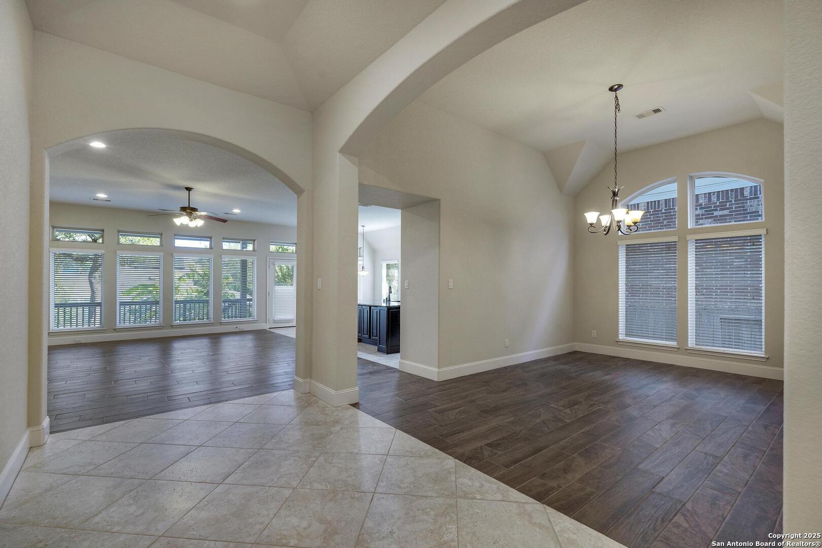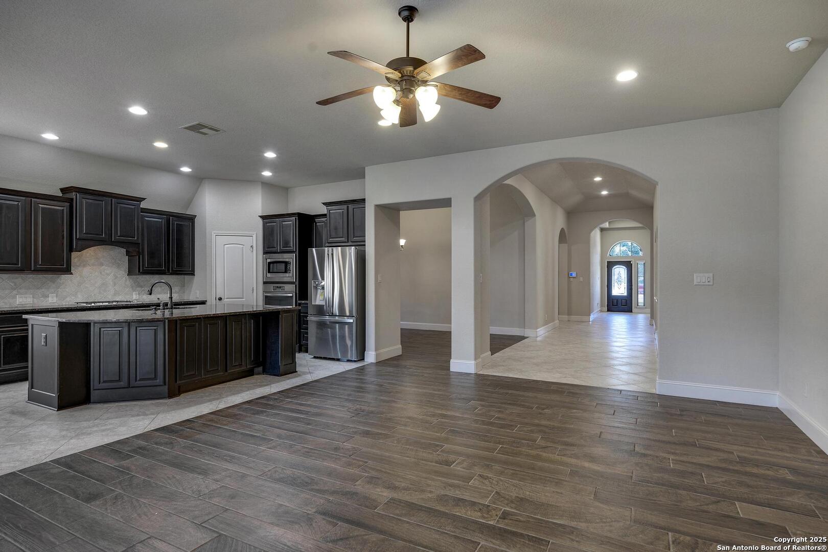 Stunning 4 bed 3 bath one story home with study, media room, & guest suite in highly sought after Bella Vista subdivision. This home looks & feels brand new. Wood tile floors in family room and dining room, with tile at entry and wet areas, and carpet in spare rooms. Very open floor plan, combined with 12' ceilings, floor to ceiling windows, oversized large kitchen, spacious dining room & covered patio scream for entertaining! Split floor plan gives ultimate privacy for guests! Tons of natural light, with large open spaces. Close proximity to highways, military bases, and shopping. Exceptional oversized, one story, Perry Home; with 3000 square feet. Don't miss the finished primary closet! This home is move in ready!