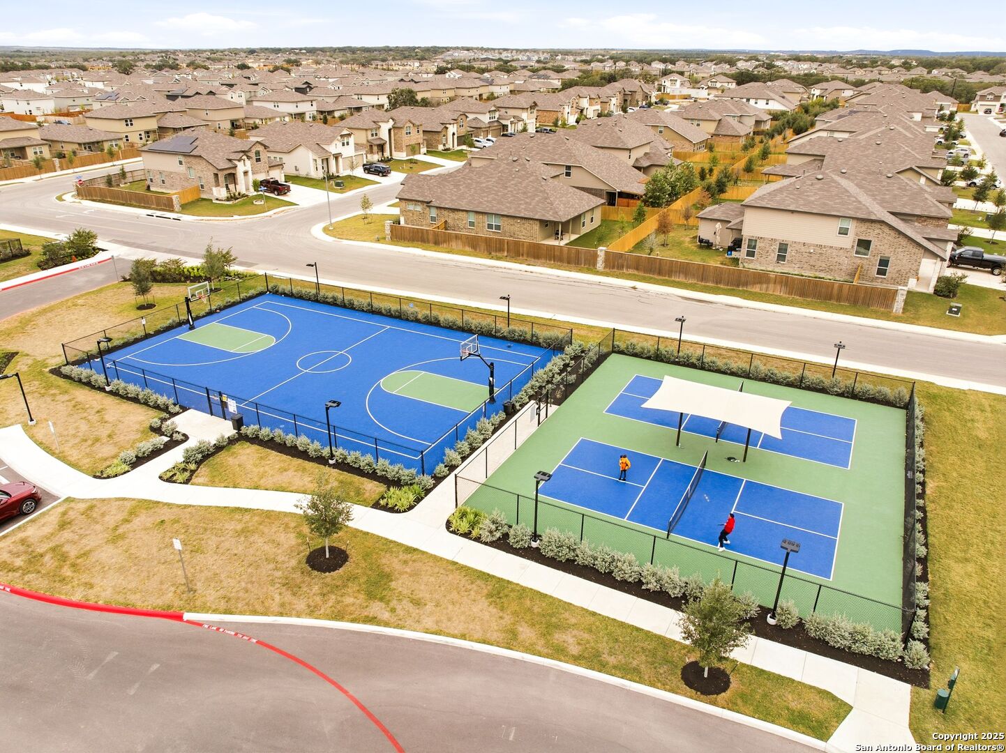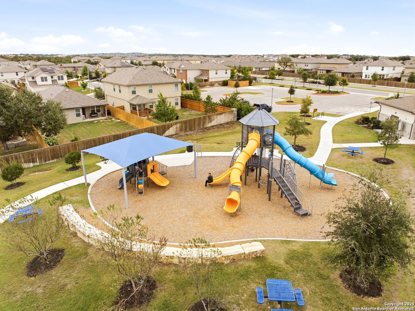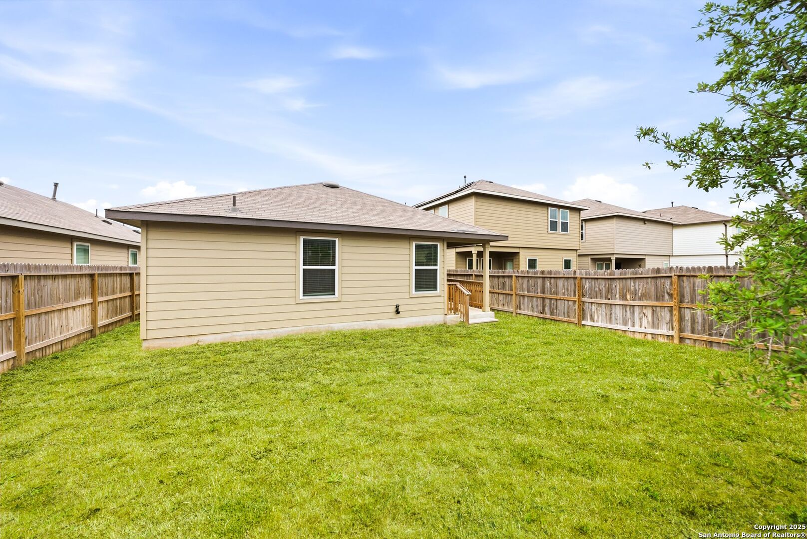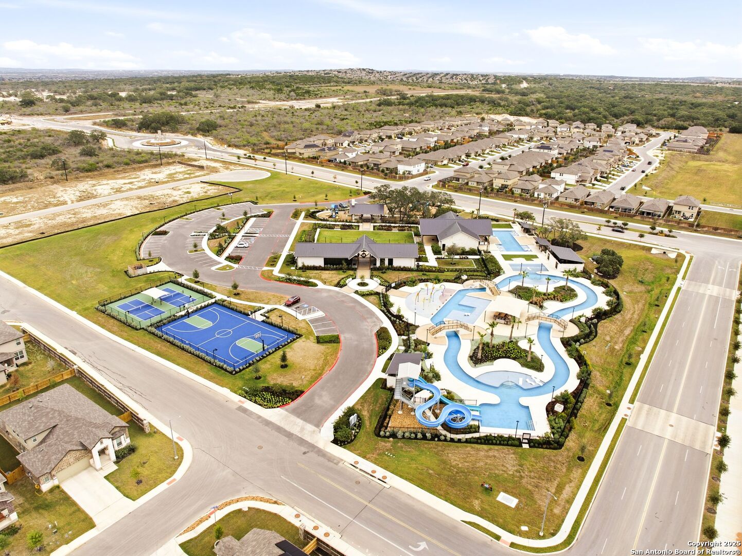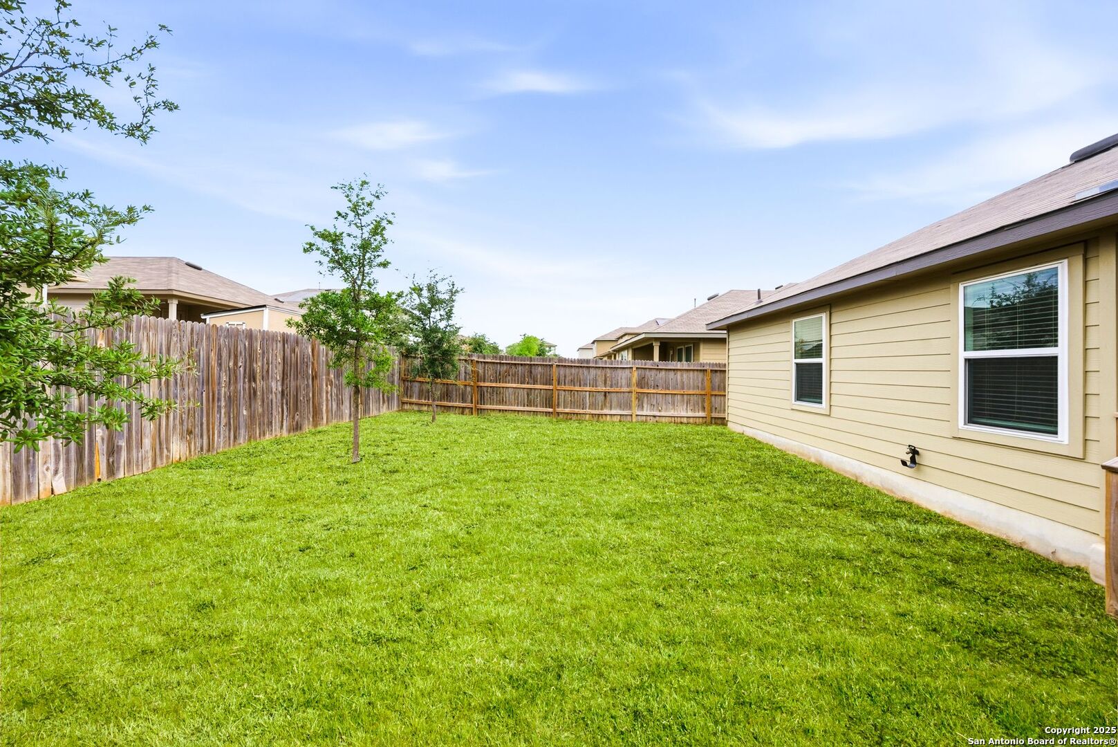Step into a home that feels like a breath of fresh air and a place you can immediately exhale into. Inside, the layout is smart without trying too hard-three bedrooms, two bathrooms, and a natural flow that makes the home feel calm, open, and effortless. The long foyer guides you forward, opening into a living space that feels expansive because it is. Sunlight spills generously through the windows, soft and quiet, warming the wood-look flooring underfoot, smooth to the eye and easy to live on. The open kitchen brings people together without demanding attention, with granite countertops that ground the design, espresso cabinetry that adds depth, and stainless finishes that keep the space crisp and modern. The owner's suite sits at the rear, peaceful and private, where mornings feel slower, evenings feel softer, and quiet actually feels like quiet. Outside, a covered patio invites you into golden hour conversations and weekend traditions, the smell of dinner on the grill drifting in the air, kids splashing in the imagination of summers coming, and quiet mornings that start with birds and sunshine, not buzz and noise. The home includes full yard irrigation and smart home features that make daily comfort simple, adjusting temperatures before bed, opening the garage for a delivery or guest, or locking the front door from anywhere with the ease. What truly sets this home apart is the community behind the gates. With easy access to Loop 1604, Sea World and Fiesta Texas, you are close enough to everything without being surrounded by it. The grand amenity center brings a resort vibe to ordinary weekends with multiple pools, a lazy river for slow rafts and sun-soaked laughs, waterslides for summer shrieks and smile lines, sports courts for pick-up evening games and bike rides that end in cannonball contests. Several playgrounds and parks wind throughout the neighborhood, with shaded sitting areas and native trails that turn evening walks into mini adventures. This home delivers the rare combination of quiet, space, and everyday ease, with a community built for connection, movement, and making the moments count. Come see what renting here really feels like.