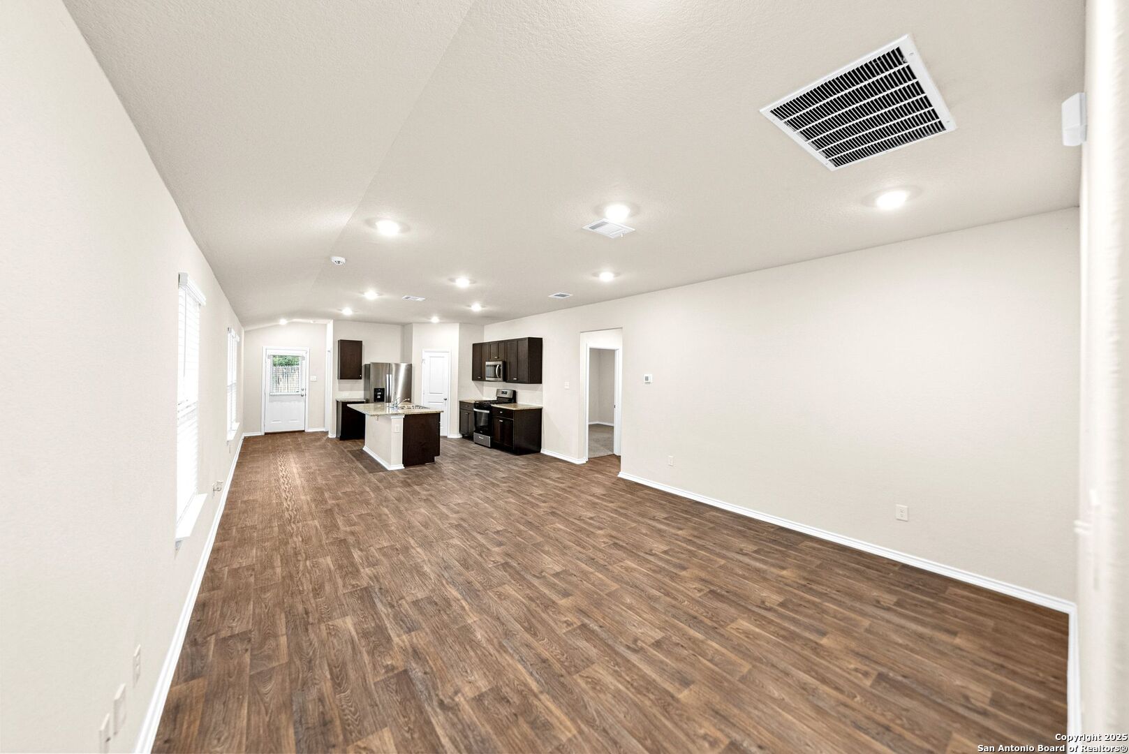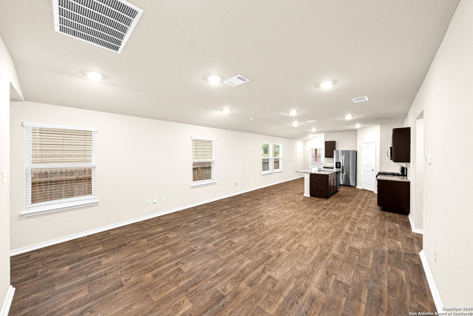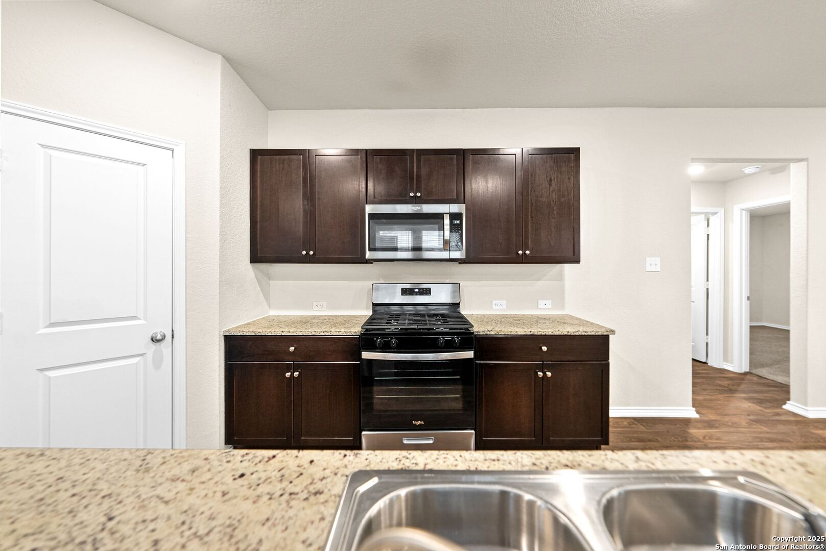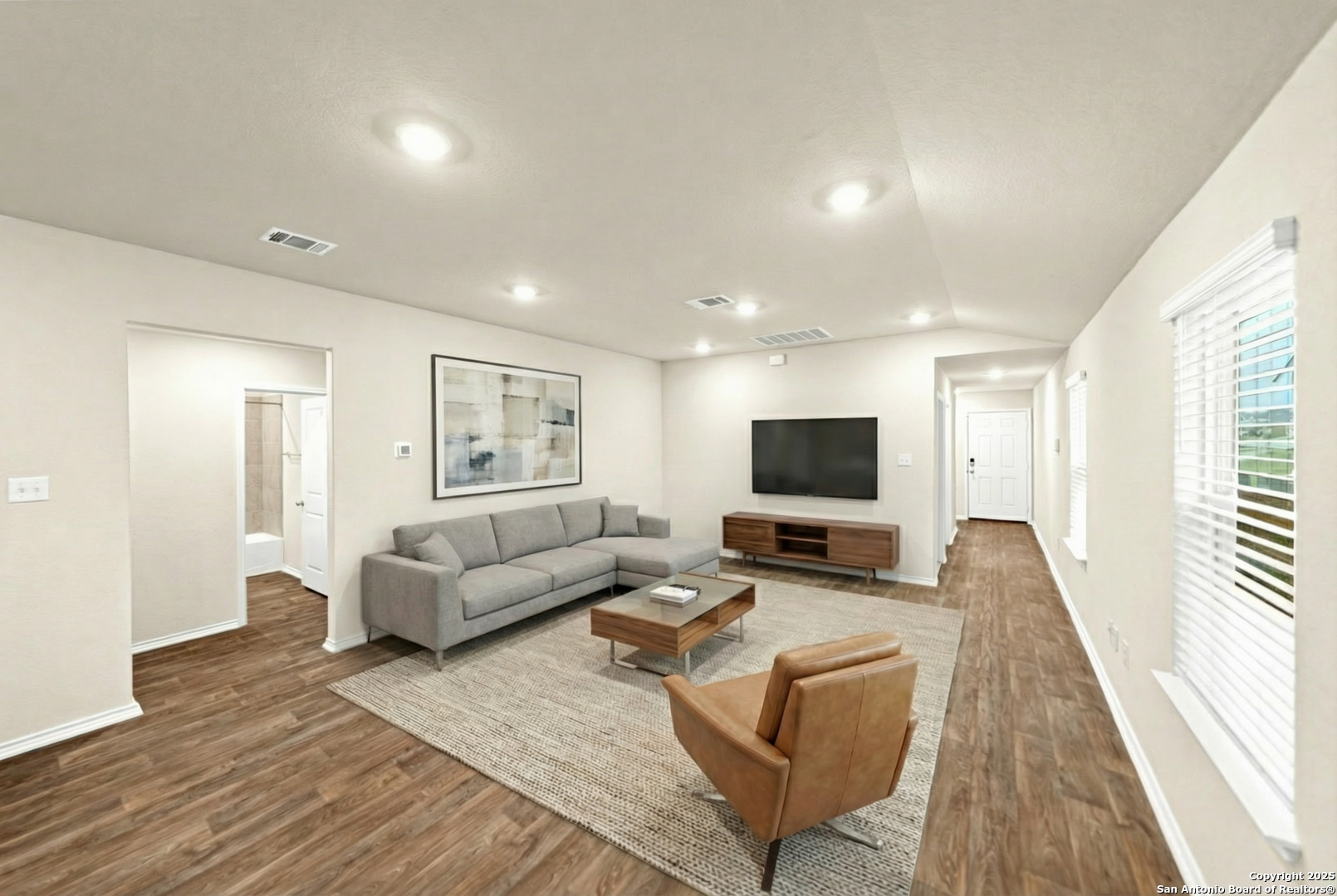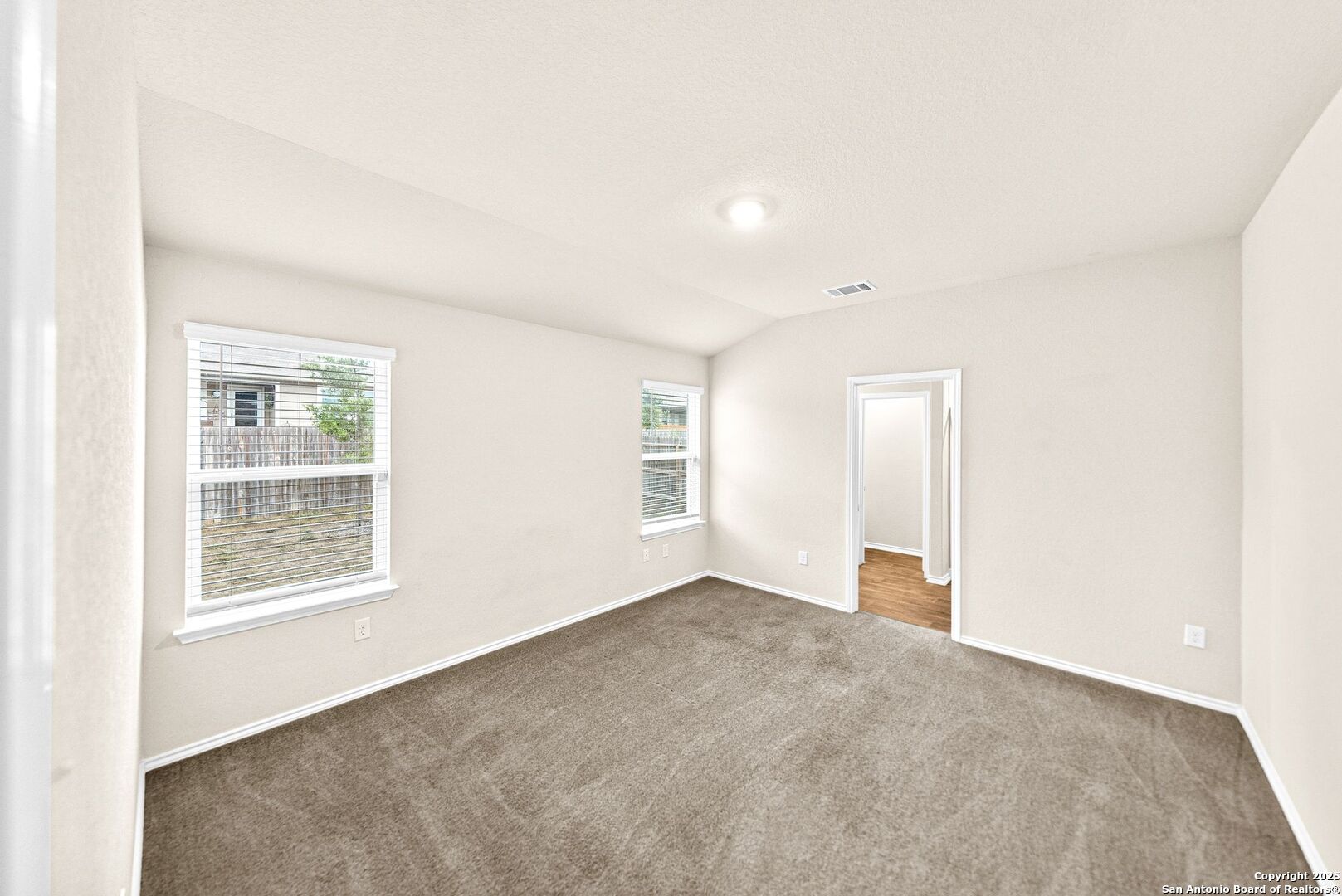 Step into a home that feels like a breath of fresh air and a place you can immediately exhale into. Inside, the layout is smart without trying too hard-three bedrooms, two bathrooms, and a natural flow that makes the home feel calm, open, and effortless. The long foyer guides you forward, opening into a living space that feels expansive because it is. Sunlight spills generously through the windows, soft and quiet, warming the wood-look flooring underfoot, smooth to the eye and easy to live on. The open kitchen brings people together without demanding attention, with granite countertops that ground the design, espresso cabinetry that adds depth, and stainless finishes that keep the space crisp and modern. The owner's suite sits at the rear, peaceful and private, where mornings feel slower, evenings feel softer, and quiet actually feels like quiet. Outside, a covered patio invites you into golden hour conversations and weekend traditions, the smell of dinner on the grill drifting in the air, kids splashing in the imagination of summers coming, and quiet mornings that start with birds and sunshine, not buzz and noise. The home includes full yard irrigation and smart home features that make daily comfort simple, adjusting temperatures before bed, opening the garage for a delivery or guest, or locking the front door from anywhere with the ease. What truly sets this home apart is the community behind the gates. With easy access to Loop 1604, Sea World and Fiesta Texas, you are close enough to everything without being surrounded by it. The grand amenity center brings a resort vibe to ordinary weekends with multiple pools, a lazy river for slow rafts and sun-soaked laughs, waterslides for summer shrieks and smile lines, sports courts for pick-up evening games and bike rides that end in cannonball contests. Several playgrounds and parks wind throughout the neighborhood, with shaded sitting areas and native trails that turn evening walks into mini adventures. This home delivers the rare combination of quiet, space, and everyday ease, with a community built for connection, movement, and making the moments count. Come see what renting here really feels like.