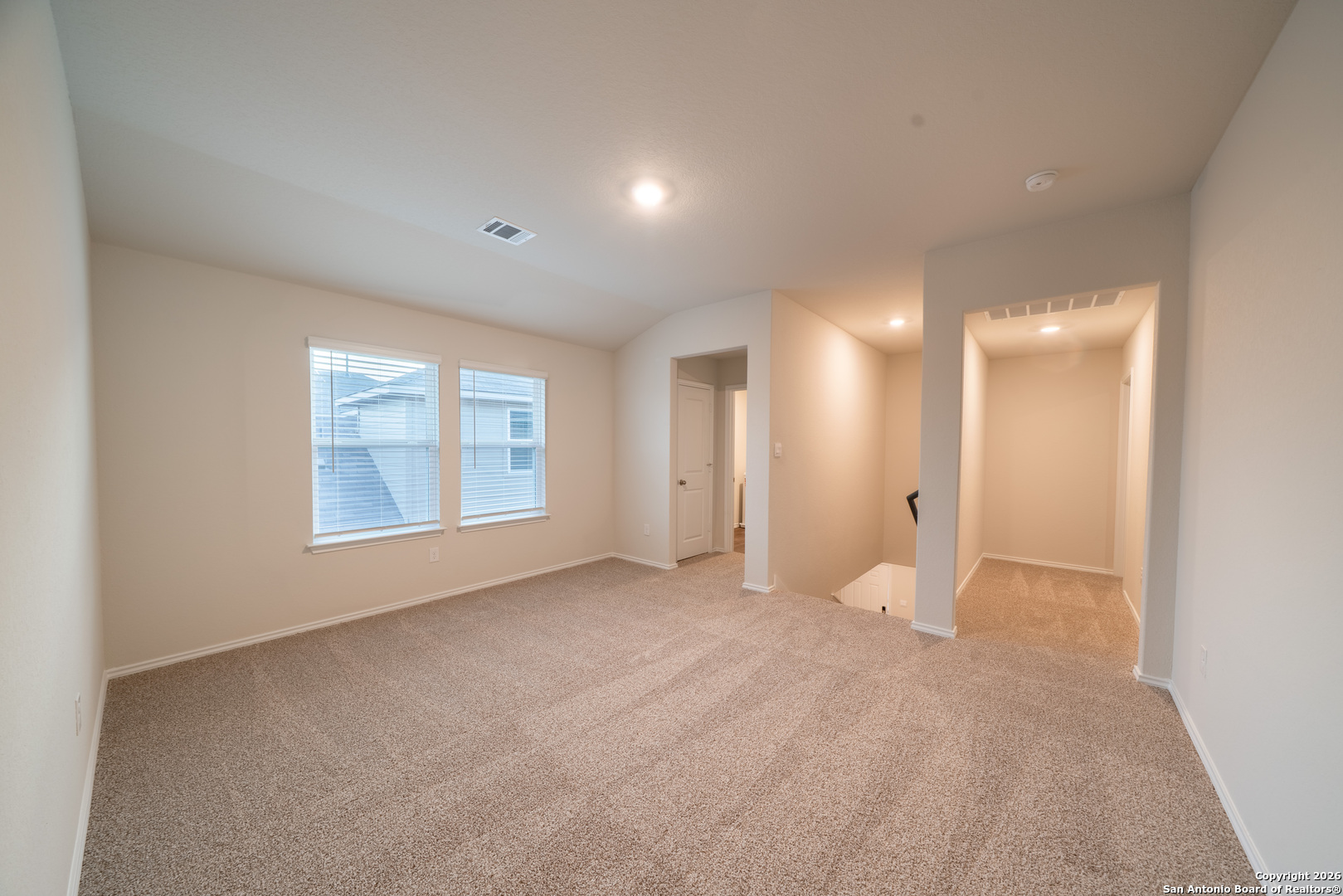 Step inside The Nicole plan, a two-story home featured in Riverstone at Westpointe in San Antonio, TX. Featuring 2 classic front exteriors, 4 bedrooms, 3 full baths and a 2-car garage, this floor plan is sure to turn heads. The Nicole offers 2473 square feet of comfortable living and includes a full bathroom and bedroom located right off the foyer that is perfect for guests. Continue down the hall to find an open concept plan with the family room opening to a gourmet kitchen and dining room. The kitchen includes quartz counter tops, stainless steel appliances, shaker style cabinetry and a spacious corner pantry. A kitchen island overlooks the living room and includes a deep, single basin sink and a breakfast bar, perfect for fast mornings on the go. The wide, inviting staircase leads to a spacious game room, utility room, main bedroom suite, two secondary bedrooms with carpet flooring and spacious closets and third full bathroom. Your private main bedroom features an attached ensuite bathroom built with plenty of storage space, a walk-in shower and a separate water closet for the toilet. The grand walk-in closet is a stand-out feature of The Nicole floor plan, complete with plenty of windows for natural lighting. Additional features of The Nicole include sheet vinyl flooring in entry, living room, and all wet areas, quartz counter tops in all bathrooms, and full yard landscaping and irrigation. This home includes our HOME IS CONNECTED base package. Using one central hub that talks to all the devices in your home, you can control the lights, thermostat and locks, all from your cellular device.