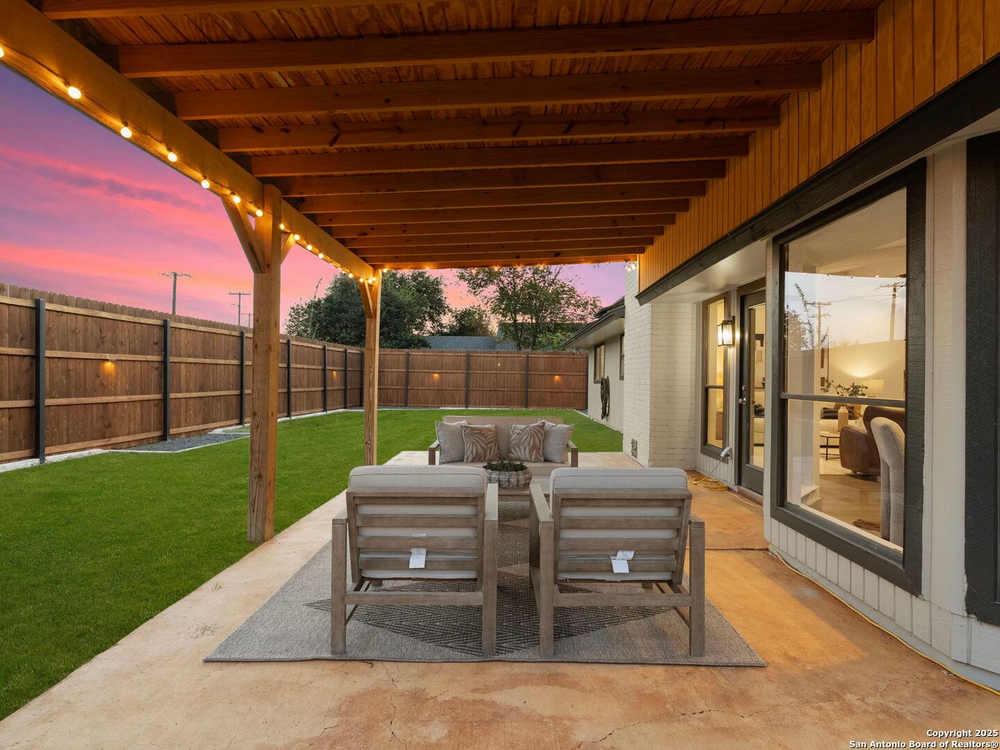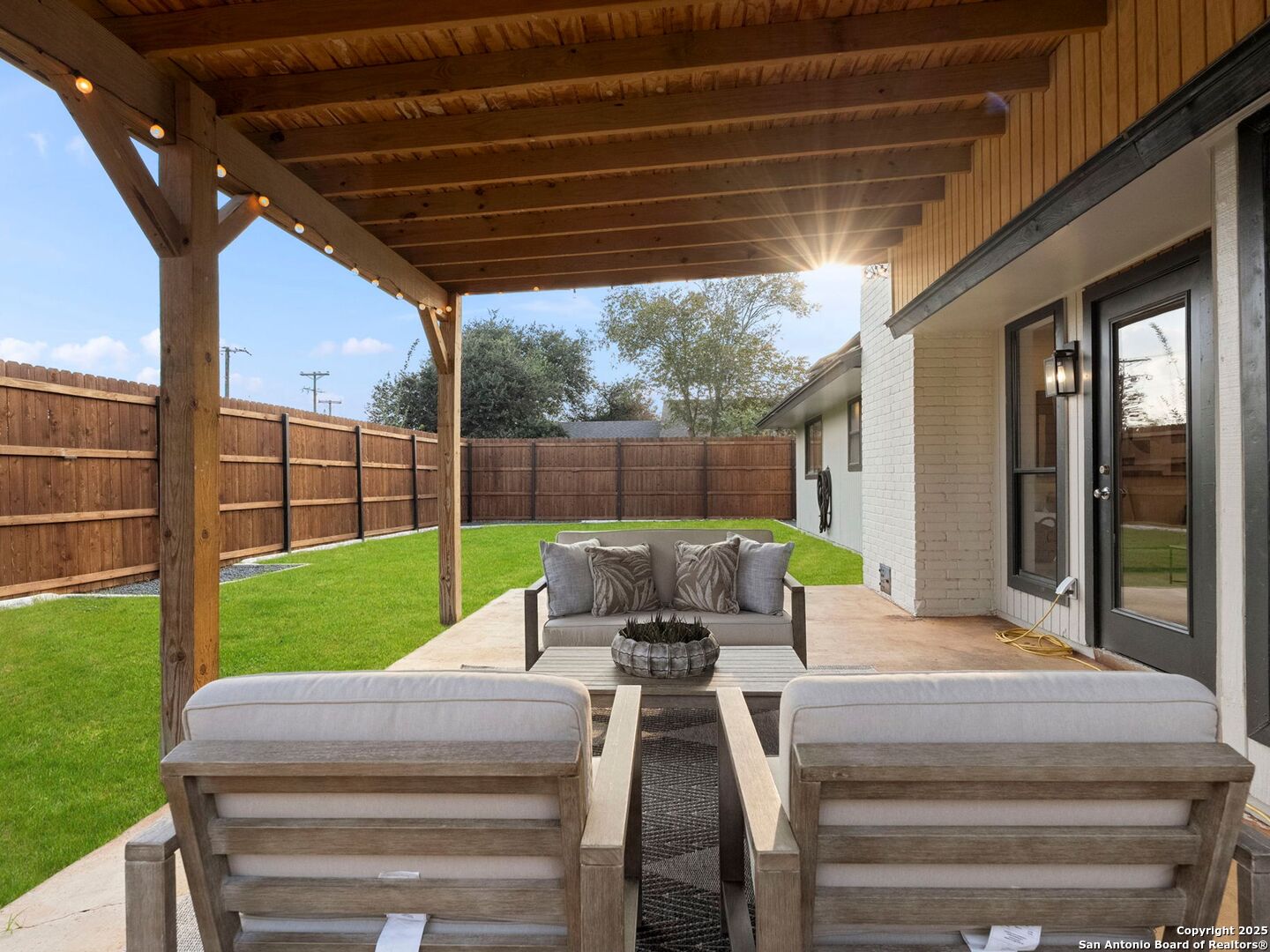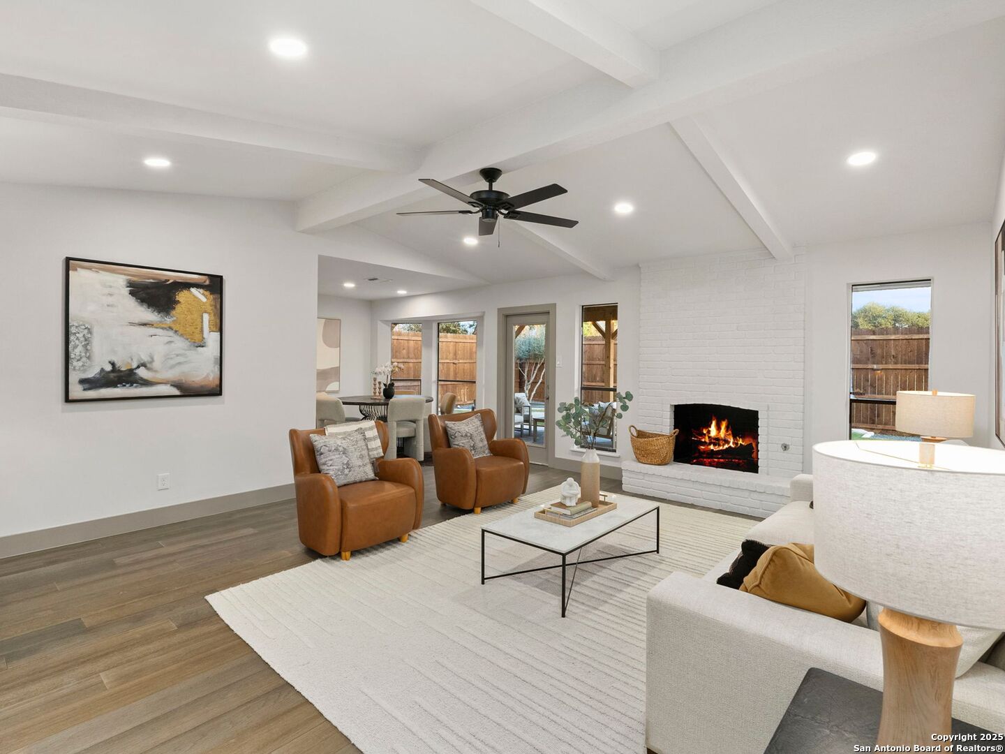 Welcome to 14 Country Club Circle, an extensively renovated home in the heart of New Braunfels. Set in one of the city's most desirable neighborhoods, this property offers unmatched convenience, just a short golf cart ride or walk to Landa Park, the Comal River, Landa Golf Course, and Wurstfest. The home features three bedrooms and two full bathrooms, thoughtfully updated throughout including a new roof and refreshed outdoor living areas. Inside, a welcoming living room centers around a fireplace, while the eat in kitchen offers a comfortable space for daily dining. Step outside to a covered patio overlooking the private, fenced backyard, perfect for quiet evenings or casual gatherings. A rare opportunity to own a modernized home surrounded by the charm, recreation, and history that define New Braunfels living.