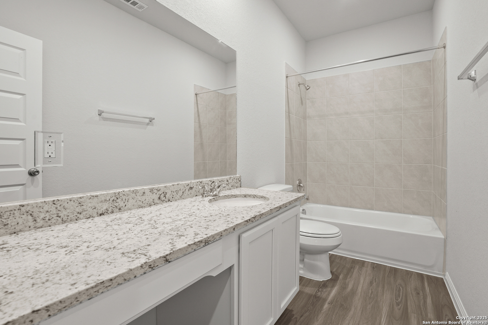 Love where you live in Hunters Ranch in San Antonio, TX! The Messina floor plan is a charming 1-story home with 3 bedrooms, 2 baths, and 2.5-car garage. This home has it all, including vinyl plank flooring throughout the common areas! The gourmet kitchen is sure to please with 42" cabinetry, granite countertops, and stainless-steel appliances. You'll love the privacy this split floor plan offers for the bedrooms! Retreat to the secluded Owner's Suite featuring granite countertops, a sizable shower, and a walk-in closet. Enjoy the great outdoors with a covered patio! Don't miss your opportunity to call Hunters Ranch home, schedule a visit today!