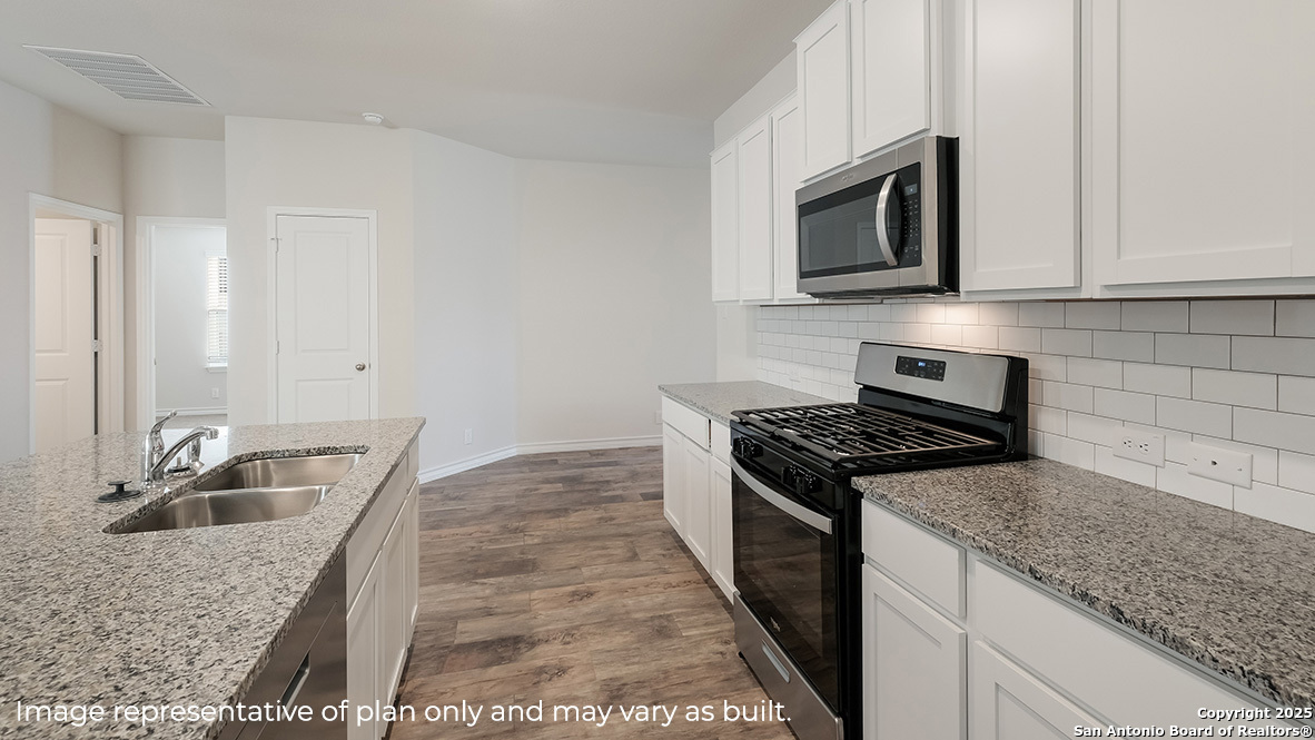 Modern design meets everyday livability in The Gaven floor plan located at The Birch at Spencer Ranch in thriving Boerne, TX! This spacious 1778 square foot, single-story home offers four bedrooms, two full bathrooms and a well-balanced layout perfect for a variety of lifestyles. From the moment you enter, a welcoming foyer sets the tone for the home's open and airy feel. The kitchen, dining area and living room are centrally located in an open-concept design, making it easy to entertain or enjoy everyday moments. The kitchen is both stylish and functional, showcasing stainless steel appliances, quartz countertops, flat panel cabinetry and a farmhouse-style sink. A spacious kitchen island and white subway tile backsplash add the finishing touches to this modern culinary space. The primary suite, tucked away at the rear of the home for privacy, offers a generous retreat complete with a tiled walk-in shower, dual vanity sinks and a walk-in closet. Your secondary bedrooms are thoughtfully designed to offer privacy and flexibility. Each room features quality carpet flooring, windows and ample closet space, making them ideal for children, guests or a home office. This home includes our HOME IS CONNECTED base package. Using one central hub that talks to all the devices in your home, you can control the lights, thermostat and locks, all from your cellular device. Enjoy outdoor living with a covered patio (per plan), full yard professional landscaping package and irrigation, ensuring that your home looks its best every single day. The Gaven floor plan offers thoughtful design, stylish finishes, and plenty of room to grow - right here in vibrant The Birch at Spencer Ranch.