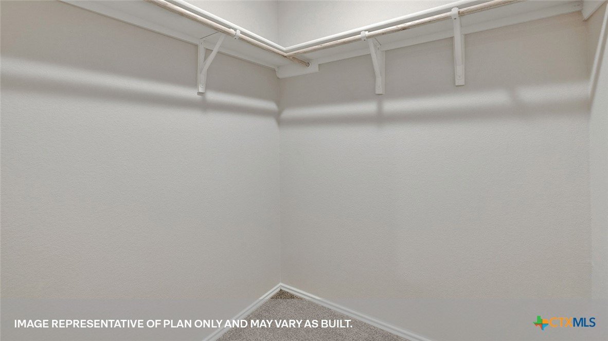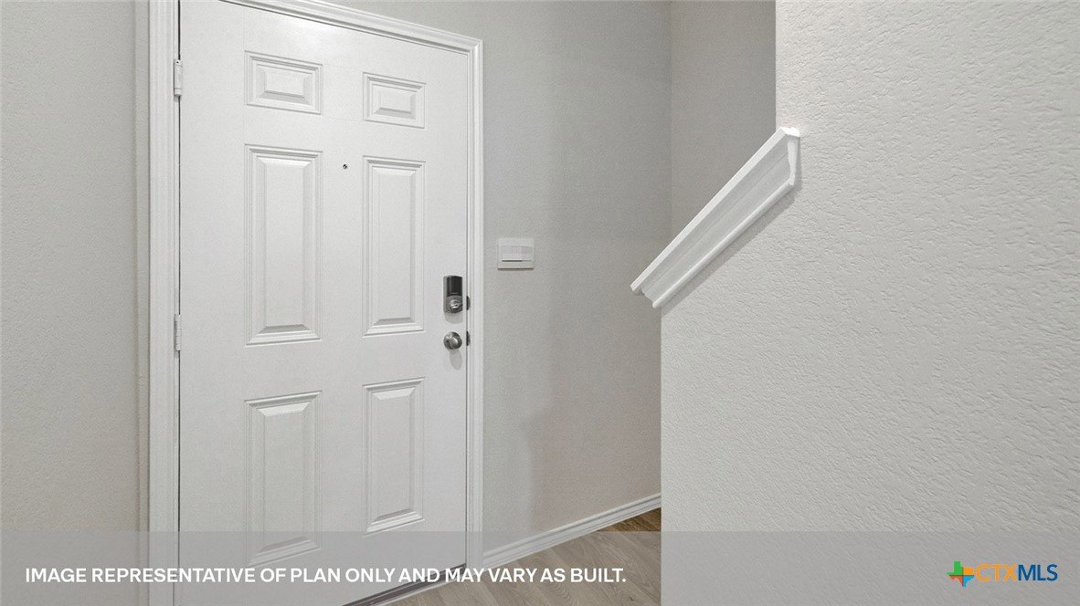 MOVE IN READY! Introducing the Robin floorplan at Bollinger in Maxwell, Texas is a two-story home is perfect for first time homeowners or smaller families. Featuring 2 bedrooms and 2.5 bathrooms, this home also includes a 1-car garage all within 1,130 square feet. Our homes in Bollinger feature our modern farmhouse exterior. Stepping inside the home from the covered front porch, you’ll enter a long foyer that leads into the heart of the home, the open concept living space. This cozy area of the kitchen, dining and family room makes cooking and entertaining enjoyable for everyone. The kitchen features laminate countertops with 50/50 stainless steel drop-in bowl, 4” laminate backsplash, 36” upper cabinets and stainless-steel appliances, including a gas range. The pantry and powder room are off the kitchen to complete this downstairs space. Ascending the stairs, you’ll find the primary bedroom with an attached bathroom. This space will become your retreat at the end of the day. The bathroom features a walk-in shower, laminate countertop, and a walk-in closet. Outside the primary bedroom is the utility room, making your laundry chores easy to complete. Moving down the hall towards the front of the house, you’ll discover the secondary bathroom and bedroom. Bath 2 includes a shower/tub combination. The Robin includes vinyl flooring throughout the common areas of the home, and carpet in the bedrooms. All our new homes feature Bermuda sod, an irrigation system in the front and back yard, and a 6’ privacy fence around the back yard. This home features our America’s Smart Home base package, which includes the Video Front Doorbell, Front Door Deadbolt Lock, Home Hub, Thermostat, and Deako® Smart Switches.