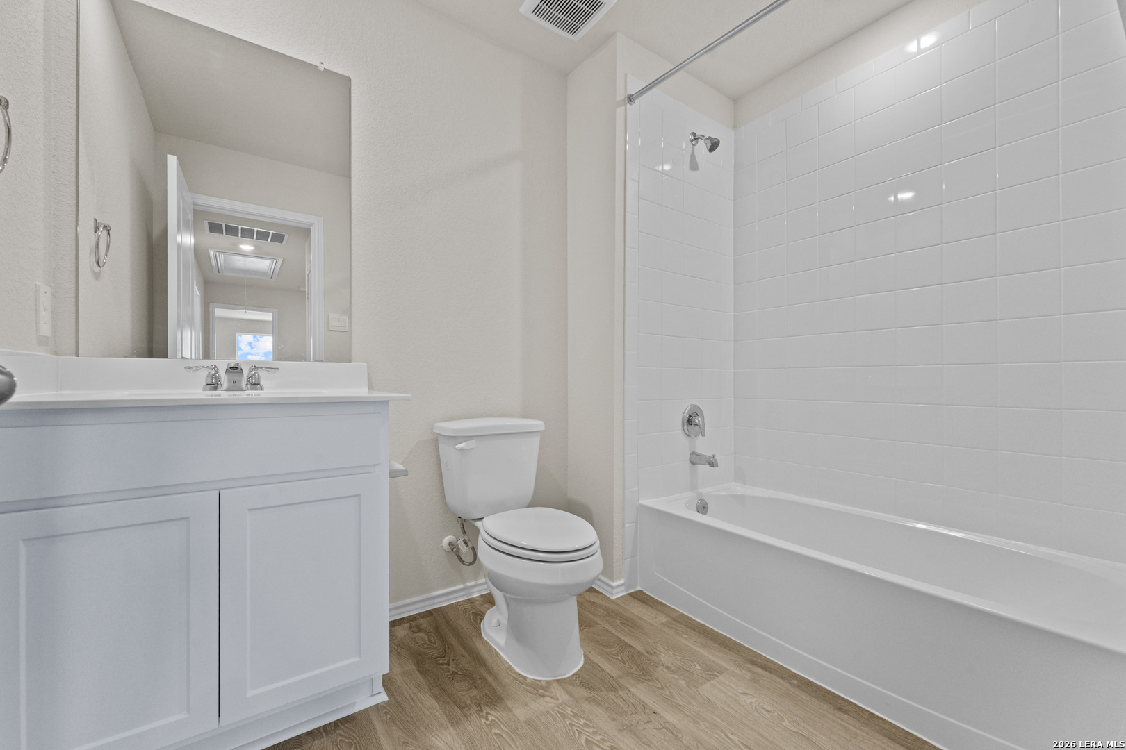 The Franklin is one of our two story floorplans available at Bollinger in Maxwell, Texas. This beautiful two-story home features 5 bedrooms, 2.5 bathrooms and a 2-car garage across 1,892 square feet of comfortable living space. Step inside the home from the front porch and cross the foyer to the family room, kitchen and dining room. This large open concept area is perfect for entertaining and everyday living. The kitchen features an island with a stainless-steel sink, quartz countertops, 42' upper 'picture frame' cabinets, a pantry closet, and stainless-steel appliances. The powder room completes the downstairs space and is located at the front of the home, off the foyer. Ascend the stairs to the second floor, where you'll find all the bedrooms, gameroom, 2 full bathrooms and the utility room. The primary bedroom is located at the front of the home and includes an attached bathroom. Stretch out and relax at the end of your day in this spacious and private ensuite. The primary bathroom features a walk-in shower, cultured marble vanity with trench sink and a walk-in closet. All secondary bedrooms have amble closet space with wood shelving. The secondary bathroom includes a shower/tub combination and a cultured marble vanity with trench sink. This home features our America's Smart Home base package, which includes the Video Front Doorbell, Front Door Deadbolt Lock, Home Hub, Thermostat, and Deako Smart Switches. *Seller is willing to assist with closing costs or a rate buy-down through preferred lender with an acceptable offer. *