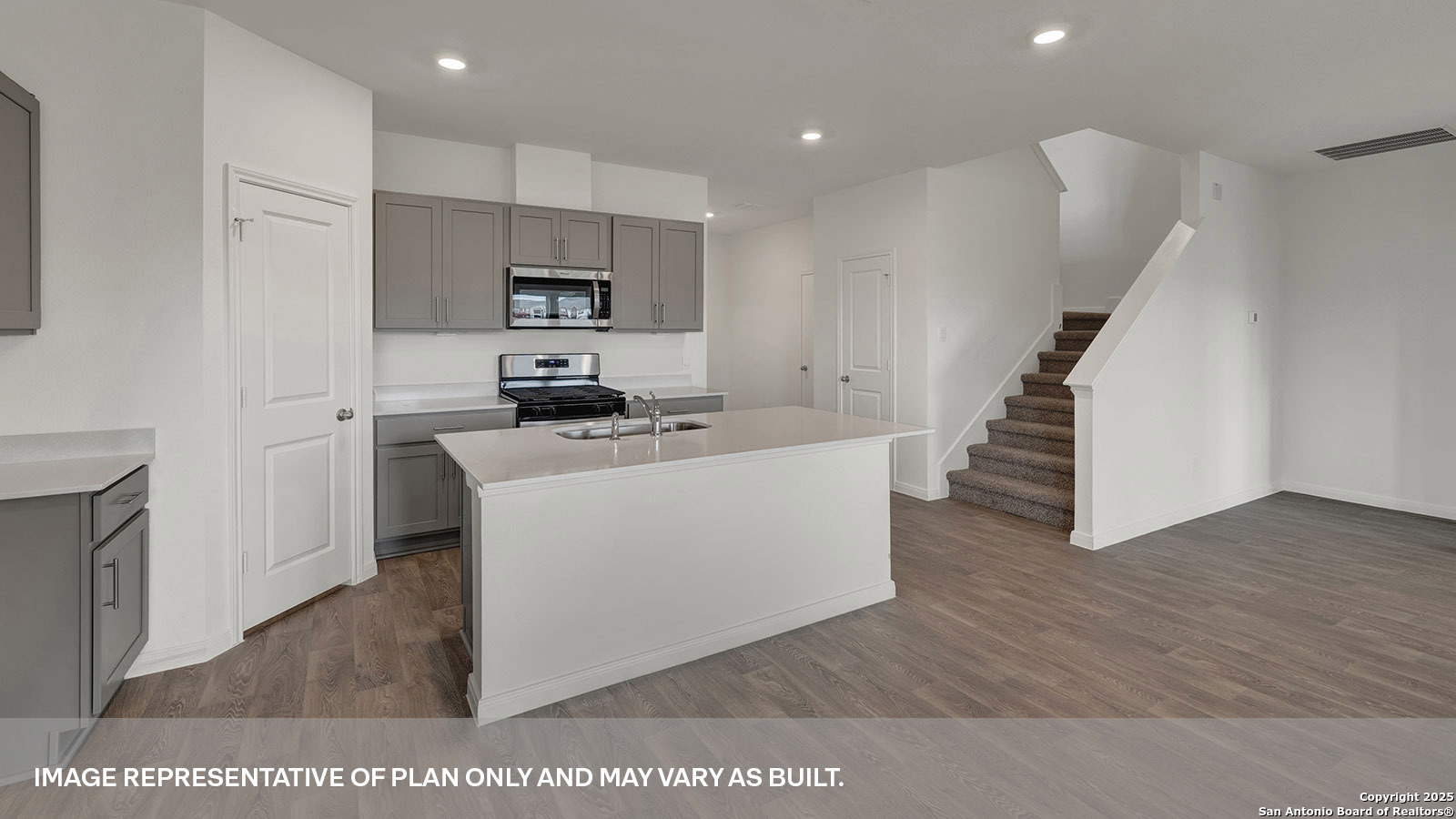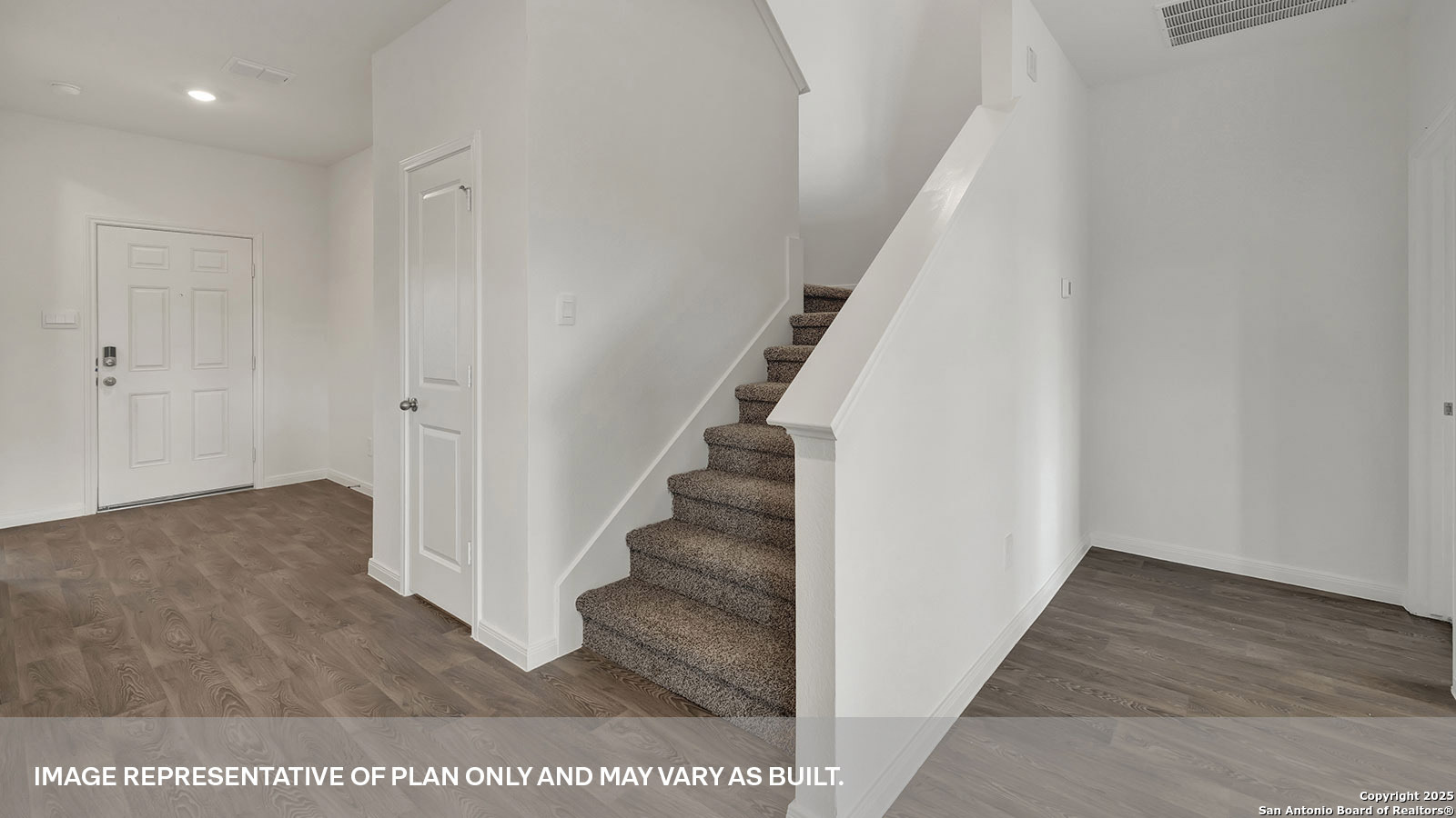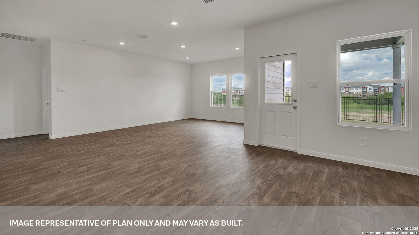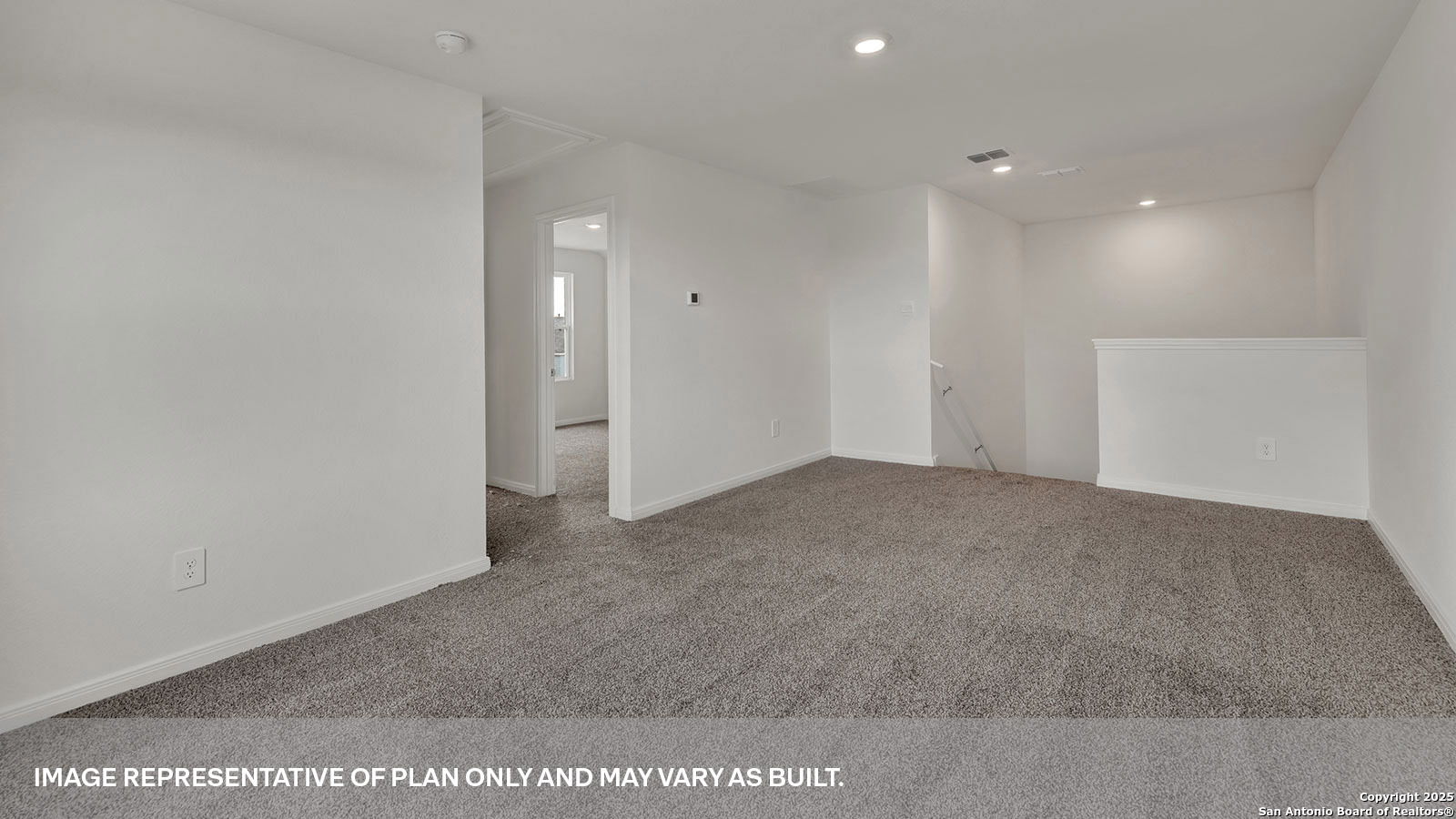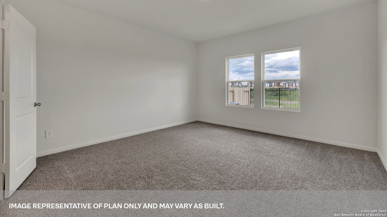 SEPTEMBER/OCTOBER COMMUNITY LOCATED NEXT TO I-35. Find all the space you need in our Midland floorplan at Trace in San Marcos, Texas. This two-story home includes 4 bedrooms, 3 bathrooms, a loft and 2 car garage within its 2,164 square feet of living space. Our homes in Trace feature farmhouse exteriors. Step inside this home and walk through the foyer to the kitchen, dining, and family room. This open concept space is perfect for hosting and entertaining, as well as everyday living. The L-shaped kitchen features quartz countertops, a large island facing the family room, a corner pantry closet, stainless-steel appliances and 36'' upper cabinets. The first floor includes 2 bedrooms and 2 bathrooms. The primary bedroom is at the back of the home, off the family room, and includes an attached bathroom. This relaxing bathroom space features a 5' walk in shower, double sink vanity, private toilet area with a door, and a walk-in closet. At the front of the home is a secondary bedroom, bathroom, and utility room. The secondary bathrooms include a tub/shower combination. Ascend the stairs to the loft, an extra living space that could be used as an office or play area for the kids. Two additional bedrooms and a full bathroom are upstairs, allowing amble space for the whole family. The Midland includes vinyl flooring throughout the common areas of the home, and carpet in the bedrooms, loft, and stairwell. All our new homes feature a covered back patio, full sod, irrigation system in the front and back yard, and a 6' privacy fence around the back yard. This home features our America's Smart Home base package, which includes the Video Front Doorbell, Front Door Deadbolt Lock, Home Hub, Thermostat, and Deako Smart Switches.
