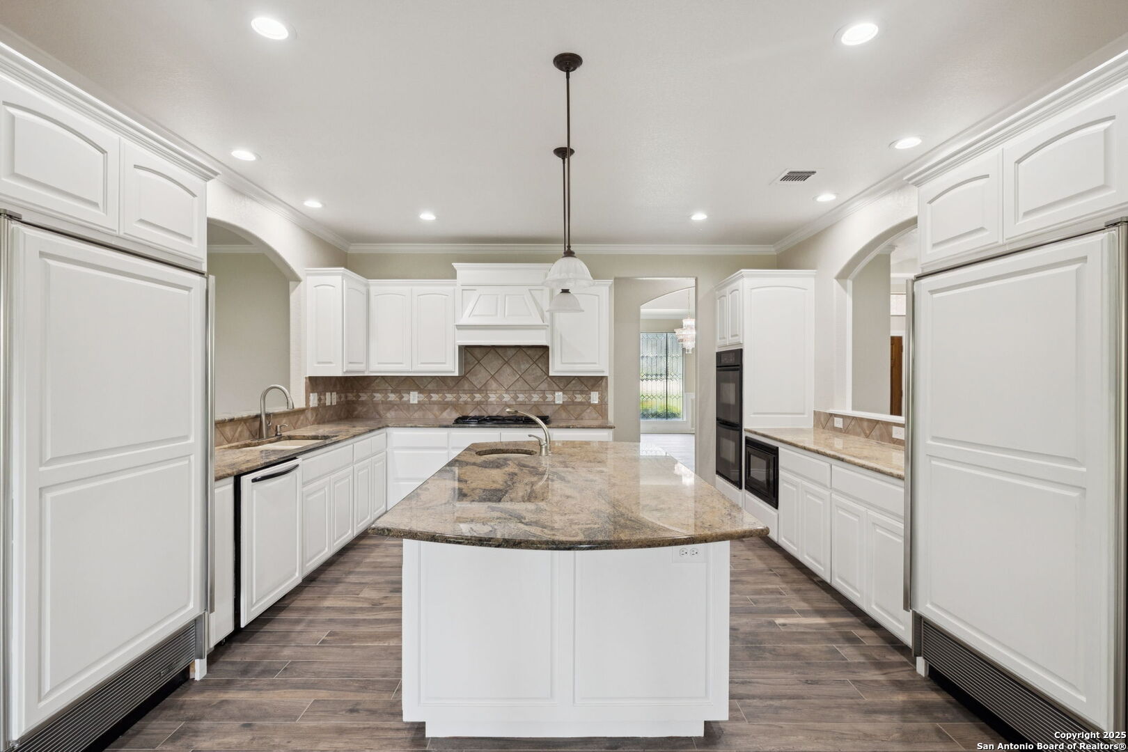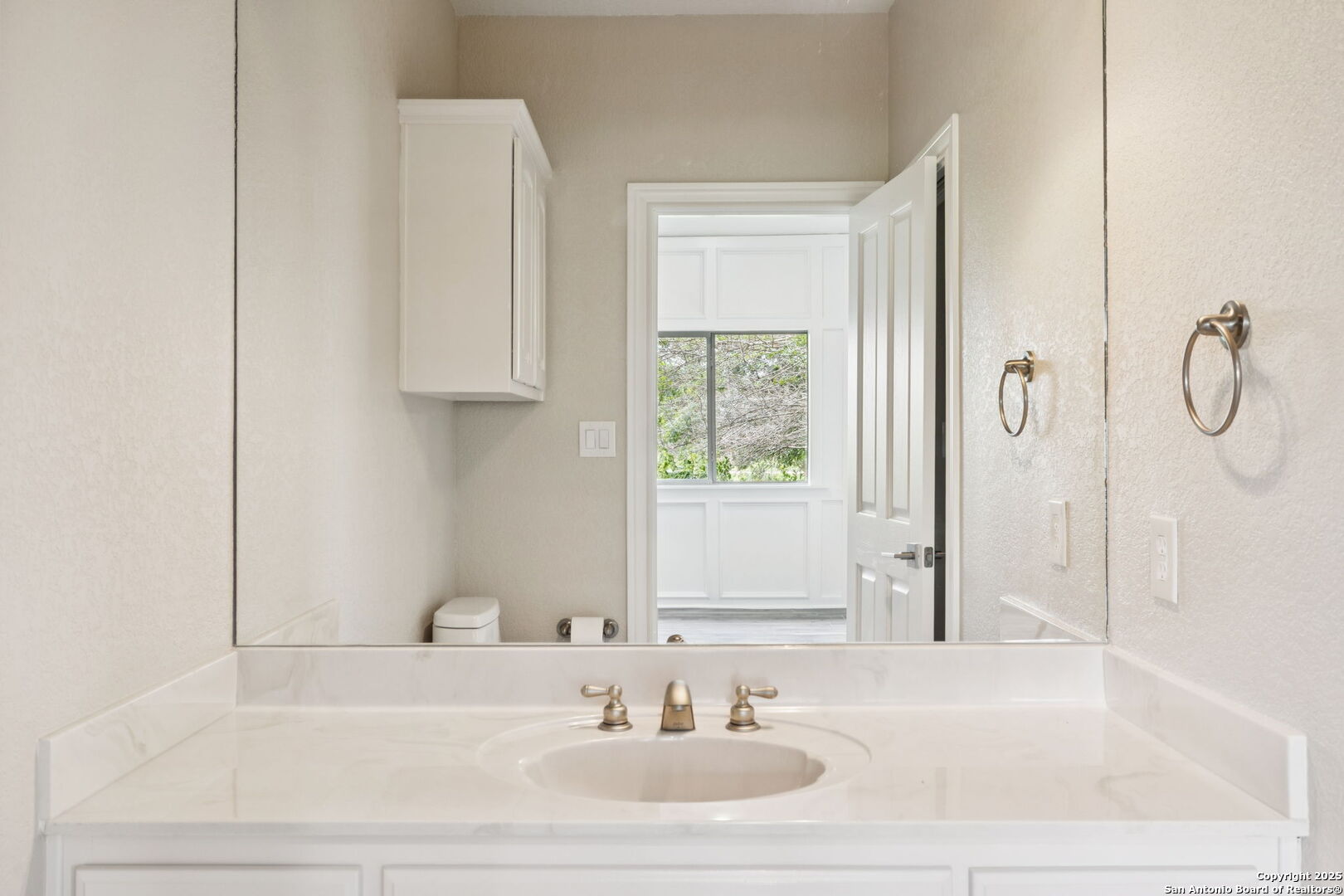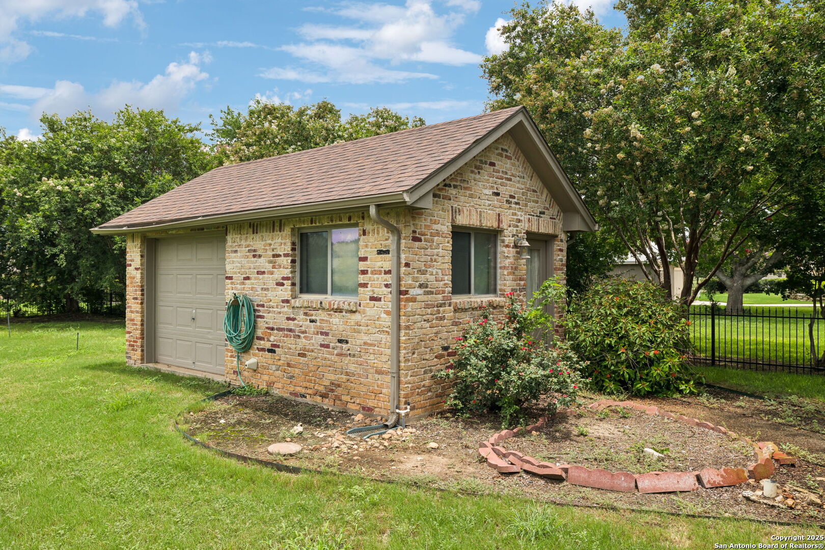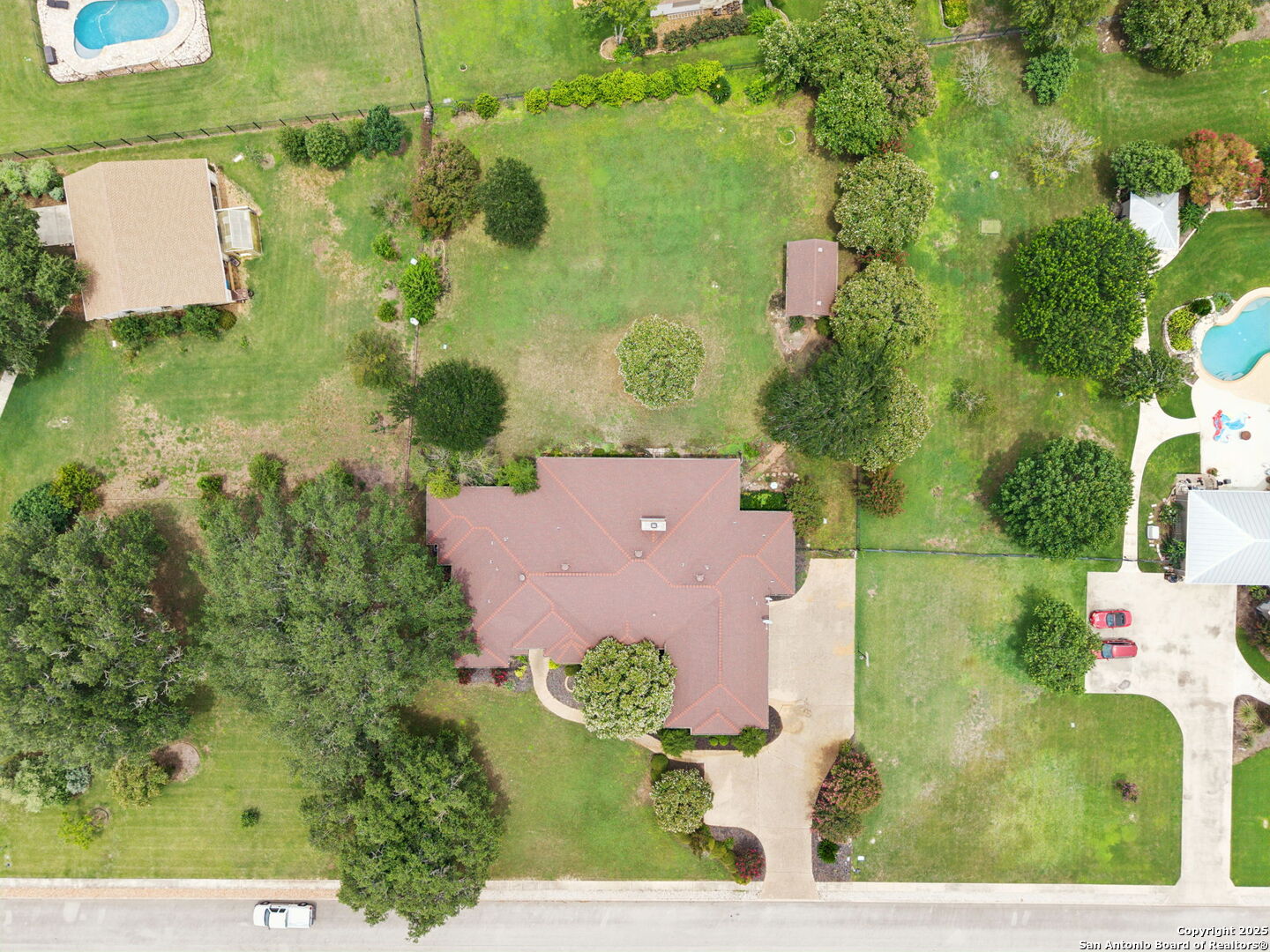 WOW WOW WOW! One of a kind property in Ville D'Alsace Subdivision in Castroville! This gem boasts 4,575 square feet of living space, featuring 4 bedrooms, 4.5 bathrooms, multiple living areas, formal and casual dining rooms, a full wet bar (with sink, mini fridge, and ice maker), bonus room above garage, a split primary suite with two massive walk-in closet's and separate bathroom spaces, connected by a walk-in shower and a separate study/office with a small closet! This home has also been freshly remodeled with all new wood look tile flooring and carpeting, fresh paint throughout walls and cabinetry, and some plumbing updates. This home is nestled between beautiful oak trees on a great lot with a massive covered back porch. Speaking of outside... you will notice that all concrete work is pebble finished... something you don't see much of anymore and it is gorgeous! The backyard features an additional shop/storage building with garage door. Perfect for storing your yard/lawn tools, or just about anything!
