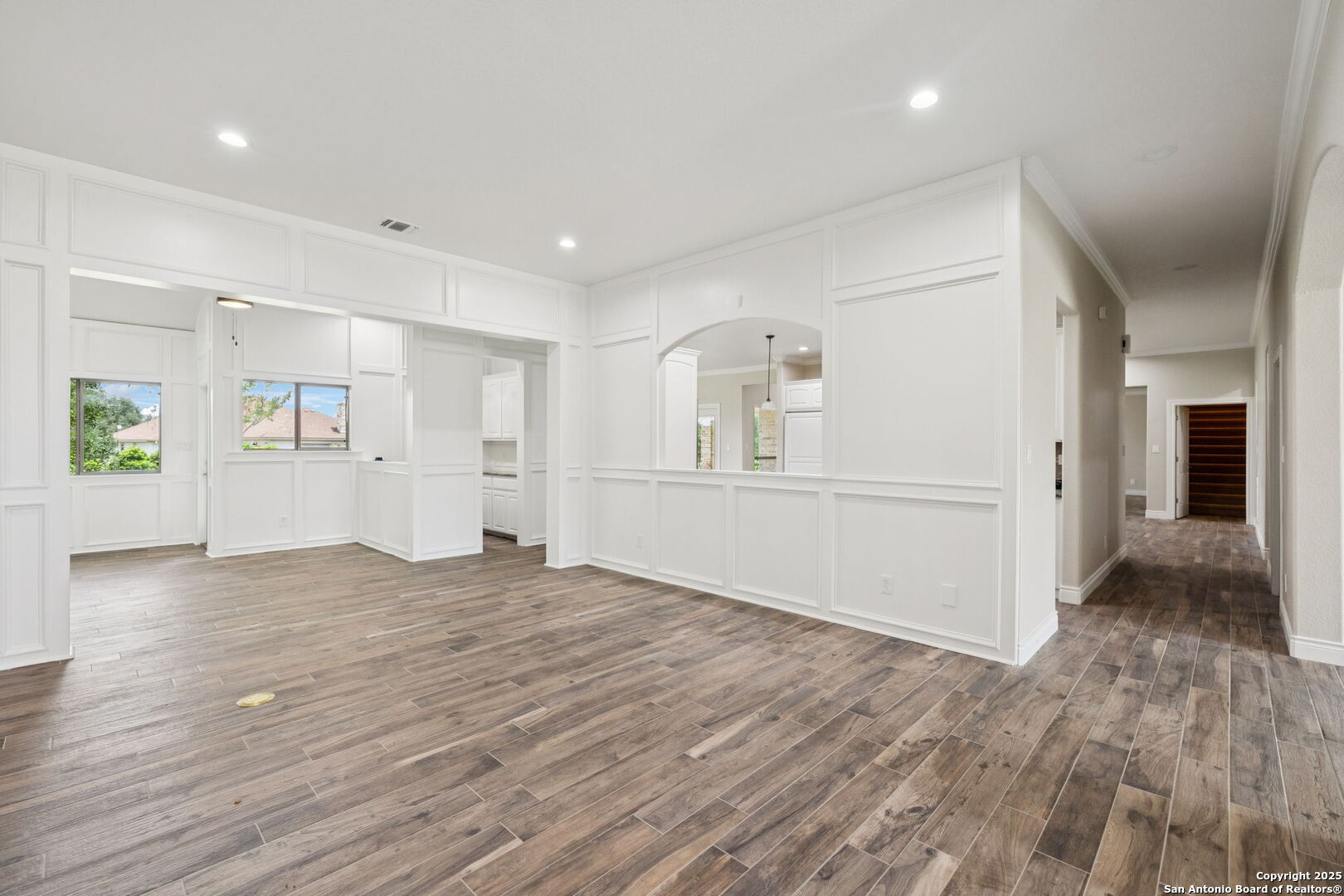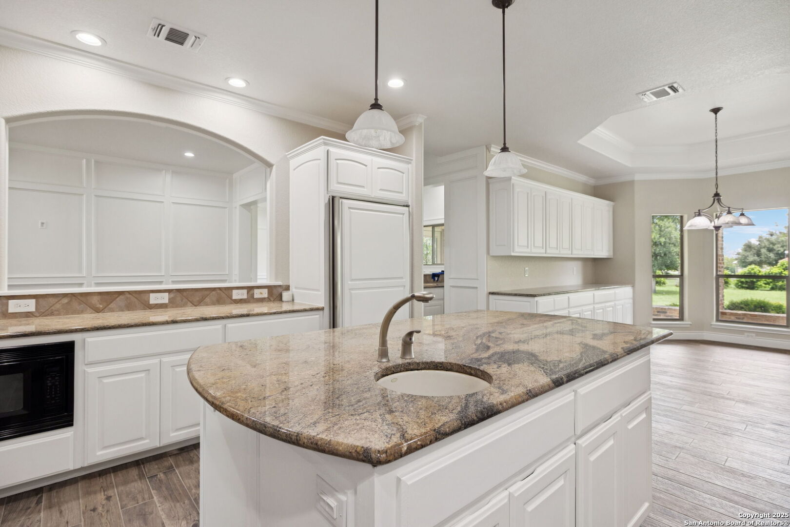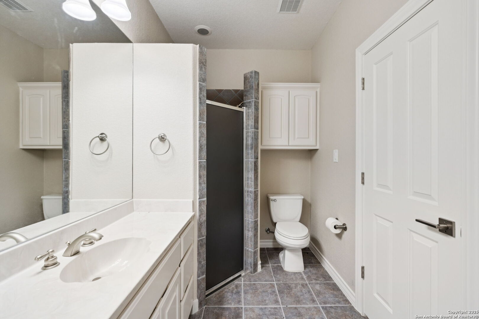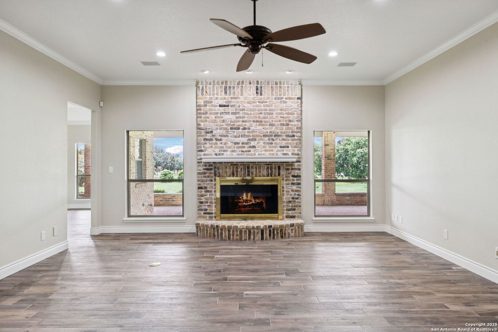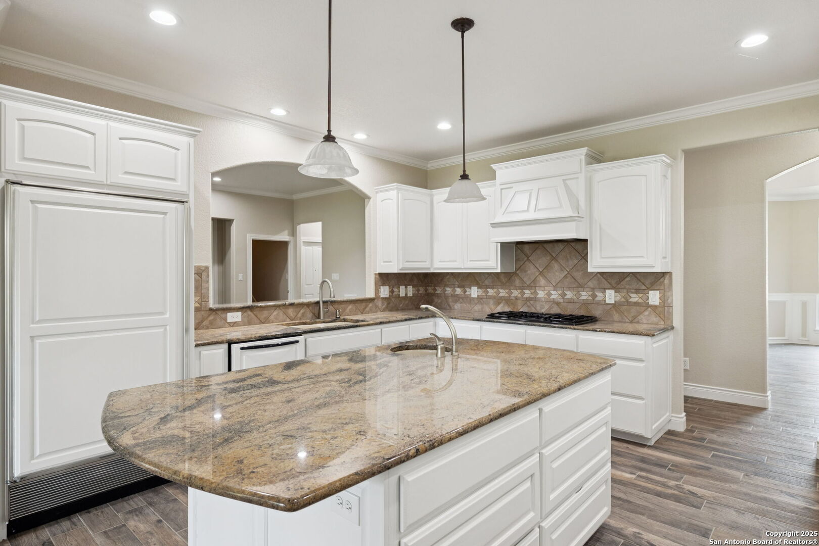 WOW WOW WOW! One of a kind property in Ville D'Alsace Subdivision in Castroville! This gem boasts 4,575 square feet of living space, featuring 4 bedrooms, 4.5 bathrooms, multiple living areas, formal and casual dining rooms, a full wet bar (with sink, mini fridge, and ice maker), bonus room above garage, a split primary suite with two massive walk-in closet's and separate bathroom spaces, connected by a walk-in shower and a separate study/office with a small closet! This home has also been freshly remodeled with all new wood look tile flooring and carpeting, fresh paint throughout walls and cabinetry, and some plumbing updates. This home is nestled between beautiful oak trees on a great lot with a massive covered back porch. Speaking of outside... you will notice that all concrete work is pebble finished... something you don't see much of anymore and it is gorgeous! The backyard features an additional shop/storage building with garage door. Perfect for storing your yard/lawn tools, or just about anything!