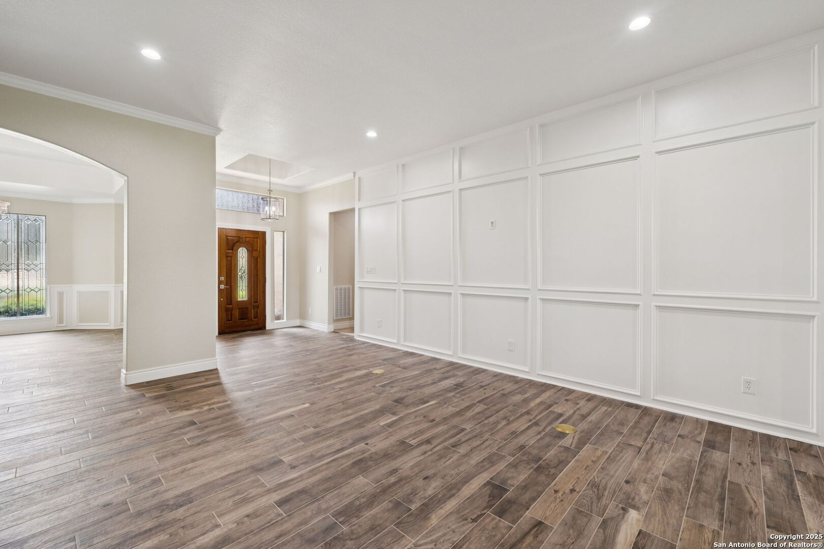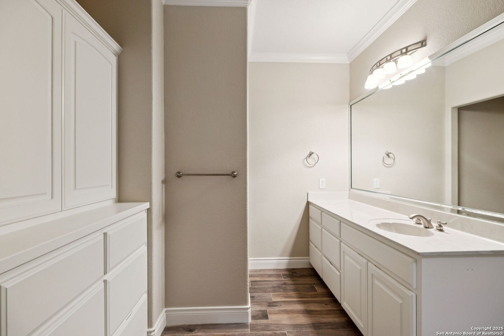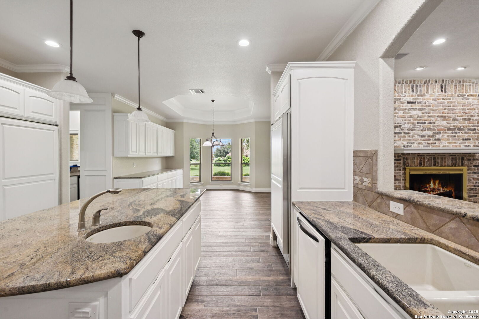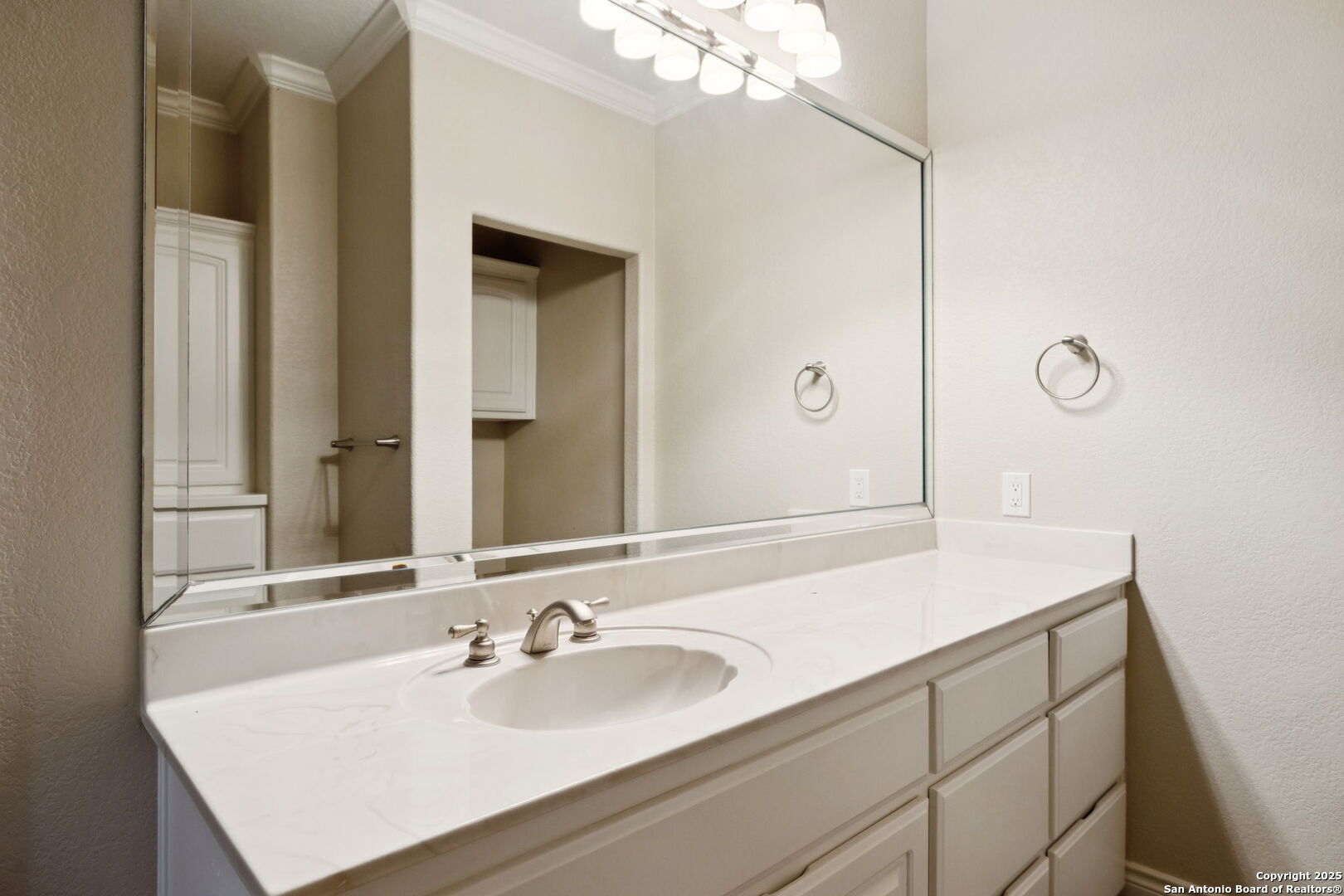 WOW WOW WOW! One of a kind property in Ville D'Alsace Subdivision in Castroville! This gem boasts 4,575 square feet of living space, featuring 4 bedrooms, 4.5 bathrooms, multiple living areas, formal and casual dining rooms, a full wet bar (with sink, mini fridge, and ice maker), bonus room above garage, a split primary suite with two massive walk-in closet's and separate bathroom spaces, connected by a walk-in shower and a separate study/office with a small closet! This home has also been freshly remodeled with all new wood look tile flooring and carpeting, fresh paint throughout walls and cabinetry, and some plumbing updates. This home is nestled between beautiful oak trees on a great lot with a massive covered back porch. Speaking of outside... you will notice that all concrete work is pebble finished... something you don't see much of anymore and it is gorgeous! The backyard features an additional shop/storage building with garage door. Perfect for storing your yard/lawn tools, or just about anything!