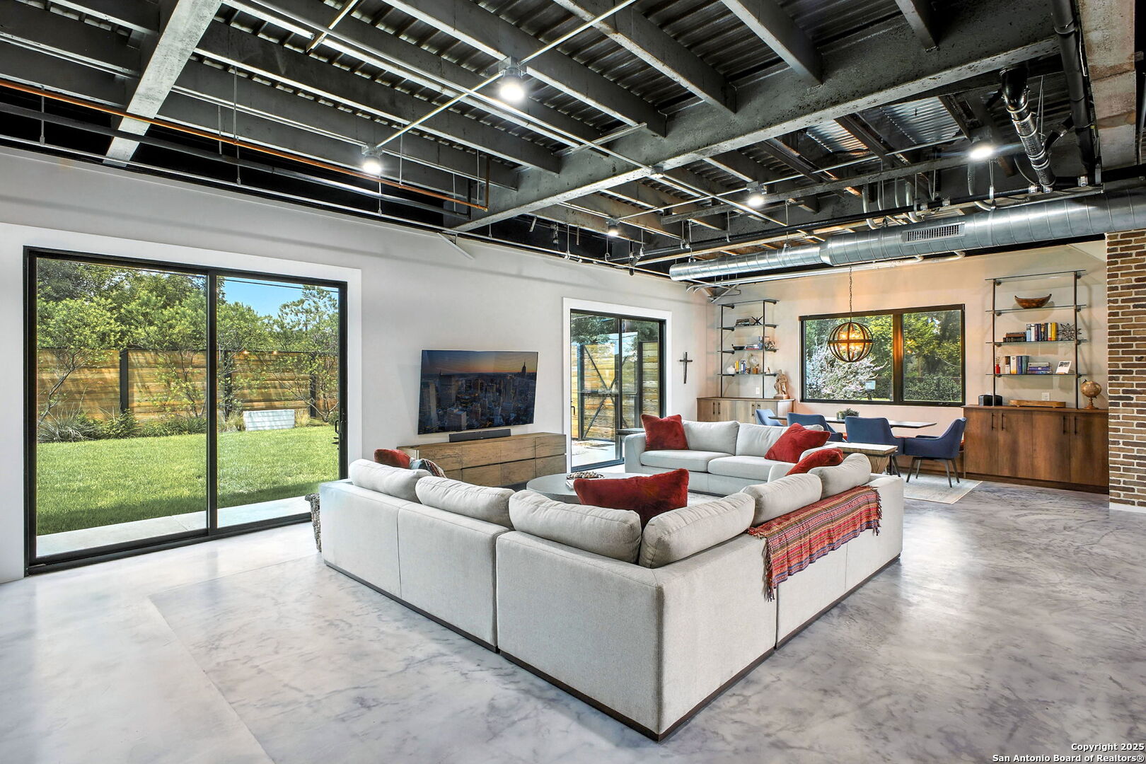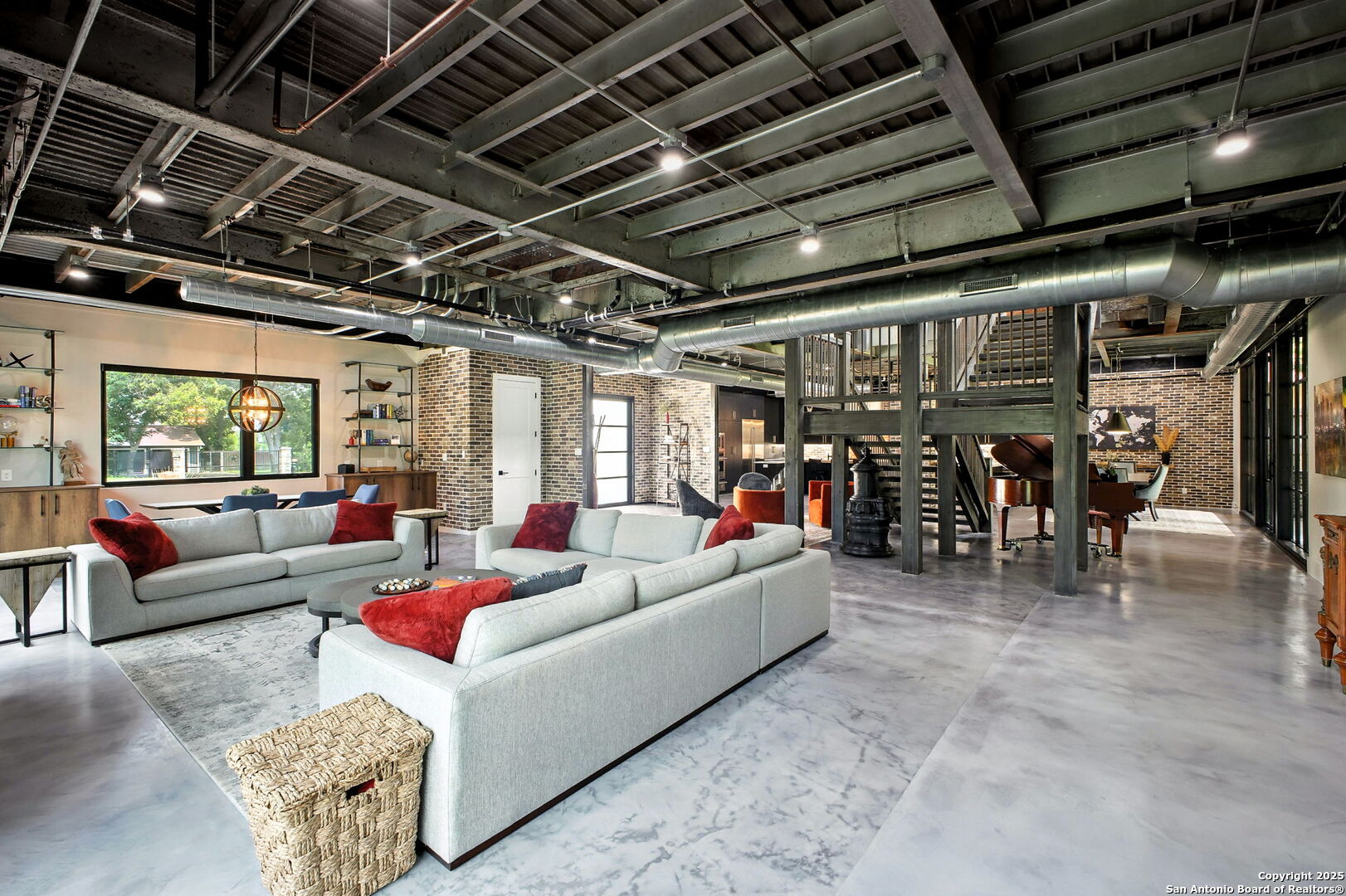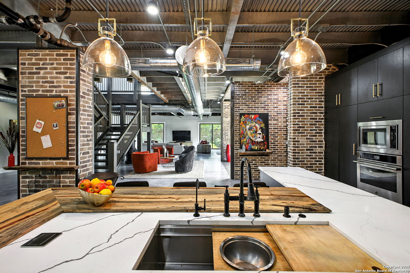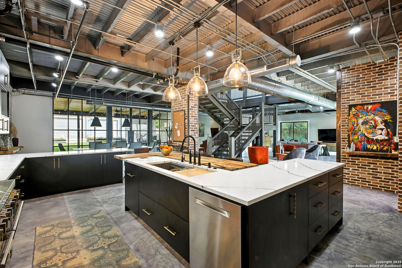 Modern Luxury Meets Industrial Strength in Castle Hills This one-of-a-kind, 5,300 sq. ft. residence sits on a spacious 3/4-acre lot in the heart of Castle Hills and includes a separate 2,400 sq. ft. detached garage/workshop-perfect for hobbyists, collectors, or entrepreneurs. Completely renovated from the studs up, this home was thoughtfully rebuilt to preserve and showcase original steel elements, blending modern comfort with timeless industrial character." -into a stunning four-bedroom, three-and-a-half-bath residence with dual primary suites (one upstairs, one down) and an attached two-car garage. Designed with timeless elegance and lasting durability, the home features commercial-grade steel construction and abundant natural light through expansive windows. Every detail has been thoughtfully curated by interior designers, from premium tile and flooring to refined hardware and fixtures that exude classic sophistication. The gourmet kitchen flows seamlessly into open-concept living and dining areas, while the expansive covered back patio is an entertainer's dream-complete with a full outdoor kitchen. Beyond the patio, a lush lawn leads to a separate 2,400 sq. ft. garage/shop outfitted with three-phase electricity, offering endless possibilities for hobbyists or entrepreneurs. Whether you're operating welding equipment, hydraulic car lifts, or even kilns for ceramics or glassblowing, the power infrastructure is already in place. No detail was overlooked in this thoughtfully engineered home. A rare opportunity to own a truly unique, high-performance property in one of San Antonio's most desirable neighborhoods. Six minutes to Medical Center and 5 minutes to the SA Airport!