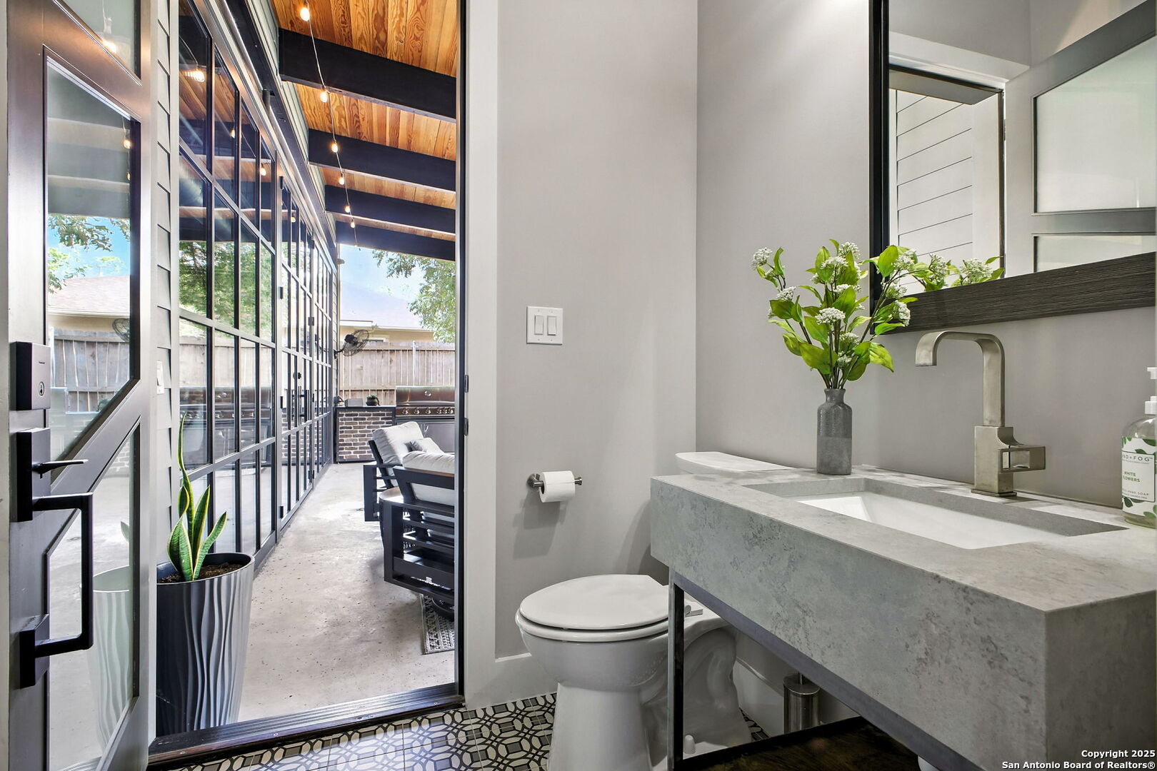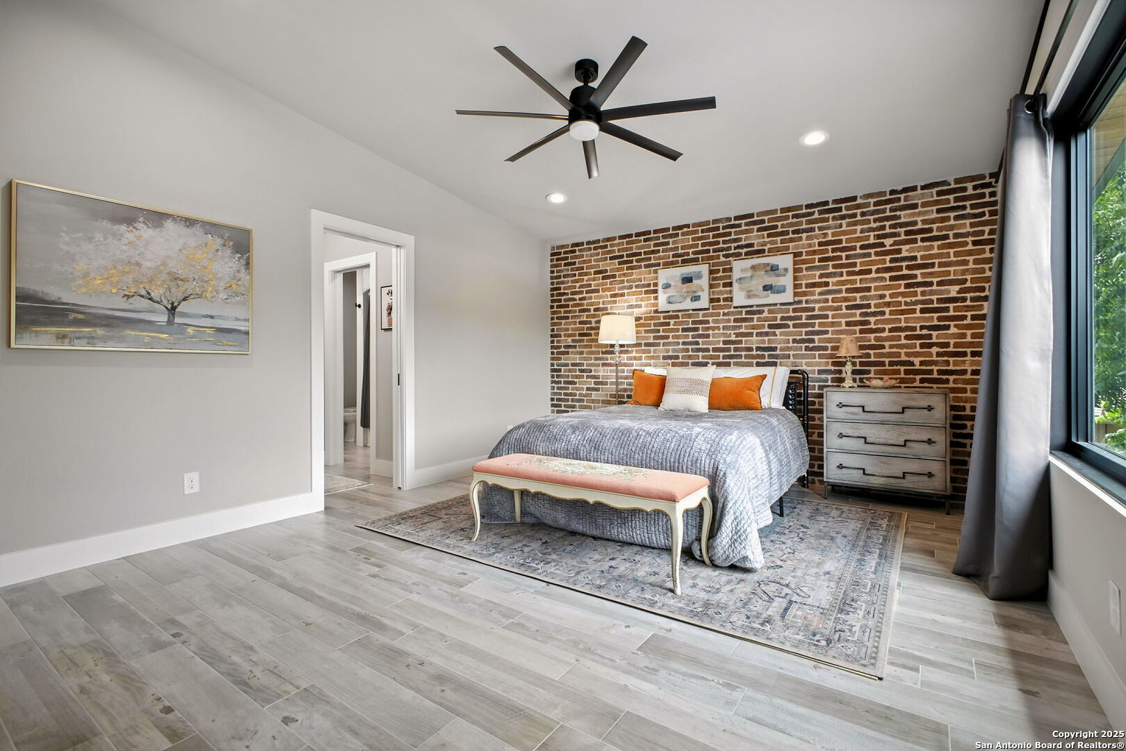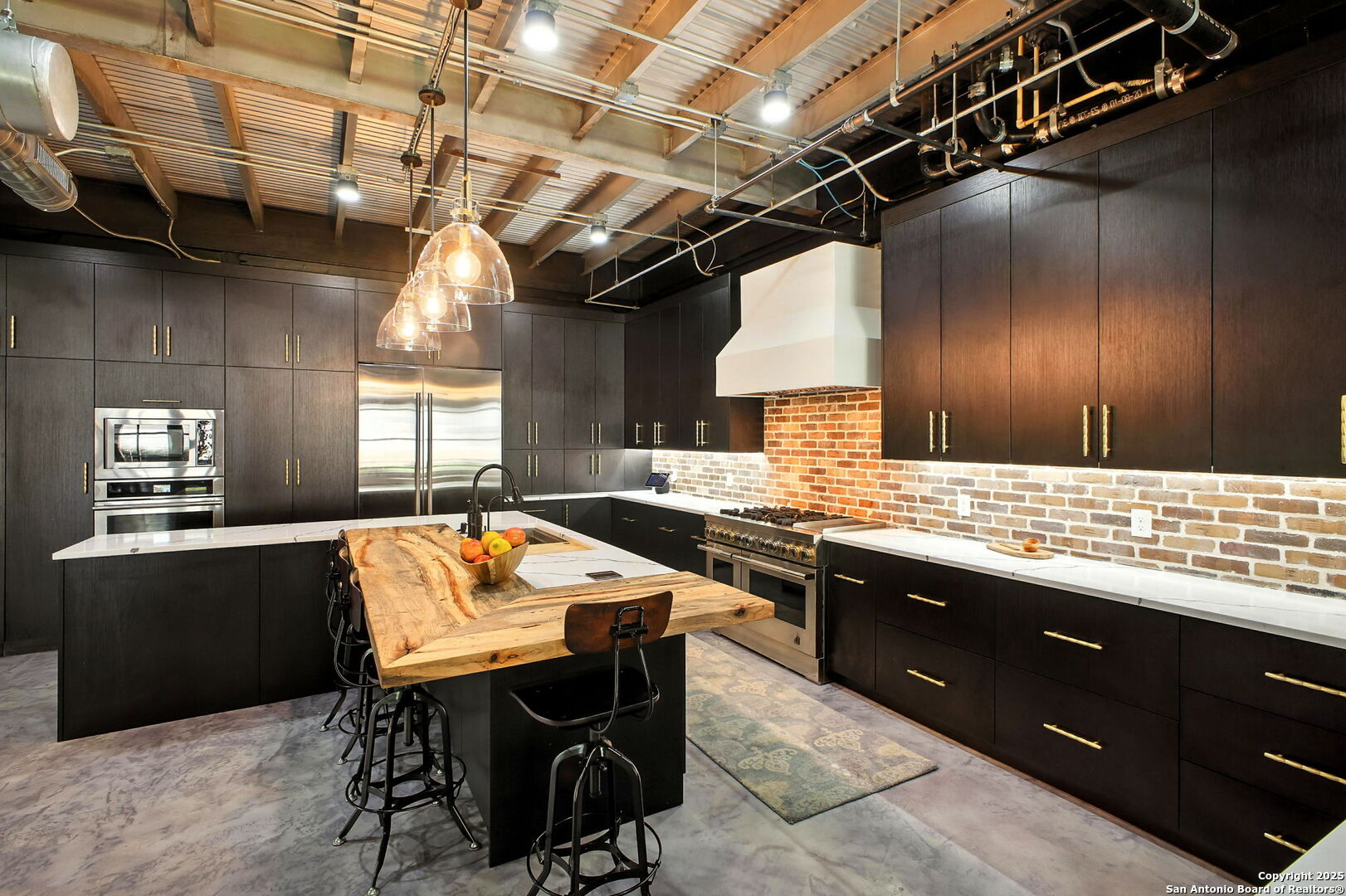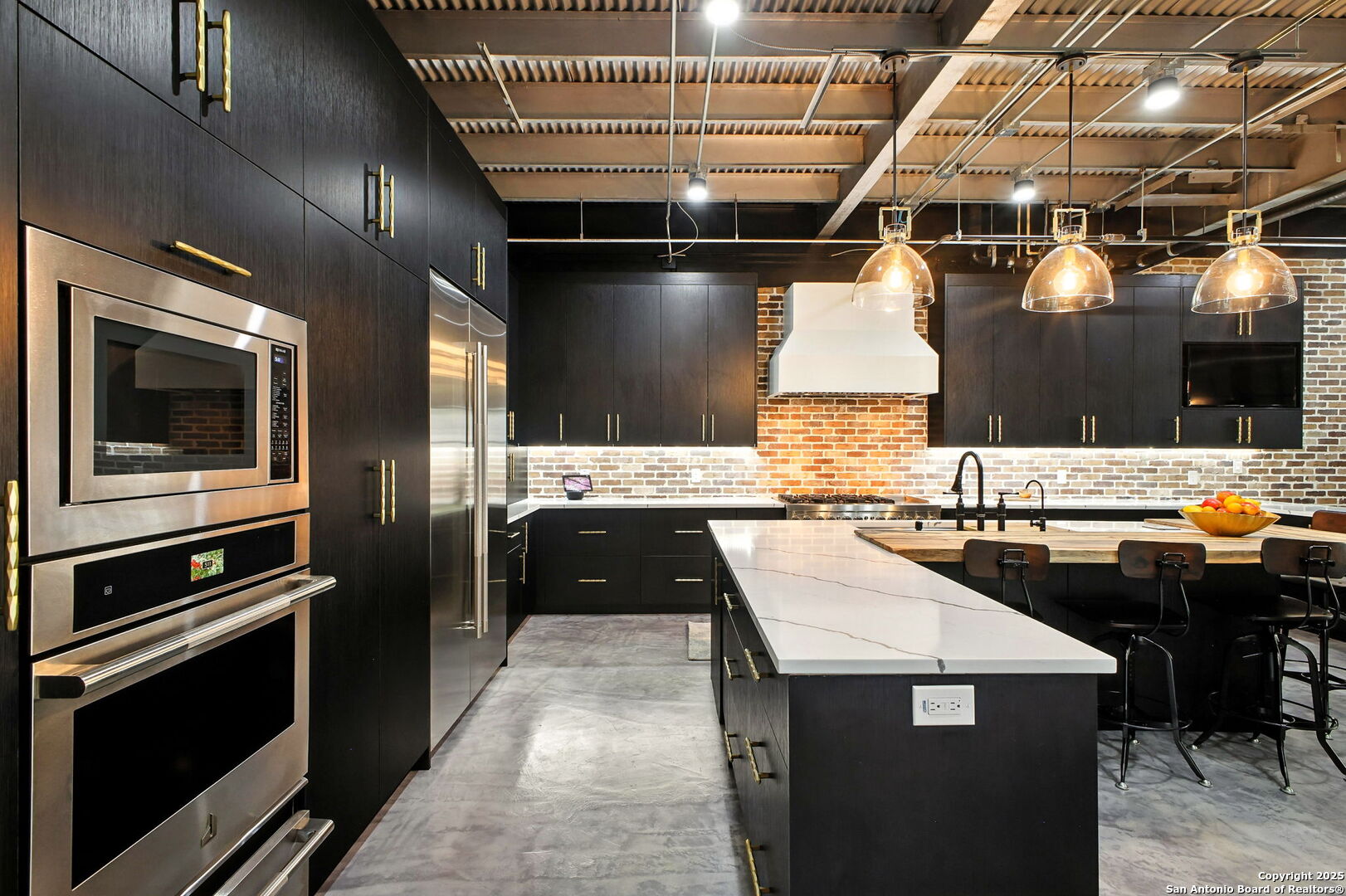 Modern Luxury Meets Industrial Strength in Castle Hills This one-of-a-kind, 5,300 sq. ft. residence sits on a spacious 3/4-acre lot in the heart of Castle Hills and includes a separate 2,400 sq. ft. detached garage/workshop-perfect for hobbyists, collectors, or entrepreneurs. Completely renovated from the studs up, this home was thoughtfully rebuilt to preserve and showcase original steel elements, blending modern comfort with timeless industrial character." -into a stunning four-bedroom, three-and-a-half-bath residence with dual primary suites (one upstairs, one down) and an attached two-car garage. Designed with timeless elegance and lasting durability, the home features commercial-grade steel construction and abundant natural light through expansive windows. Every detail has been thoughtfully curated by interior designers, from premium tile and flooring to refined hardware and fixtures that exude classic sophistication. The gourmet kitchen flows seamlessly into open-concept living and dining areas, while the expansive covered back patio is an entertainer's dream-complete with a full outdoor kitchen. Beyond the patio, a lush lawn leads to a separate 2,400 sq. ft. garage/shop outfitted with three-phase electricity, offering endless possibilities for hobbyists or entrepreneurs. Whether you're operating welding equipment, hydraulic car lifts, or even kilns for ceramics or glassblowing, the power infrastructure is already in place. No detail was overlooked in this thoughtfully engineered home. A rare opportunity to own a truly unique, high-performance property in one of San Antonio's most desirable neighborhoods. Six minutes to Medical Center and 5 minutes to the SA Airport!