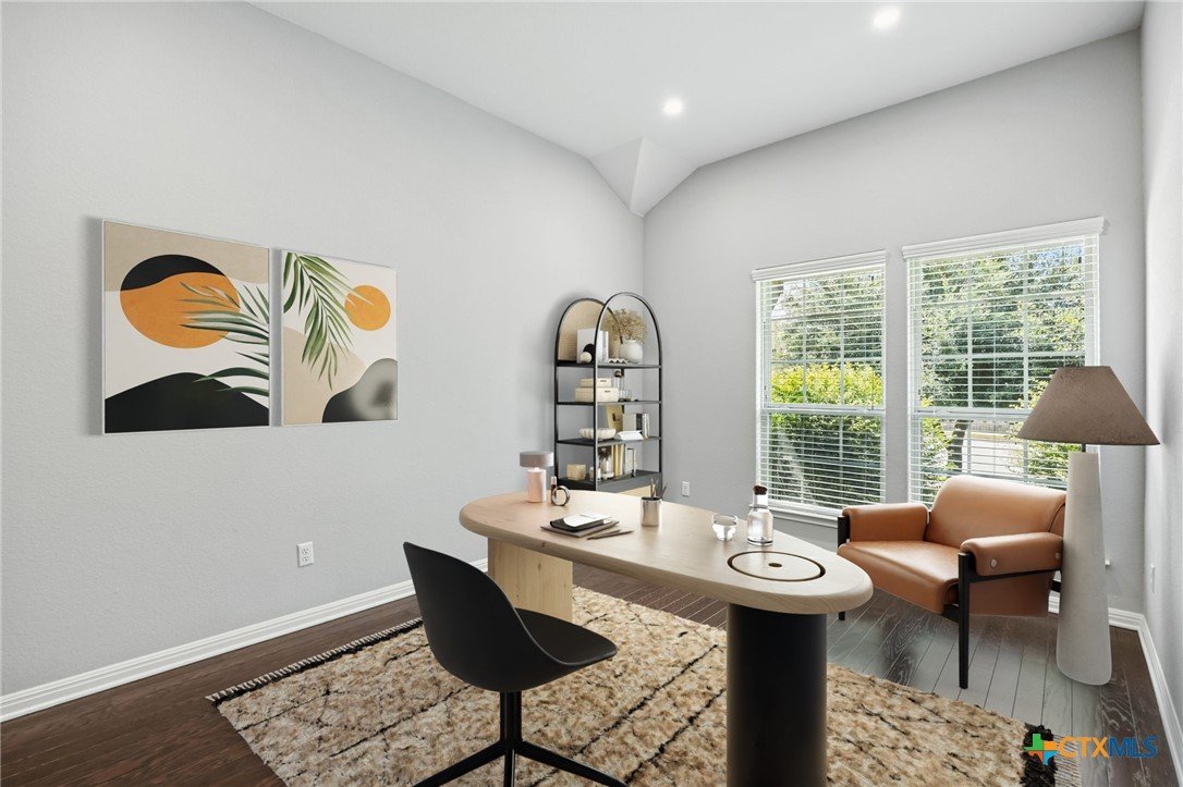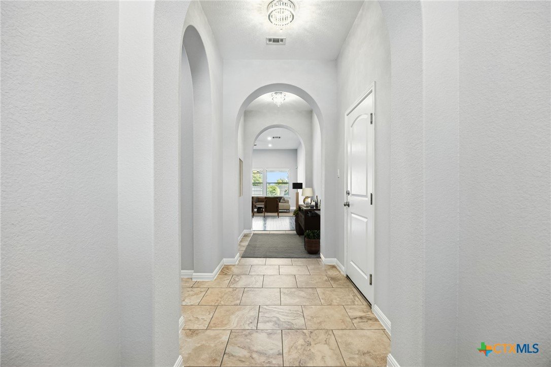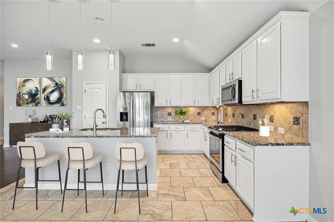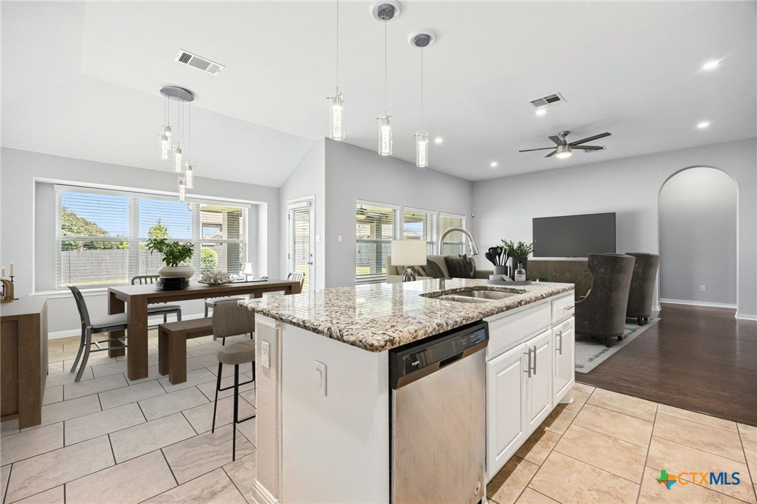 Welcome to this beautifully updated single-story home in the highly sought-after Star Ranch Golf Club community—where style, comfort, and convenience come together. With 2,239 sq ft of thoughtfully designed space, this home features an open floorplan perfect for both gathering and everyday living. The heart of the home is the kitchen, boasting granite countertops, a spacious island, crisp white cabinetry, and stainless steel appliances—all accented by modern light fixtures that bring warmth and charm. You’ll love the wood floors flowing through the main living areas, tile in the wet spaces, and plush new carpet in the bedrooms. The versatile 4th bedroom makes the perfect home office, while the oversized primary suite offers a peaceful retreat with a spa-like ensuite—complete with a soaking tub, standing shower, and a large walk-in closet. Bathrooms are finished with new, modern lighted mirrors for an elevated touch. Outside, a huge lot at the end of the street offers an oversized backyard ready for play, gardening, or simply relaxing. The 2-car garage features epoxy flooring and recessed lighting, giving even the most practical space a polished finish. All this, in a prime location—just 2 minutes to HEB and quick access to 130 Toll for an easy commute to downtown Austin, the airport, major tech companies, and the new Samsung plant in Taylor. Shopping and dining at Stonehill are just 10 minutes away. Come see for yourself why this Star Ranch home is the perfect mix of modern updates, timeless style, and everyday convenience.