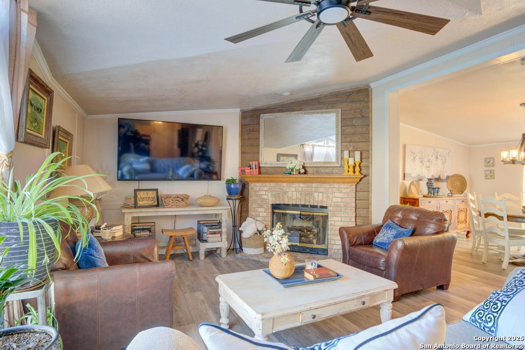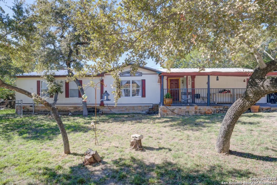 Welcome to 1400 Elmhurst Dr, Lakehills, TX! This charming 3-bedroom, 2-bath home offers 1,848 sq ft of comfortable living in the quiet Avalon community. Step inside to discover an open-concept layout ideal for entertaining, featuring a spacious kitchen with granite countertops, ample cabinetry, and a seamless transition into the cozy living room with a fireplace. Enjoy durable luxury vinyl plank flooring throughout, adding both elegance and easy maintenance. The primary suite includes a double vanity and a separate tub and shower for added comfort. Sitting on a generous 0.37-acre lot with no HOA, the backyard offers ample space for gatherings, play, or relaxation. Conveniently located near local amenities, schools, and parks, this home combines peaceful country living with modern convenience. Schedule your private tour today!