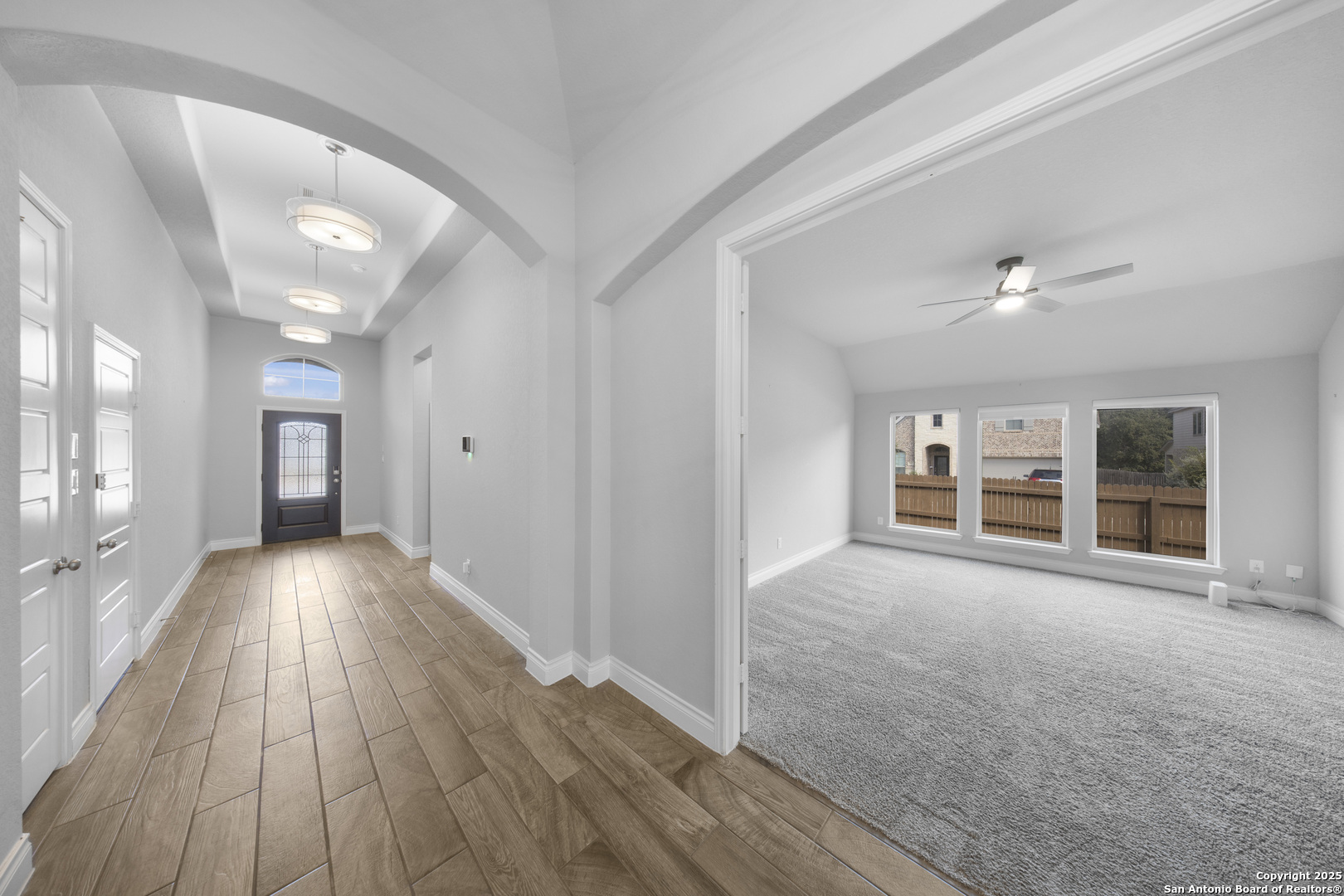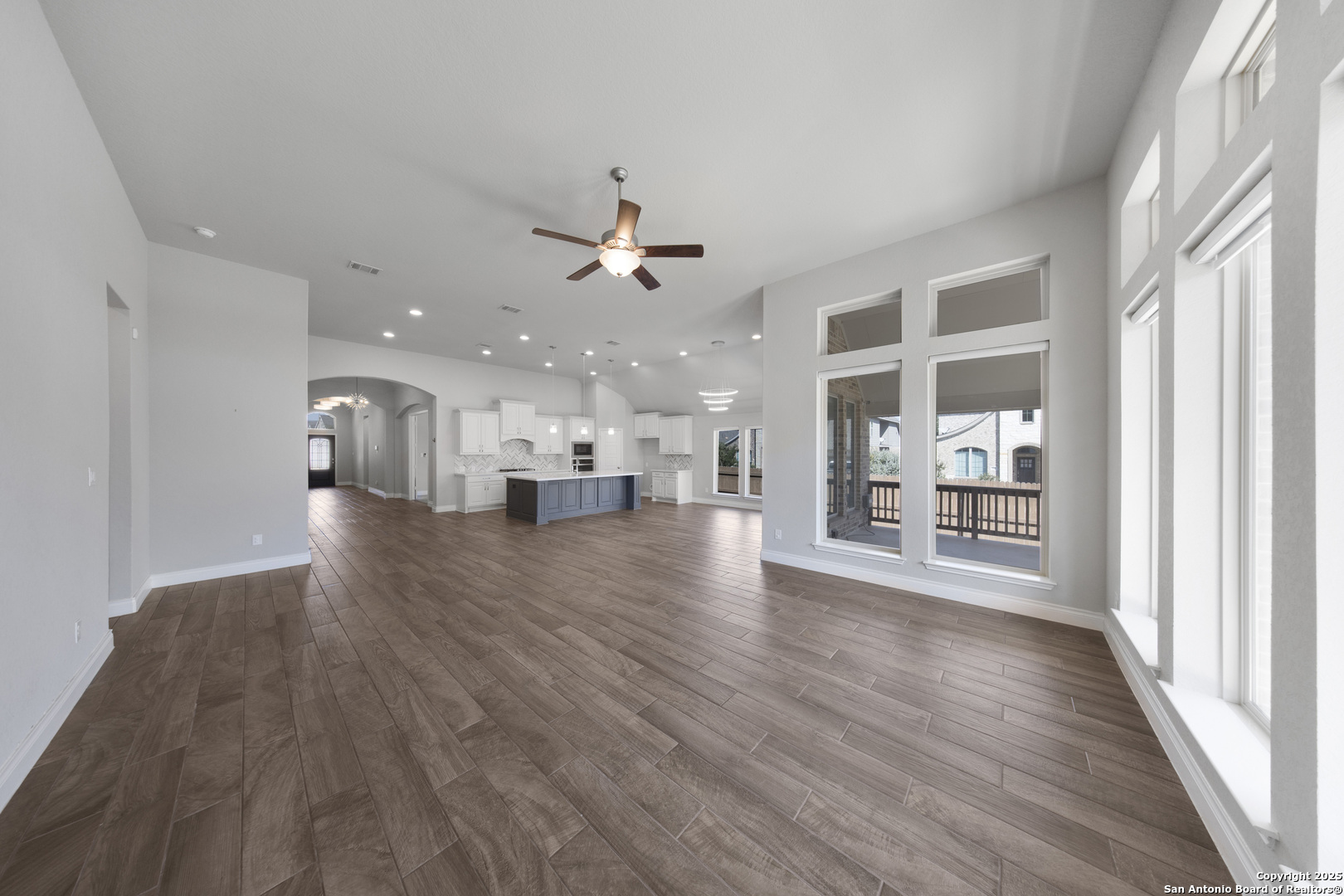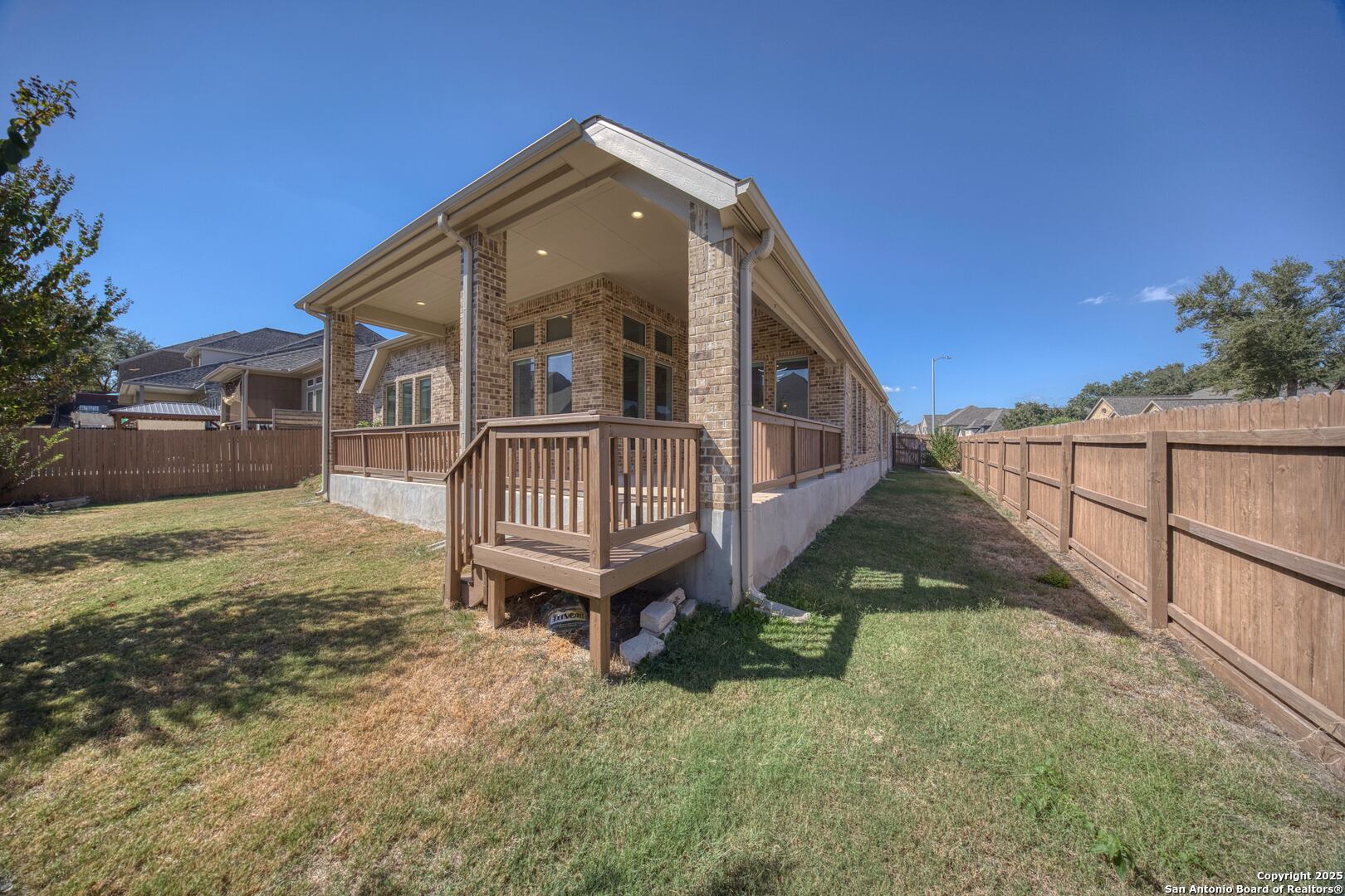 Welcome to this stunning Perry home situated on a corner lot, boasting impressive 12-foot ceilings and a spacious open floor plan that greets you upon entry. The living area is flooded with natural light from the wall of windows. Enjoy the spacious game room with elegant French doors, upgraded fixtures througout, ceiling fans in every room, and cordless blackout blinds throughout the home. Modern updates like exterior, permanent holiday lighting, a tankless water heater, a smart sprinkler controller, and NEMA 14-50 outlet for electric vehicles add impressive touches to this property. Step outside to a large covered patio overlooking a private backyard. With schools and shopping within walking distance and close proximity to Lackland Air Force Base, this home offers both convenience and charm.