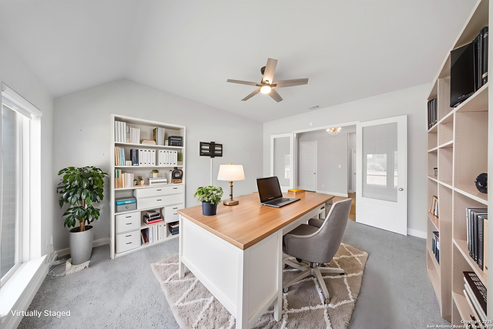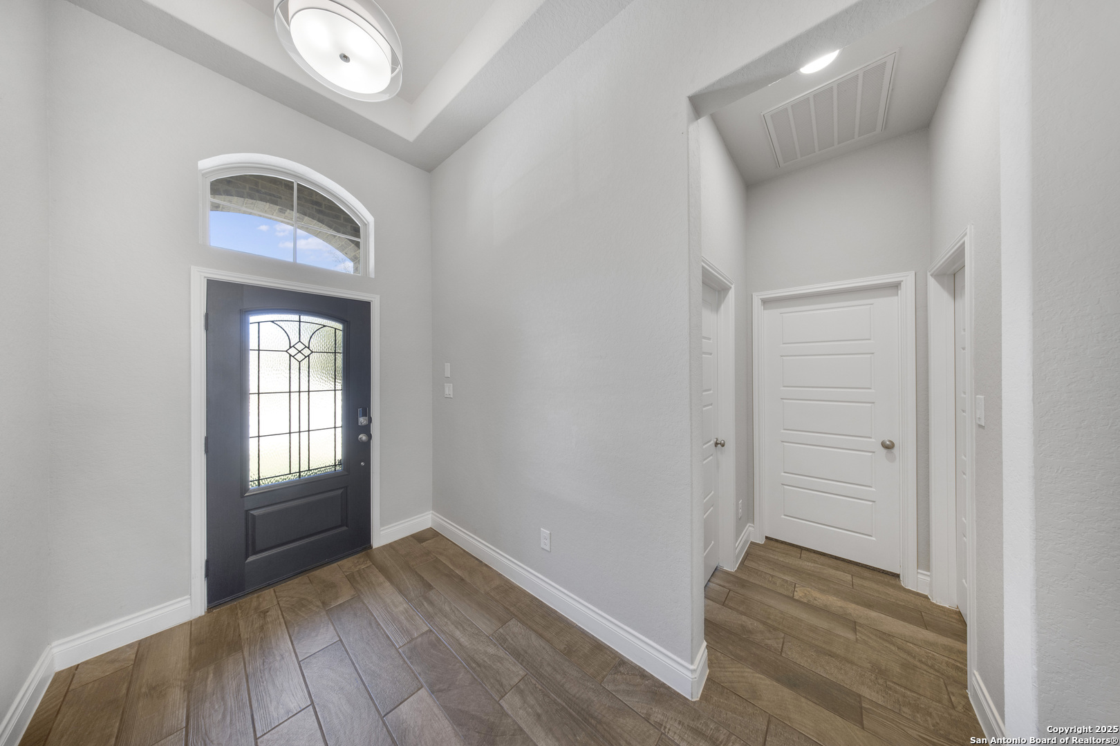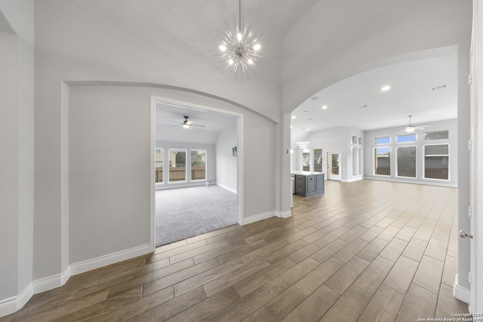 Welcome to this stunning Perry home situated on a corner lot, boasting impressive 12-foot ceilings and a spacious open floor plan that greets you upon entry. The living area is flooded with natural light from the wall of windows. Enjoy the spacious game room with elegant French doors, upgraded fixtures througout, ceiling fans in every room, and cordless blackout blinds throughout the home. Modern updates like exterior, permanent holiday lighting, a tankless water heater, a smart sprinkler controller, and NEMA 14-50 outlet for electric vehicles add impressive touches to this property. Step outside to a large covered patio overlooking a private backyard. With schools and shopping within walking distance and close proximity to Lackland Air Force Base, this home offers both convenience and charm.