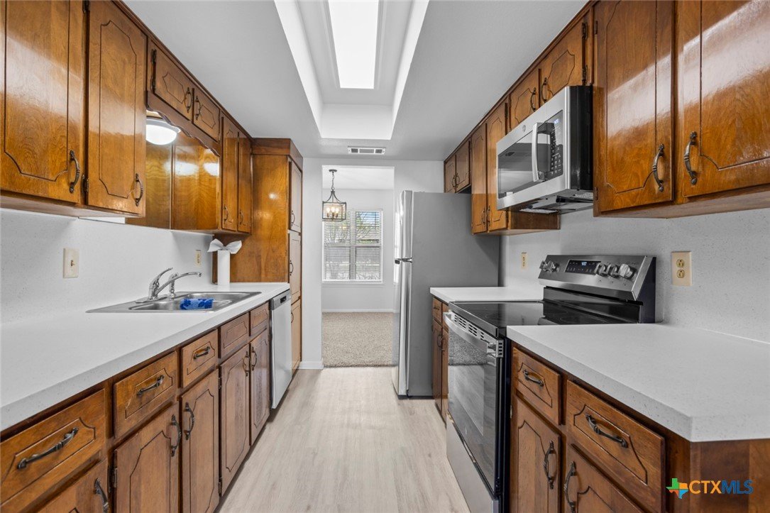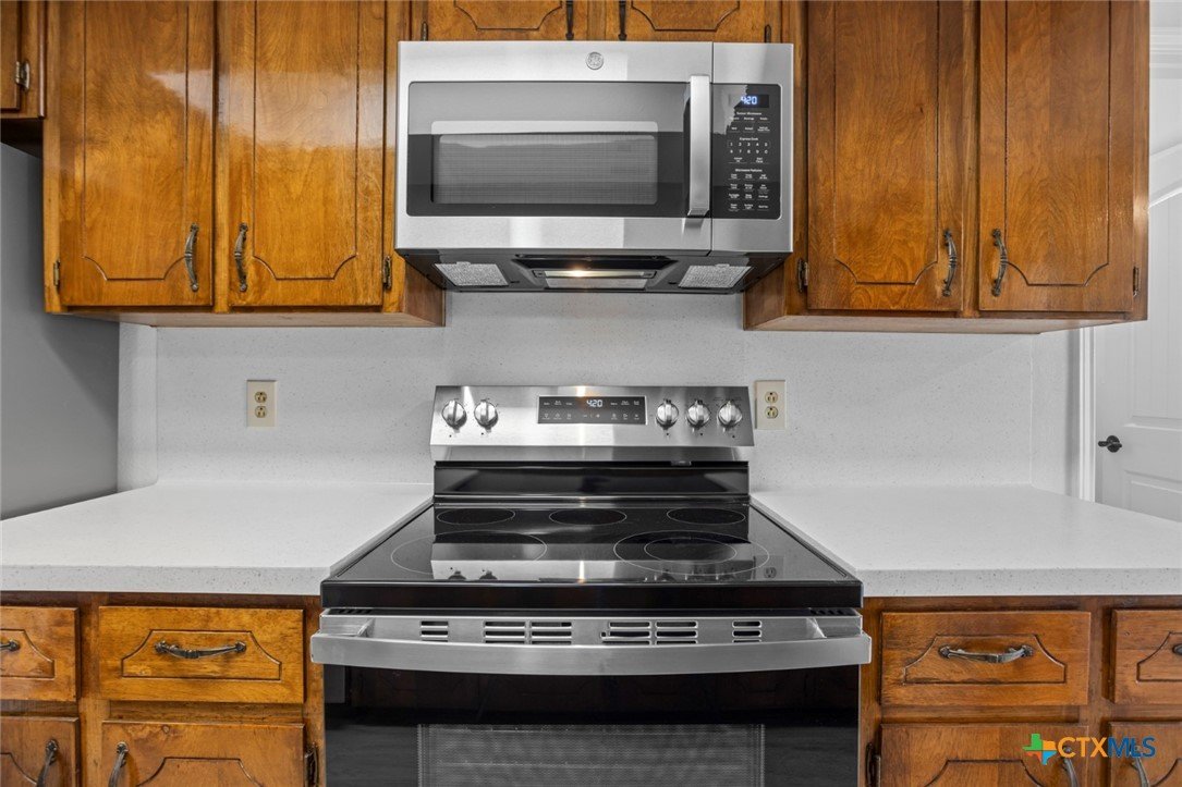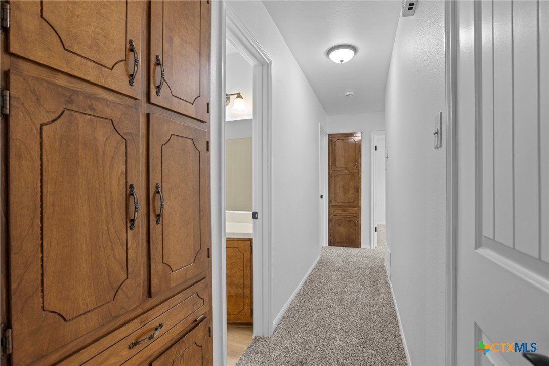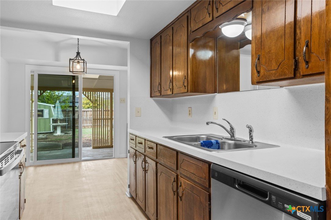 Almost Everything New! This fully redecorated, one-owner home was custom-built in 1978 sits on a spacious double lot combining original character with modern features throughout. The home offers three roomy bedrooms, including a primary suite with a walk-in closet, ensuite bath, walk-in shower, and separate vanity. Two additional bedrooms have large closets for ample storage. Living spaces include a large living room with a wood-burning brick fireplace, a flexible formal living room or study, and a formal dining area. The kitchen features a practical layout with recessed lighting, generous cabinet and counter space, and a cozy breakfast nook that connects to the utility room and back patio. Out back, you'll find a large semi-enclosed covered patio with three skylights—perfect for relaxing outdoors. Updates include new flooring, LED lighting, stainless steel appliances, fresh paint inside and out, retextured walls and ceilings, modern doors, 2” faux wood blinds, and a new roof (installed Fall 2024). The attic has new TAP® Pest Control Insulation with a lifetime transferable warranty. Original wood paneling and cabinetry have been restored and clear-coated, and the classic entry tile remains intact. A modern color palette ties it all together, preserving the home’s retro charm with a fresh, updated feel. A rare find with space, updates, and timeless appeal—don’t miss your chance to call this one home.