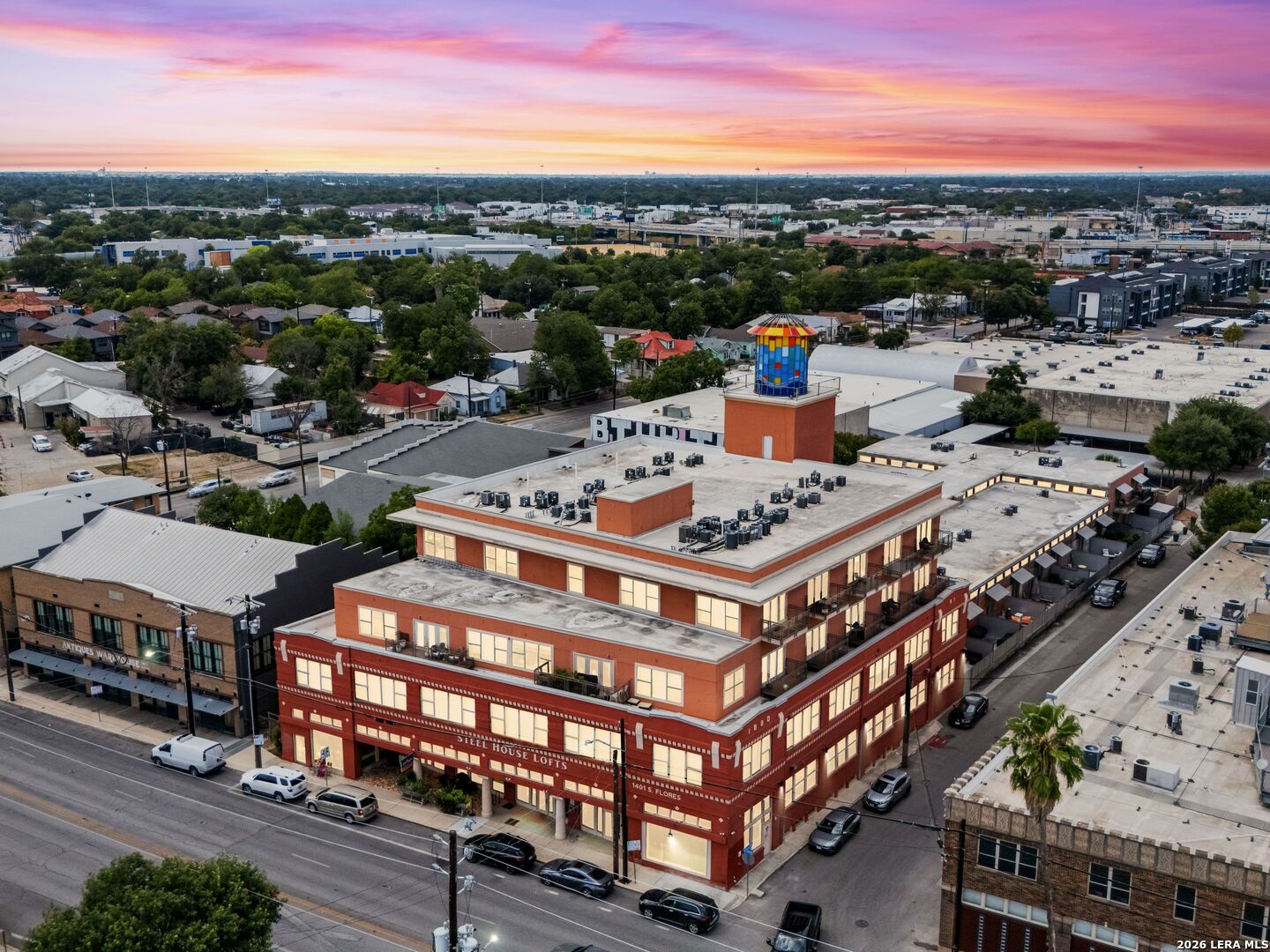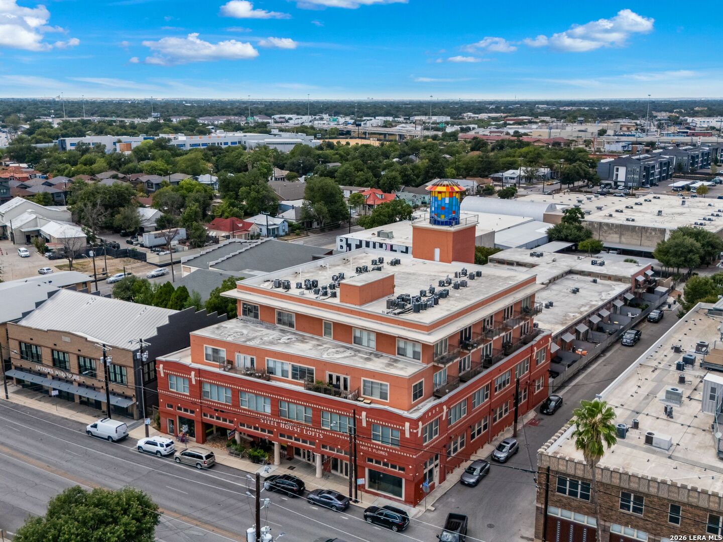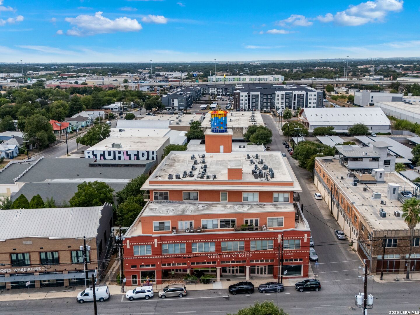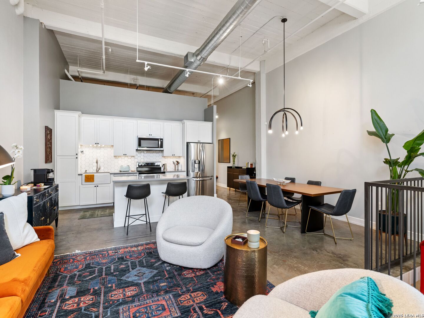 Discover the charm of the historic Peden Iron & Steel building in San Antonio's vibrant Southtown corridor. This stunning two-bedroom, two-bath condo exudes character with its original concrete columns and floors, complemented by high ceilings that create an airy and open atmosphere. The thoughtfully designed kitchen features sleek quartz countertops and modern stainless steel appliances, while both bathrooms fully remodeled showcase contemporary fixtures, including a walk-in shower, tub shower, and dual vanities. Enjoy the luxury of a primary suite complete with a spacious walk-in closet and a cozy sitting area, perfect for relaxation. This unique loft offers versatility with an additional living area that can serve as a movie room, office or study, and boasts custom shades for added privacy. Step outside to your private patio and yard, providing an ideal escape or a space for entertaining. Residents can take advantage of exceptional amenities including a 24-hour fitness center, a beautifully designed community pool with a cabana, and a BBQ area for gatherings. You'll also appreciate the convenience of two covered parking spaces and ample indoor storage unit, all within a gated community. Dog park area close by. Art enthusiasts will delight in the Steel House Art collection that adorns the hallways, creating an inspiring ambiance throughout the building. Located just steps away, offering Southtown's finest in shopping, dining, parks, nightlife, Blue Star Arts Complex, and the iconic Riverwalk and Mission Reach, newly opened San Pedro Creel, this condo offers the perfect blend of urban living and artistic flair. Truly make Downtown San Antonio your backyard when you reside at Steel House Lofts.