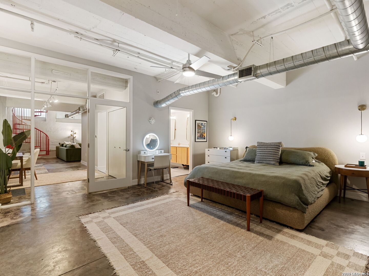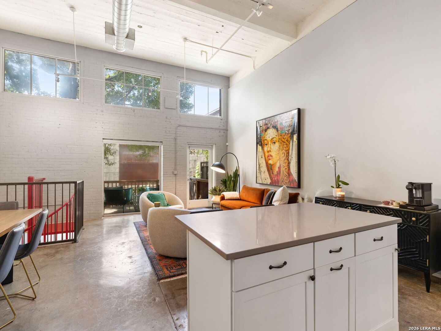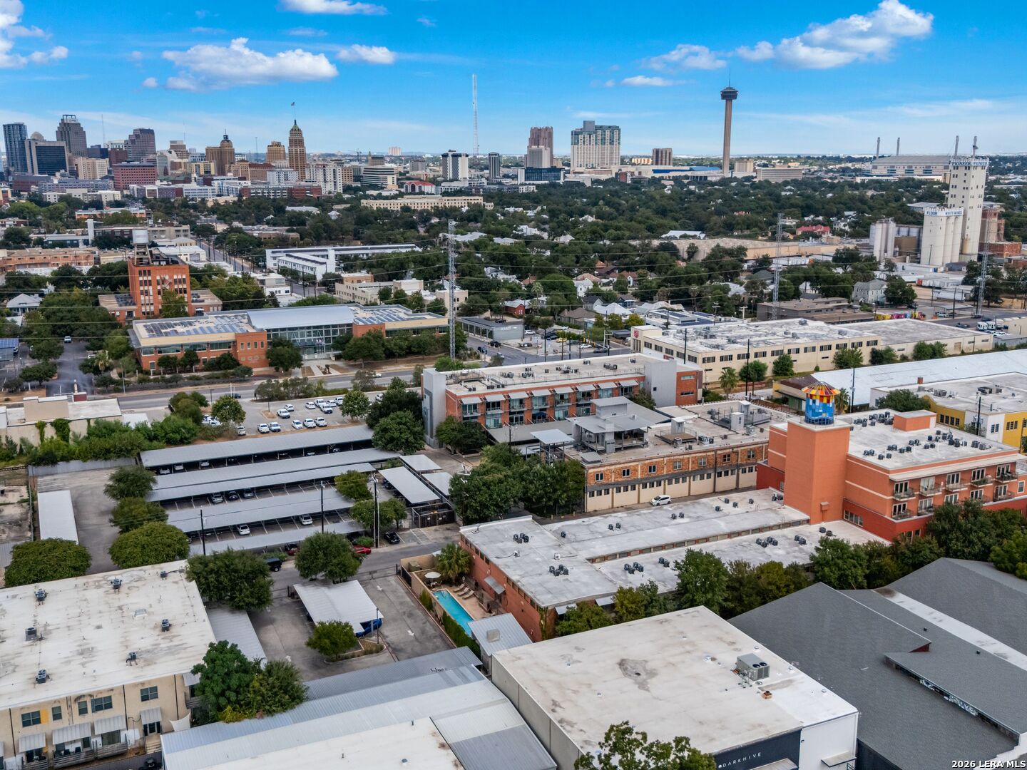 Discover the charm of the historic Peden Iron & Steel building in San Antonio's vibrant Southtown corridor. This stunning two-bedroom, two-bath condo exudes character with its original concrete columns and floors, complemented by high ceilings that create an airy and open atmosphere. The thoughtfully designed kitchen features sleek quartz countertops and modern stainless steel appliances, while both bathrooms fully remodeled showcase contemporary fixtures, including a walk-in shower, tub shower, and dual vanities. Enjoy the luxury of a primary suite complete with a spacious walk-in closet and a cozy sitting area, perfect for relaxation. This unique loft offers versatility with an additional living area that can serve as a movie room, office or study, and boasts custom shades for added privacy. Step outside to your private patio and yard, providing an ideal escape or a space for entertaining. Residents can take advantage of exceptional amenities including a 24-hour fitness center, a beautifully designed community pool with a cabana, and a BBQ area for gatherings. You'll also appreciate the convenience of two covered parking spaces and ample indoor storage unit, all within a gated community. Dog park area close by. Art enthusiasts will delight in the Steel House Art collection that adorns the hallways, creating an inspiring ambiance throughout the building. Located just steps away, offering Southtown's finest in shopping, dining, parks, nightlife, Blue Star Arts Complex, and the iconic Riverwalk and Mission Reach, newly opened San Pedro Creel, this condo offers the perfect blend of urban living and artistic flair. Truly make Downtown San Antonio your backyard when you reside at Steel House Lofts.