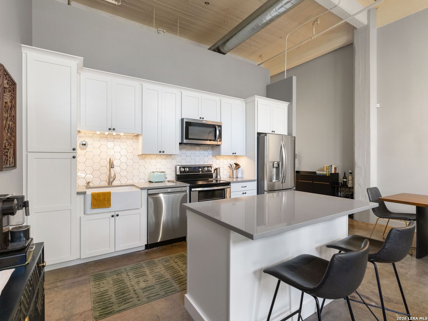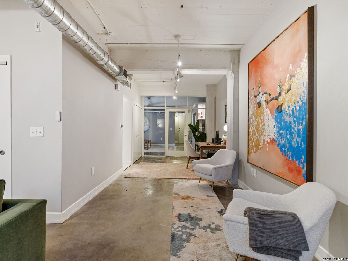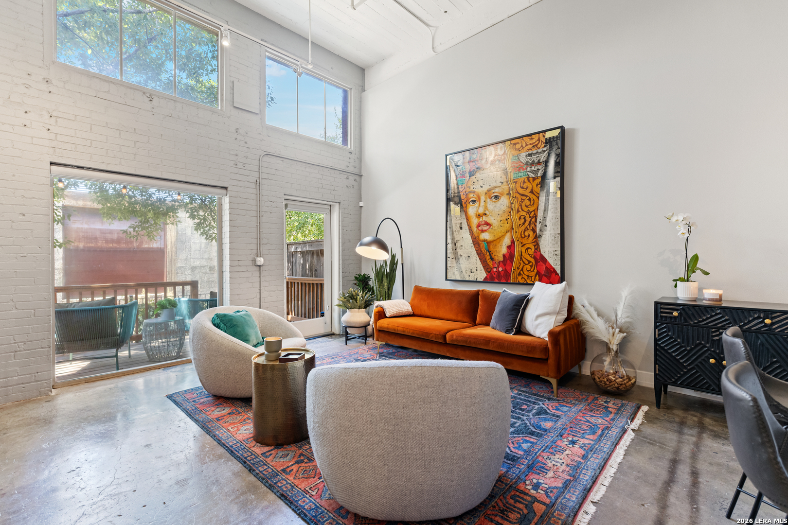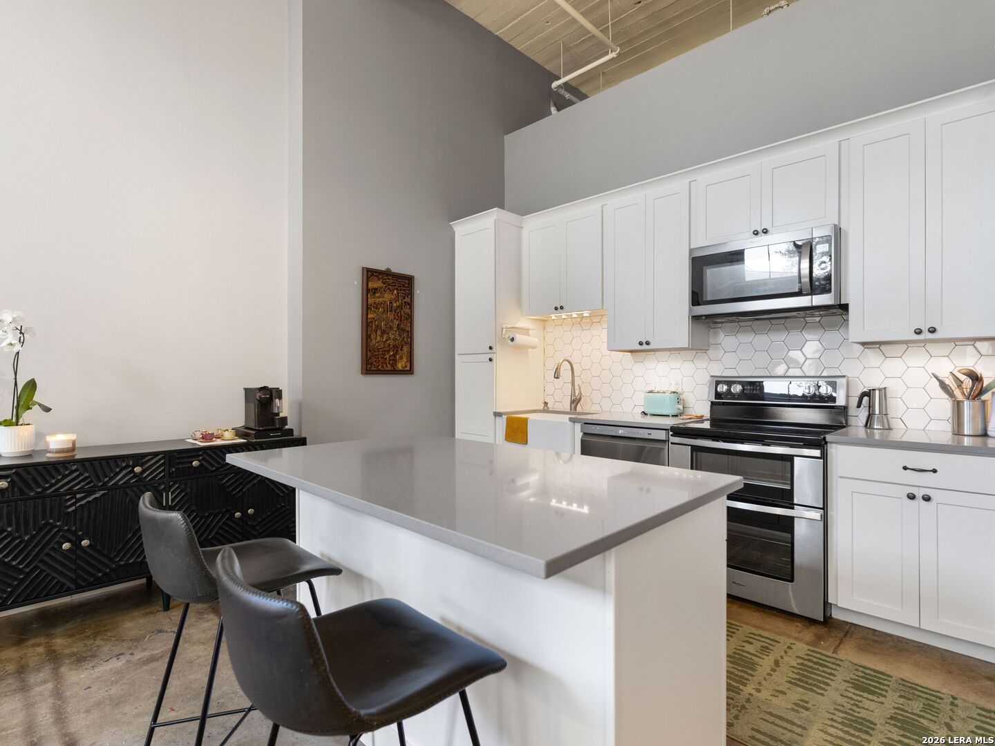 Discover the charm of the historic Peden Iron & Steel building in San Antonio's vibrant Southtown corridor. This stunning two-bedroom, two-bath condo exudes character with its original concrete columns and floors, complemented by high ceilings that create an airy and open atmosphere. The thoughtfully designed kitchen features sleek quartz countertops and modern stainless steel appliances, while both bathrooms fully remodeled showcase contemporary fixtures, including a walk-in shower, tub shower, and dual vanities. Enjoy the luxury of a primary suite complete with a spacious walk-in closet and a cozy sitting area, perfect for relaxation. This unique loft offers versatility with an additional living area that can serve as a movie room, office or study, and boasts custom shades for added privacy. Step outside to your private patio and yard, providing an ideal escape or a space for entertaining. Residents can take advantage of exceptional amenities including a 24-hour fitness center, a beautifully designed community pool with a cabana, and a BBQ area for gatherings. You'll also appreciate the convenience of two covered parking spaces and ample indoor storage unit, all within a gated community. Dog park area close by. Art enthusiasts will delight in the Steel House Art collection that adorns the hallways, creating an inspiring ambiance throughout the building. Located just steps away, offering Southtown's finest in shopping, dining, parks, nightlife, Blue Star Arts Complex, and the iconic Riverwalk and Mission Reach, newly opened San Pedro Creel, this condo offers the perfect blend of urban living and artistic flair. Truly make Downtown San Antonio your backyard when you reside at Steel House Lofts.