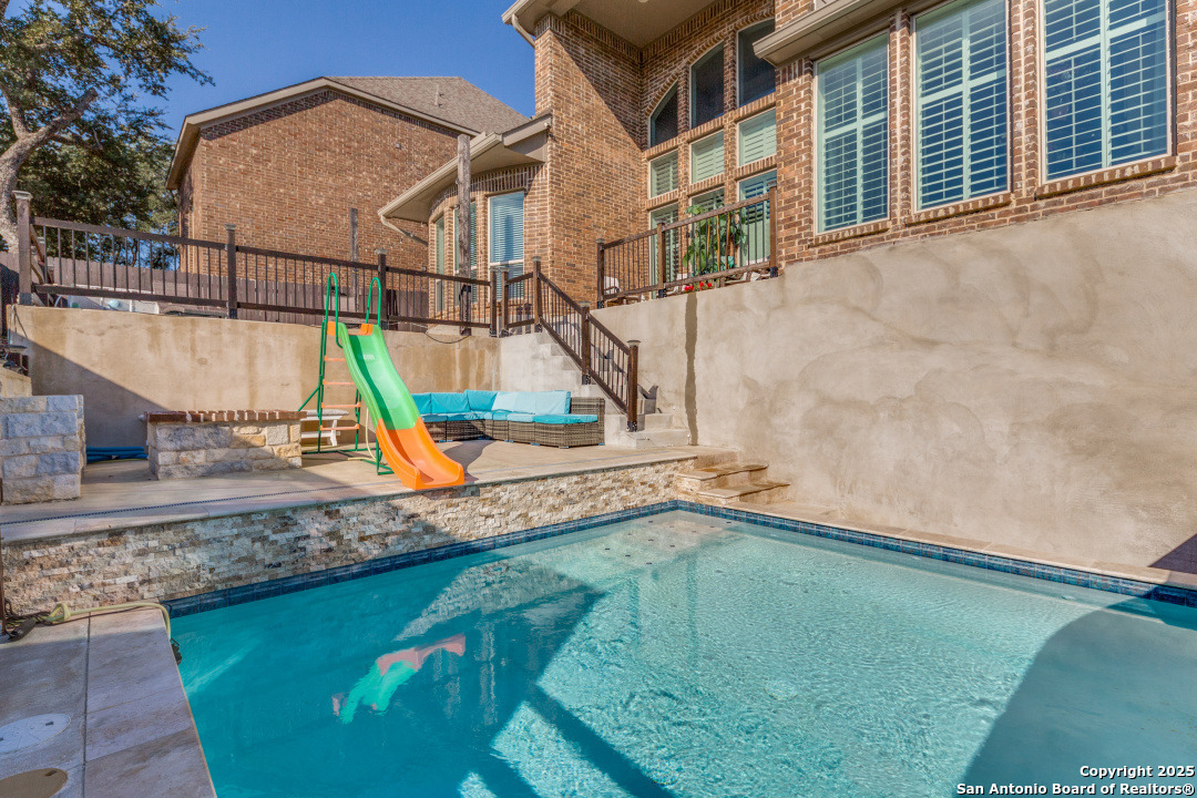 The Crown Jewel of the Neighborhood - Where Luxury Meets Lifestyle! Welcome home to 14014 Rosetta located in one of San Antonio's most sought-after subdivisions-an expansive, show-stopping retreat where everyday living feels like a getaway. With over $250K in thoughtful upgrades, plus additional recent enhancements by the current owners, this stunning home is more than move-in ready-it's a complete lifestyle upgrade. Inside, you'll find soaring ceilings, sun-drenched open spaces, & a design with something for everyone (& all their guests!). The spa-like primary suite is your private oasis, while multiple guest suites with private baths & walk-in closets-upstairs & down-make this home perfect for multigenerational living or frequent visitors. The remodeled loft adds incredible flex space with its new marble floors & "gamer's paradise", playroom, or home office, & is just steps away from your state-of-the-art media room for the ultimate movie nights. Don't miss the two oversized "Texas basements" offering hard-to-find, massive storage potential. Step outside to discover your own private resort: a heated, lighted pool with a cascading water feature, a fire pit for cool evenings under the stars, & two tiered patios designed for unforgettable entertaining. The space is pre-plumbed for an outdoor kitchen & bath, ready for you to make it your own. Located with unbeatable convenience to everything on San Antonio's fast-growing Northwest side-top schools, shopping, dining, medical offices & major employers-this home offers not only size & style but also an exceptional address. Schedule your private tour today! Come see what it means to truly upgrade your lifestyle. This is more than a home-it's a statement.