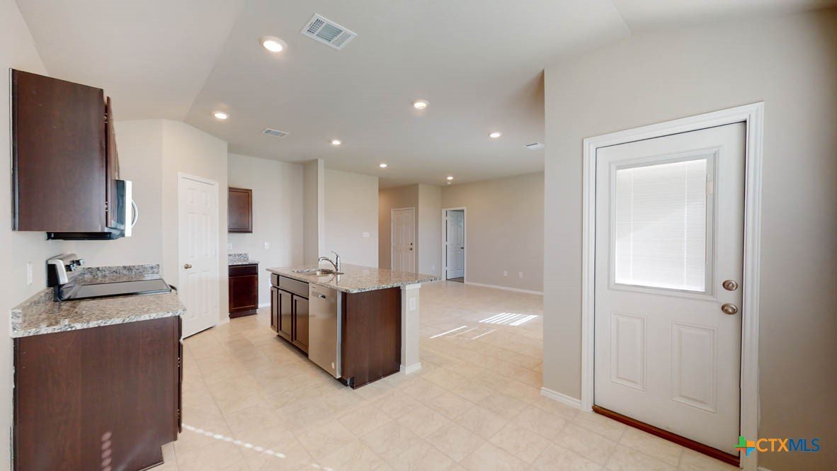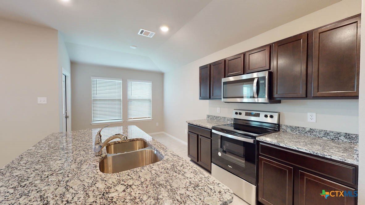 The Ashburn plan is a one-story home featuring 3 bedrooms, 2 baths, and 2 car-garage. The entry opens to the guest bedrooms and bath with hall linen closet. The kitchen includes a breakfast bar with beautiful counter tops, stainless steel appliances, corner pantry and opens to family room. Bedroom 1 offers privacy along with attractive bathroom features such as dual vanities, water closet and walk-in closet. The standard rear covered patio is located off the dining area. You’ll enjoy added security in your new DR Horton home with our Home is Connected features. Using one central hub that talks to all the devices in your home, you can control the lights, thermostat and locks, all from your cellular device. DR Horton also includes an Amazon Echo Dot to make voice activation a reality in your new Smart Home on select homes. With D.R. Horton's simple buying process and ten-year limited warranty, there's no reason to wait. (Prices, plans, dimensions, specifications, features, incentives, and availability are subject to change without notice obligation)