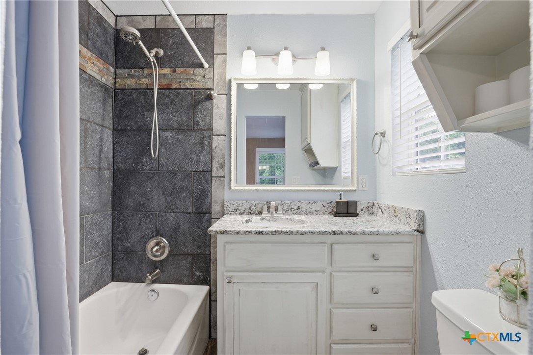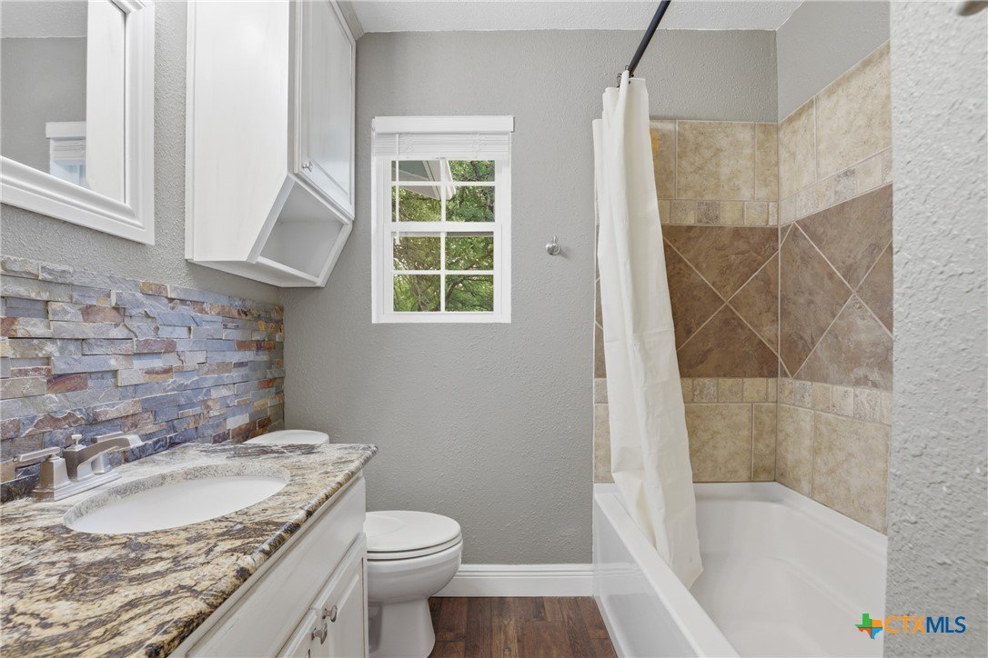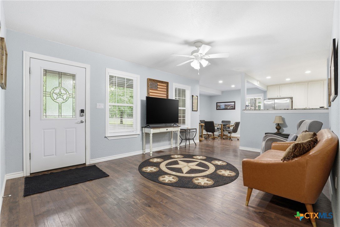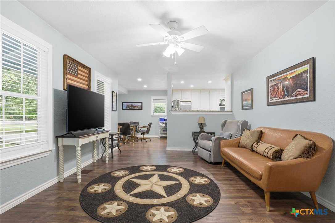 Charming, fully updated home on 1.5 fenced acres in the heart of Lampasas! This 3 bedroom, 2 bath home offers 1,280 square feet of thoughtfully designed living space with an open-concept layout that feels bright, spacious, and welcoming. The kitchen features beautiful granite countertops and flows seamlessly into the living and dining areas—perfect for everyday living or entertaining. Outside, you’ll find the perfect blend of functionality and country charm. The property includes a 2.5-car garage with a dedicated laundry room, a fenced garden area for your homegrown projects, and a barn for storage, hobbies, or animals. The entire acreage is fenced, offering privacy and versatility. Enjoy peaceful surroundings with stunning mature trees while still being just minutes from downtown Lampasas. As an added bonus, this property borders Hancock Park Golf Course, giving you scenic views and easy access to outdoor recreation. If you’re looking for updated comfort, usable land, and a prime location, this one checks all the boxes!