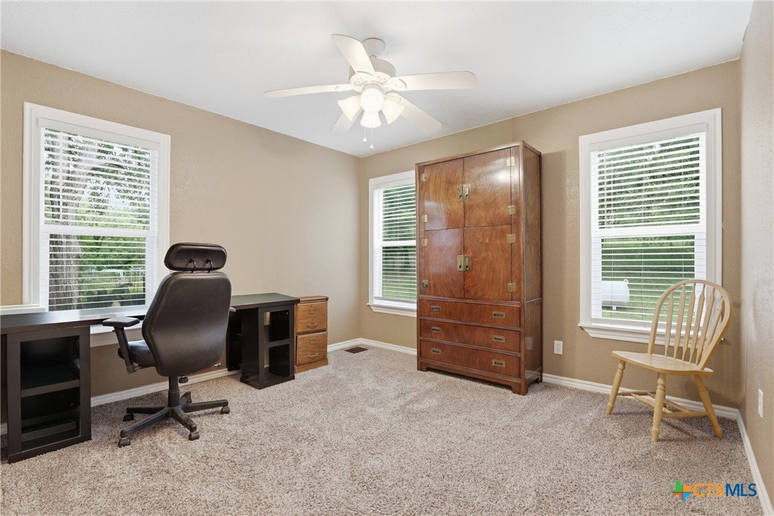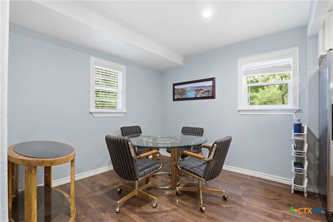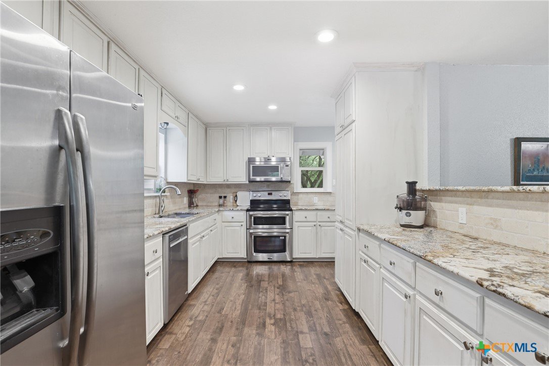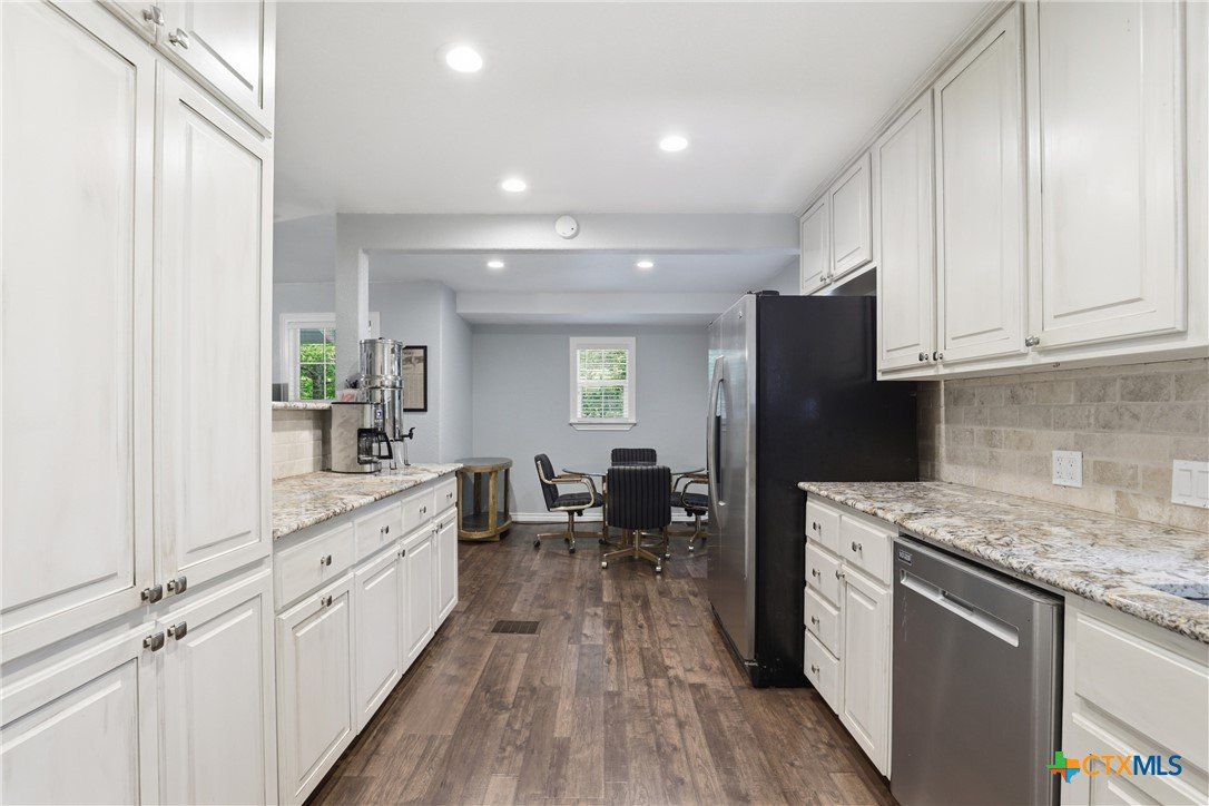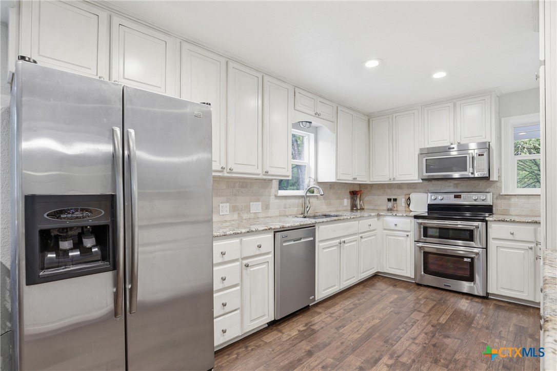 Charming, fully updated home on 1.5 fenced acres in the heart of Lampasas! This 3 bedroom, 2 bath home offers 1,280 square feet of thoughtfully designed living space with an open-concept layout that feels bright, spacious, and welcoming. The kitchen features beautiful granite countertops and flows seamlessly into the living and dining areas—perfect for everyday living or entertaining. Outside, you’ll find the perfect blend of functionality and country charm. The property includes a 2.5-car garage with a dedicated laundry room, a fenced garden area for your homegrown projects, and a barn for storage, hobbies, or animals. The entire acreage is fenced, offering privacy and versatility. Enjoy peaceful surroundings with stunning mature trees while still being just minutes from downtown Lampasas. As an added bonus, this property borders Hancock Park Golf Course, giving you scenic views and easy access to outdoor recreation. If you’re looking for updated comfort, usable land, and a prime location, this one checks all the boxes!