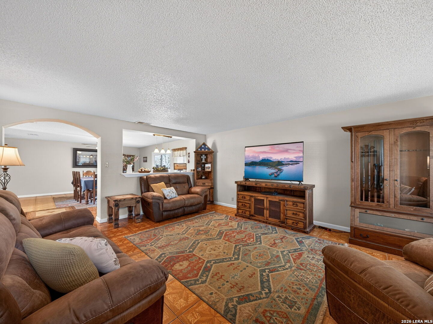 Country-style living in Hondo TX with open-concept layout, modern updates, covered patio, and easy commute to San Antonio. Located west of San Antonio with convenient access to the metro area, this property provides a balance of small-town setting and commuter accessibility. Inside, the home features a spacious kitchen with abundant cabinetry and generous counter space for food preparation. The kitchen opens to a large dining area and living space, creating a seamless flow that supports both everyday living and gatherings. The open layout enhances the overall sense of space while maintaining defined living areas. Recent updates include upgraded windows and sliding glass door, an upgraded thermal garage door, refreshed landscaping, and Owens Corning 50-year roof shingles installed in 2021. An LG Smart refrigerator with craft ice maker, along with a Maytag washer and dryer, will convey with the home. Outdoor features include a covered patio, offering a space to enjoy the surrounding environment and outdoor relaxation. The backyard includes a fenced area with a dedicated pet enclosure, along with additional usable space. This Hondo TX home combines open-concept living, updated features, and outdoor space, all within reach of San Antonio, making it a strong option for those seeking a balance between town and city access.