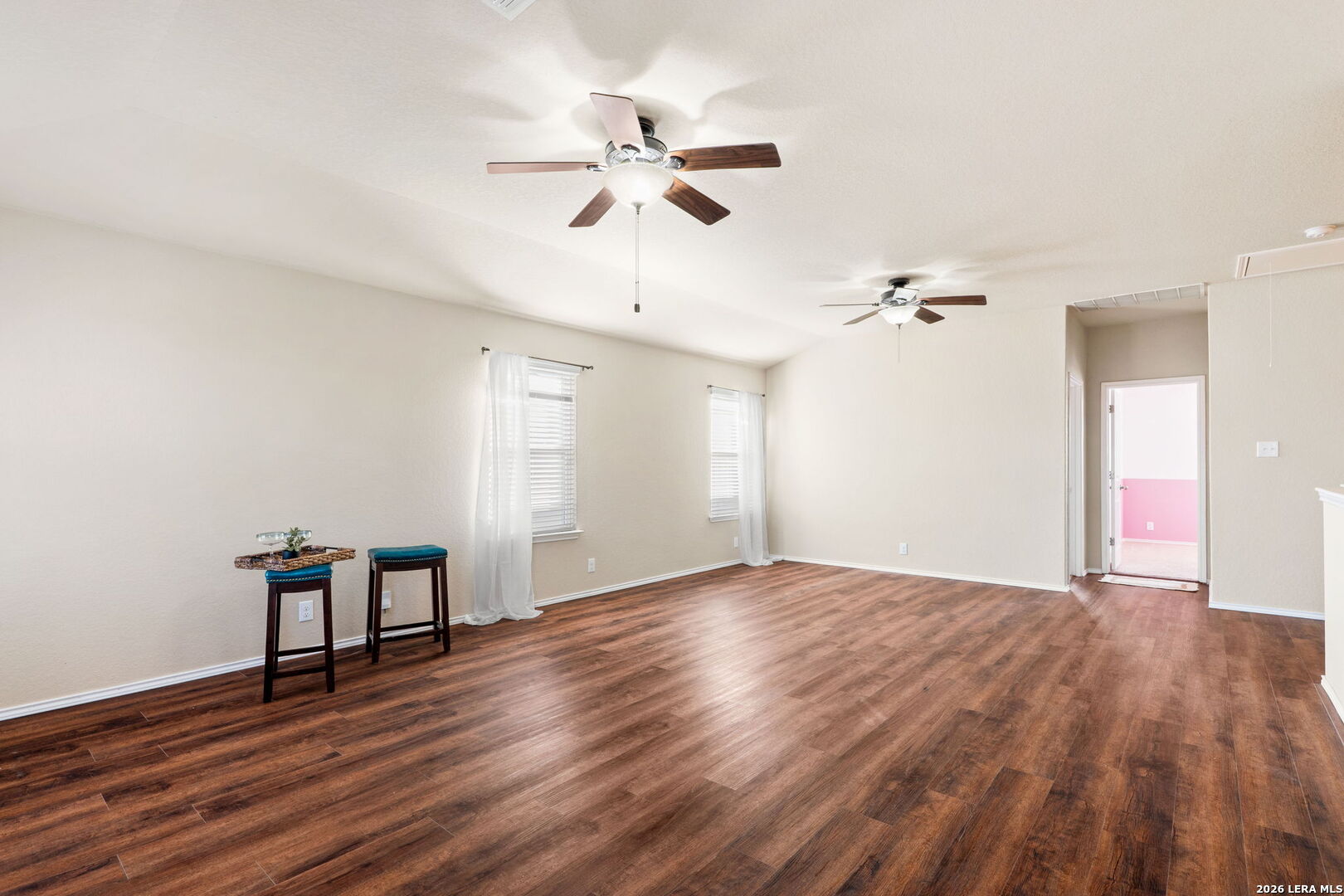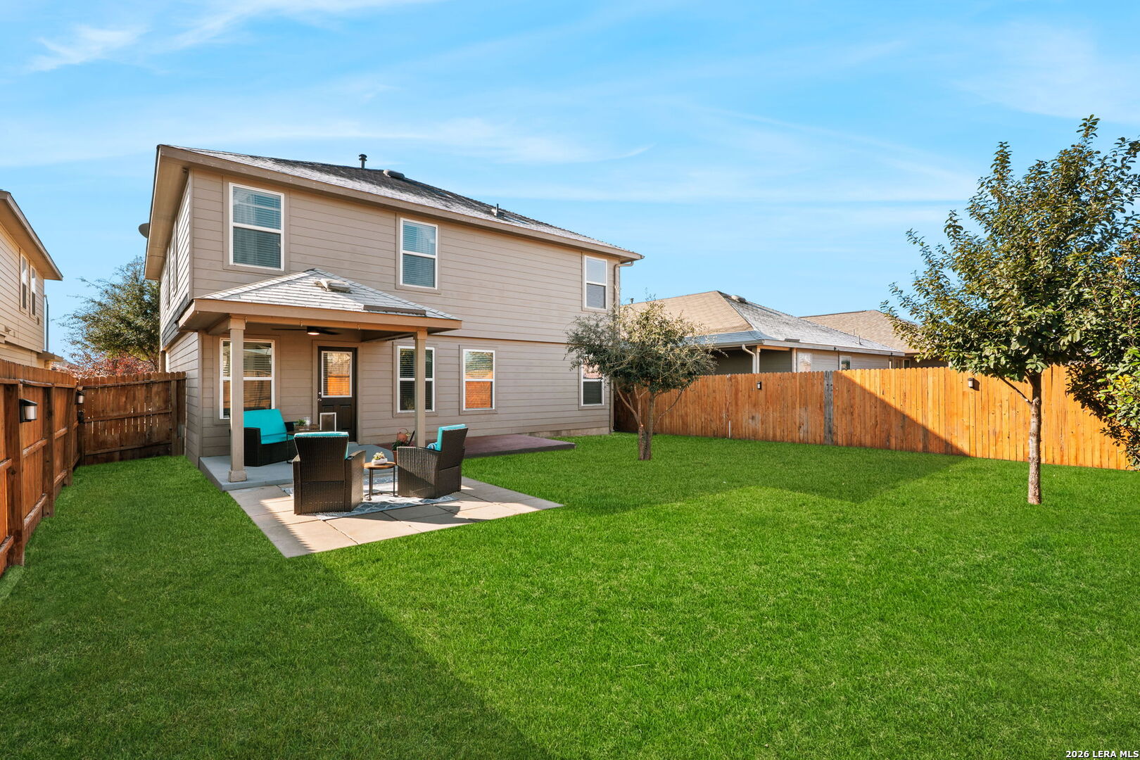 Welcome to a thoughtfully designed home ideal for multigenerational living. Featuring two living areas, two dining spaces, and an inviting outdoor living space, this versatile floor plan offers comfort and flexibility for today's lifestyle. Conveniently located near schools, H-E-B, and popular dining options, the home includes a spacious upper level with four bdrms (or three bdrms and a dedicated office study) and two bths arranged around an open family loft space. The private, main-level primary suite boasts newly installed carpet, an en-suite bath, and a relaxing garden tub. The kitchen serves as the heart of the home with a central island eating area, perfect for everyday living and entertaining. Upstairs, enjoy movie nights, while the backyard invites cozy evenings around the fire pit. Residents of Valley Ranch enjoy outstanding amenities, including a pristine pool, water park, sports courts, playground, exercise room, and a pier--offering a true community lifestyle.