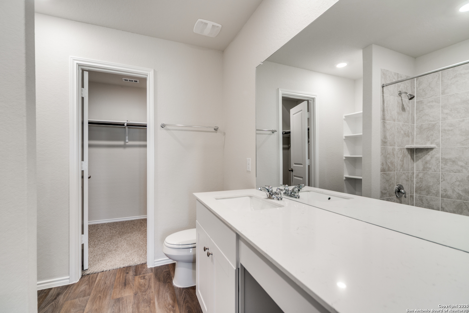 Welcome home to this recently built, one story house! As you enter the front door, you are greeted with high ceilings, luxury vinyl floors, a neutral color palette, and an open concept. With 3 bedrooms and 2 full baths, it is the perfect blend of functionality and timeless elegance. Built in 2025, this home is still under the builder's warranty and offers a like-new home feel. The kitchen features gas cooking, built-in microwave, walk-in pantry and a kitchen island with seating. The master bedroom is equipped with an en suite bathroom with double sinks. Located on a corner lot, the backyard gives ample space for entertaining and relaxation. Schedule your showing today!