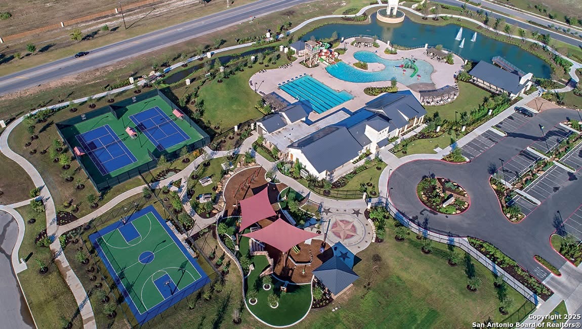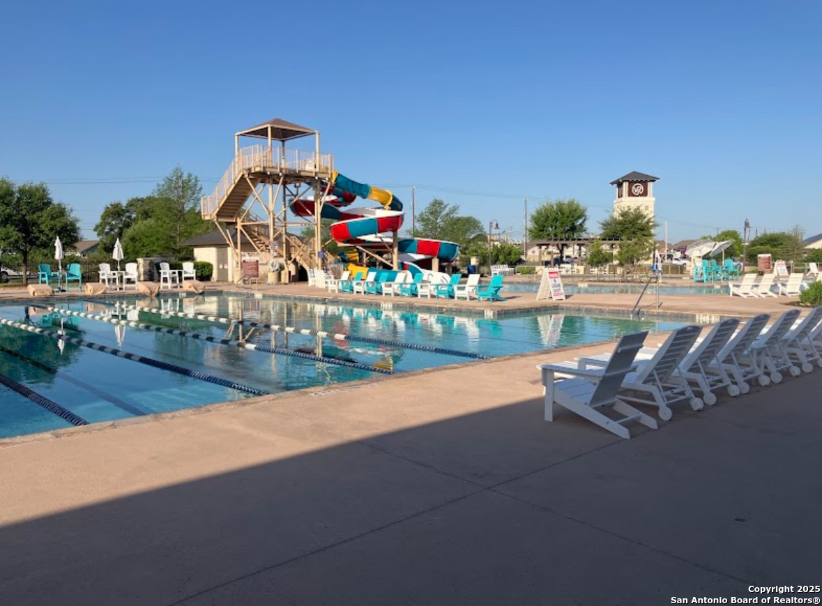 Welcome to this beautifully maintained 5-bedroom, 2.5-bath home offering the perfect blend of space, style, and comfort. Designed with functionality in mind, this home features an open-concept floor plan ideal for both everyday living and entertaining. The primary suite is conveniently located on the main floor, providing privacy and ease of access, complete with a spacious en suite bath and walk-in closet. Upstairs, you'll find four generously sized secondary bedrooms and a large game room-a flexible space perfect for a playroom or additional lounge area. Step outside to your private backyard oasis, where you can enjoy year-round outdoor living with built-in fire pit area that make it an ideal spot for relaxing evenings under the stars or entertaining friends and family. As part of a highly sought-after community, you'll enjoy access to some of the best amenities in San Antonio, including resort-style pool, playgrounds, sports courts, and more-offering a vibrant lifestyle for all ages. HVAC was replaced less than 1 year ago.