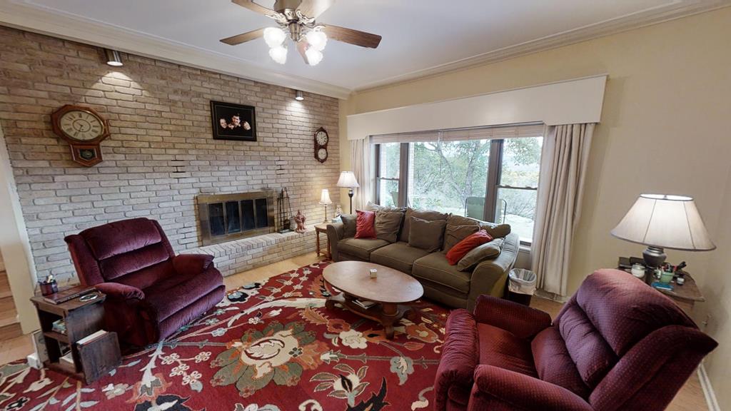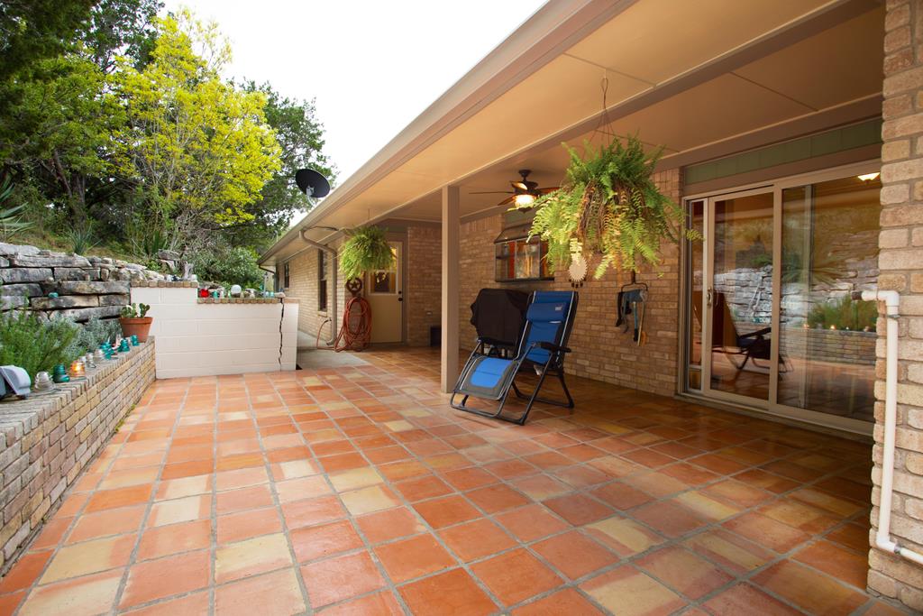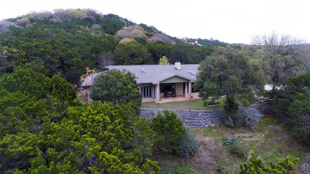 Enjoy the seclusion of this oversized 1.31 acre lot at end of cul-de-sac that backs up to Tivy Mountain. Nestled in the woods, you feel like you are in the country but in reality only 5 minutes from downtown! Relax and take in the serenity on the covered Saltillo tile porches. Enjoy exceptional views of the city and wildlife from the front porch or the massive natural rock water fountain and woods on the rear porch. Tremendous amounts of native “blue rock” ledge stones line the front and rear terraces -- have to see it to believe it! Inside you'll enter the chandeliered foyer with view to the rear fountain and enjoy the 10' ceilings throughout most of the home. Relax in the great room with wood burning fireplace and view of the city below. The home features two living areas and dining area plus breakfast room as well as a large game room (or craft room, office, etc). Beautiful master suite, good sized guest bedrooms, and loads of closets and storage! Roof shingles replaced in 2017 and complete exterior paint job. You can enjoy a virtual tour of the home at https://my.matterport.com/show/?m=9V7hLf75F3x&brand=0 but you have to experience the location in person! Owner is LREA.