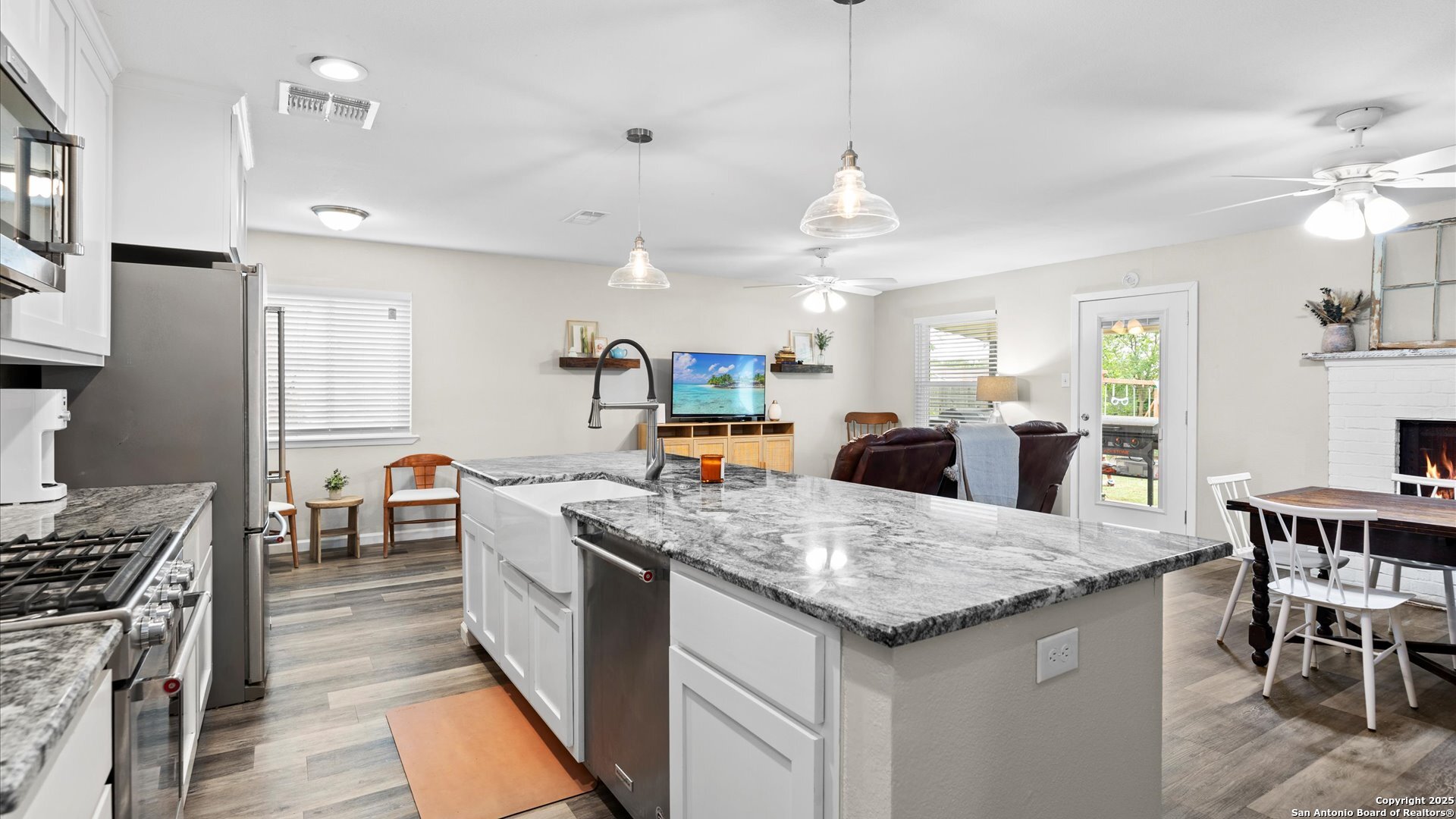 Location, location, location! Discover this beautifully remodeled open floor plan home with 3 bedroom and 2 bathrooms just steps from historic downtown Gruene. This home boast a brand new roof , newer HVAC system, hot water heater, windows, flooring, fixtures, and paint, ensuring a move-in ready experience. The kitchen features new cabinets and granite countertops and an island with a sink adding a touch of modern elegance. The large primary bedroom offers a walk-in closet and an en suite bath for your comfort. Also Enjoy the spacious secondary bedrooms with large closets. Don't miss this opportunity to own a charming home in a prime location near all the attractions and amenities of historic Gruene. Oh and did I mention NO HOA!