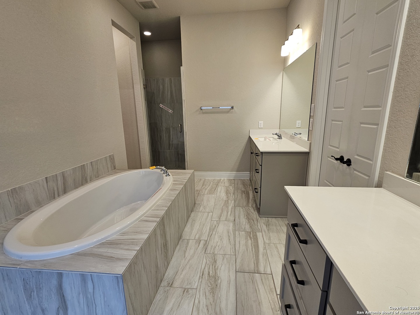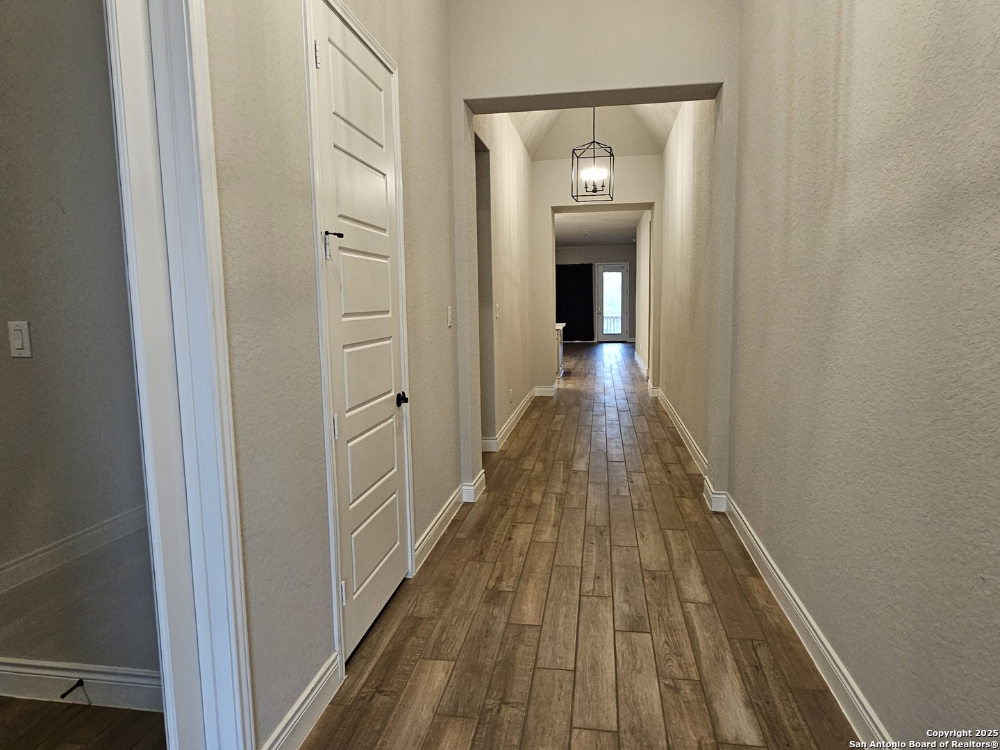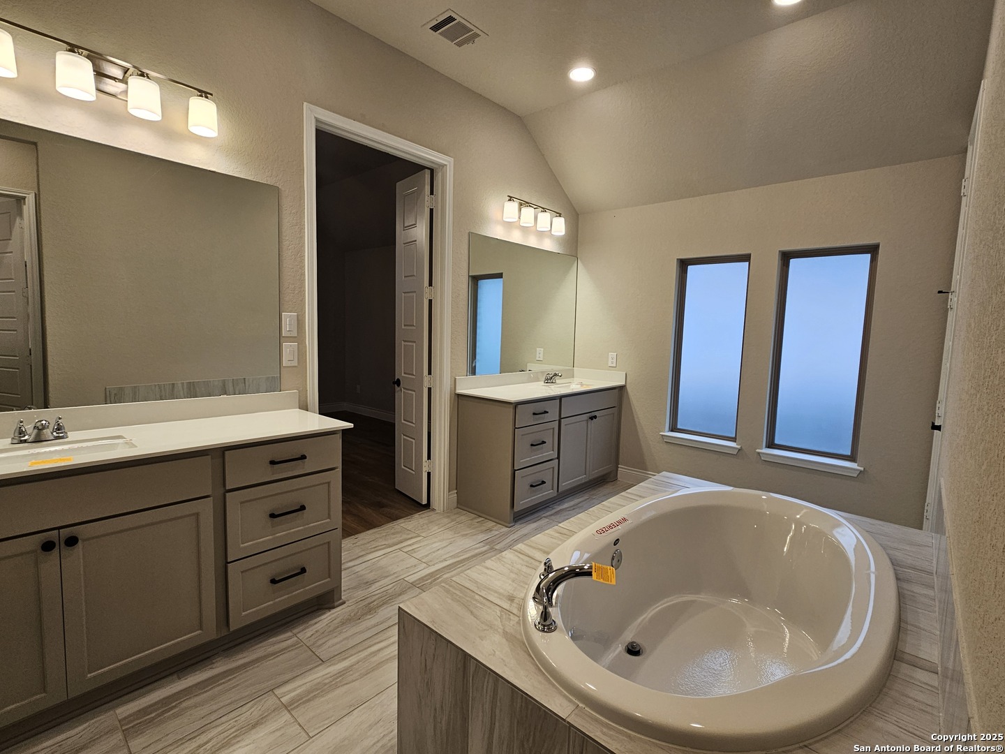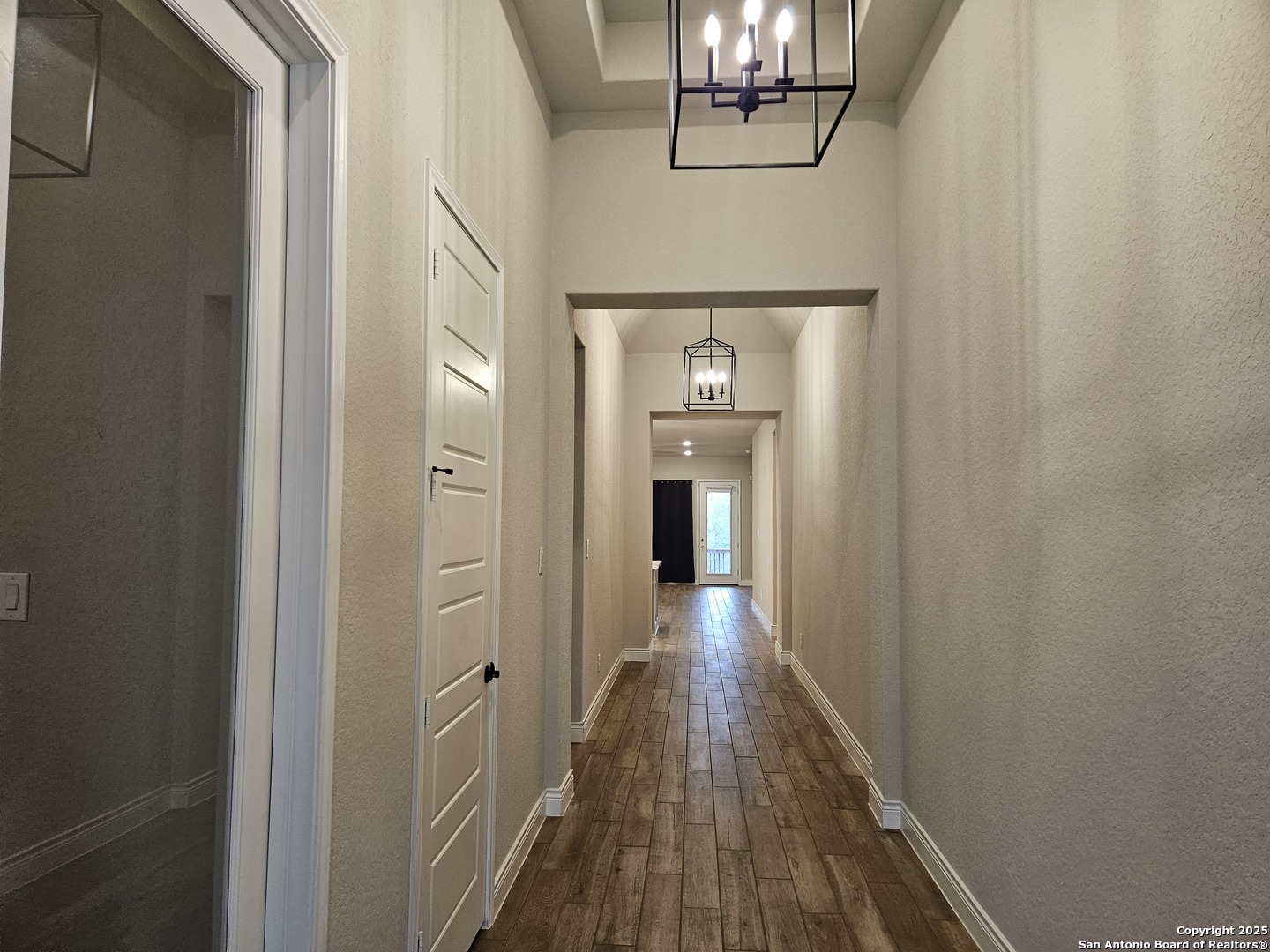 Home features 13-foot ceilings framed by game room with French doors. Extended entry flows to the kitchen and dining area. Island kitchen with built-in seating space and a corner walk-in pantry. Family room with a wall of windows. Secluded primary suite. Primary bath offers dual vanities, garden tub, separate glass enclosed shower and two walk-in closets. Guest suite with a full bathroom and a walk-in closet. Secondary bedrooms and a utility room complete this one-story design. Extended covered backyard patio. Mud room just off the garage.