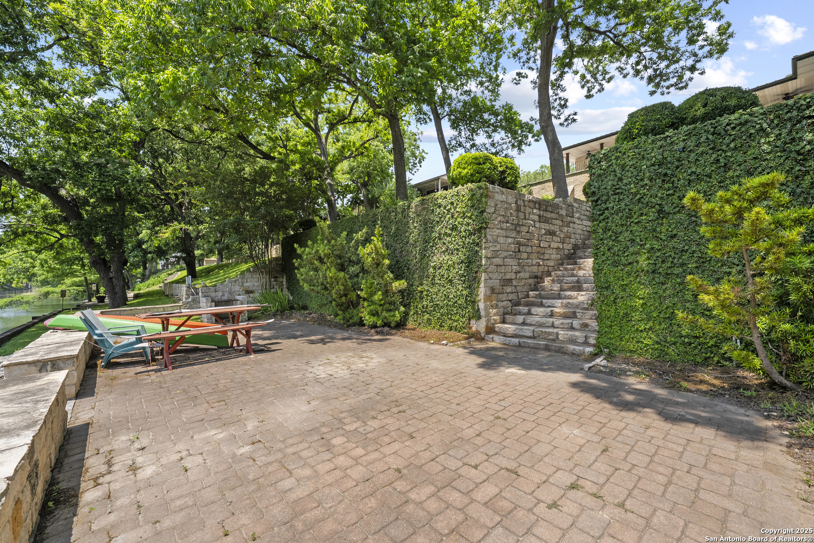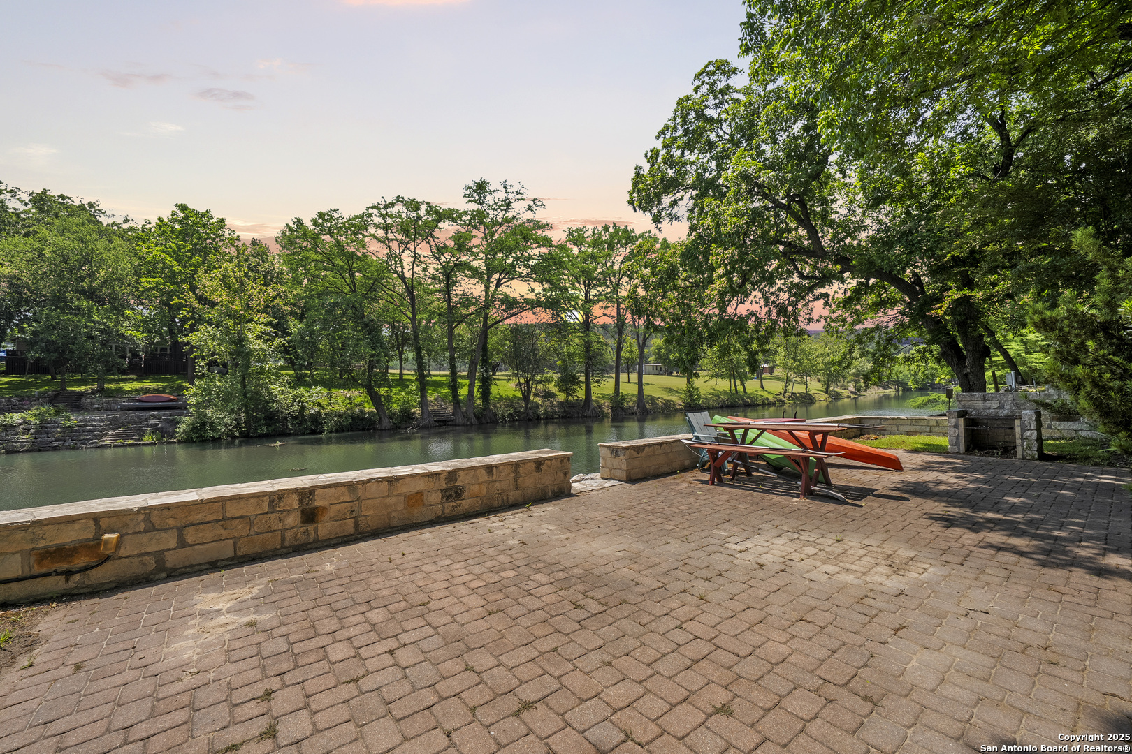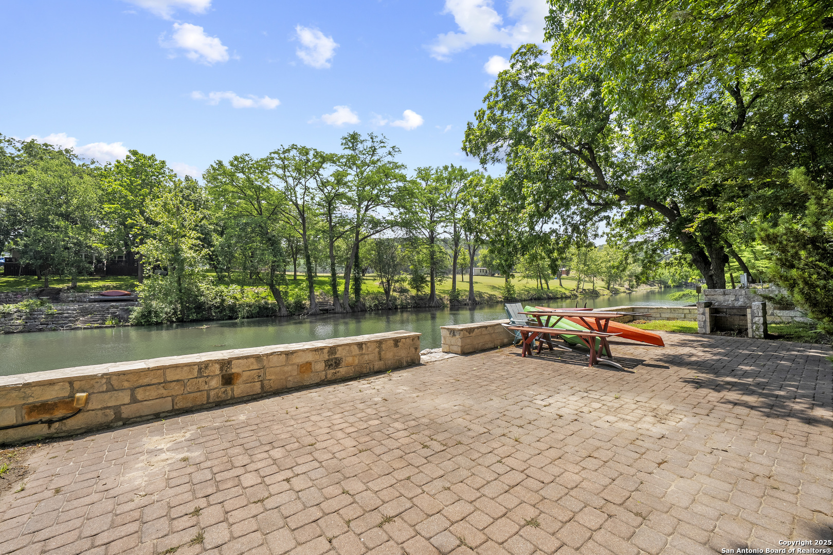 Welcome to 1409 Edgewater Falls, a serene one-story home nestled on the Guadalupe River in the coveted Horseshoe Falls Estates subdivision in Canyon Lake, TX. This 3-bedroom, 2.5-bath home offers 1,856 sq. ft. of well-designed living space with an open floor plan and no carpet throughout-perfect for easy maintenance and relaxed living. The gated and fully fenced property provides both privacy and security. Enjoy direct river access from your backyard-launch a kayak, cast a line, or simply relax as you float home from the private HOA river park upstream. Bonus features include: a golf cart, riding lawn mower, refrigerator, and freezer-all of which convey with the sale along with the Furniture, making this a true turnkey opportunity. Whether you're seeking a weekend getaway or full-time riverside living, this property offers an unmatched Hill Country lifestyle. No STR allowed.
