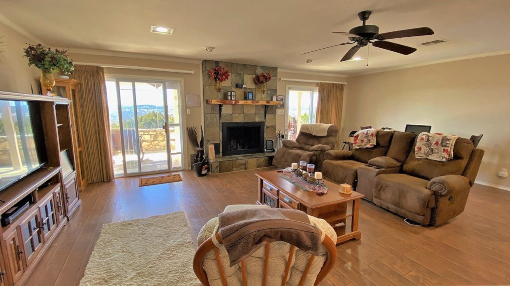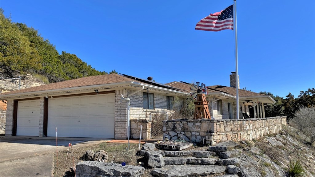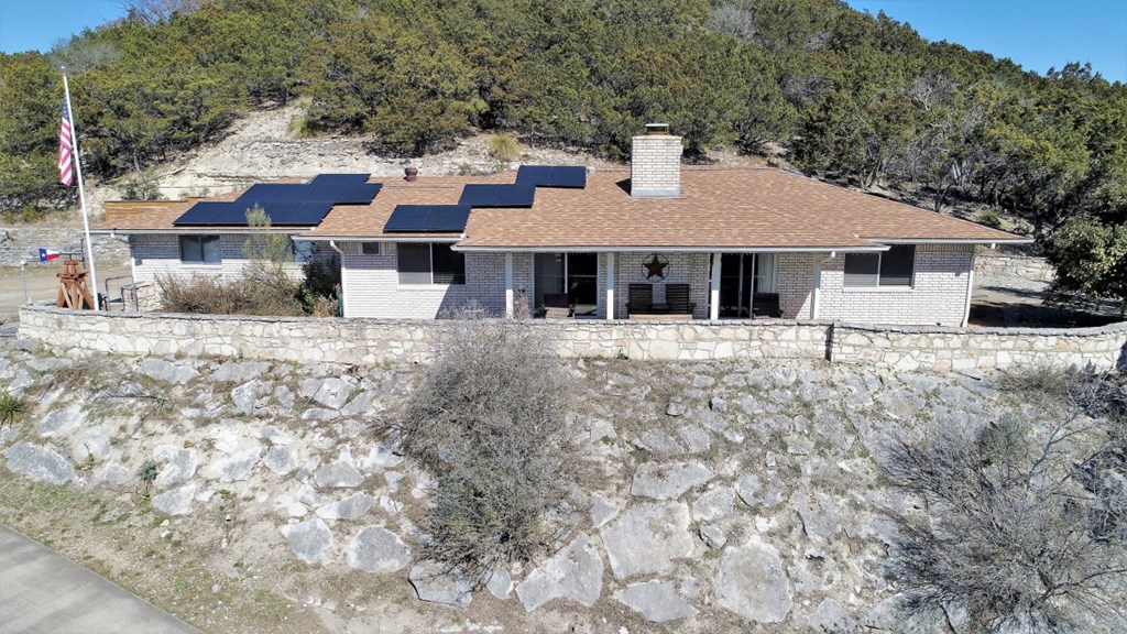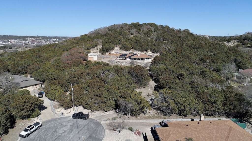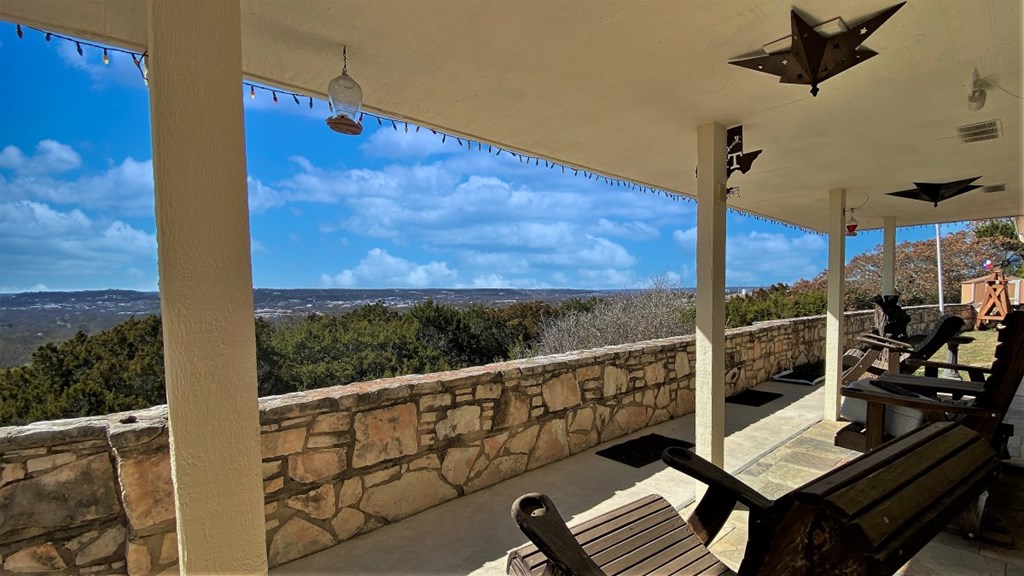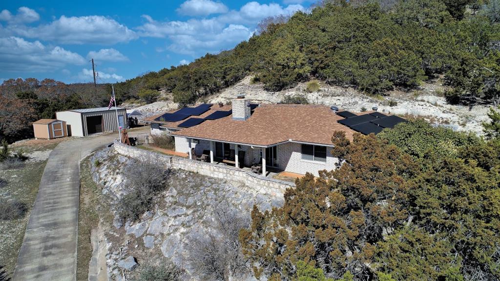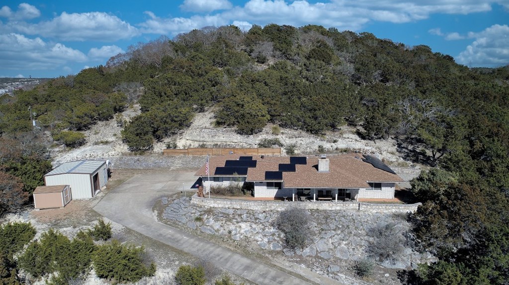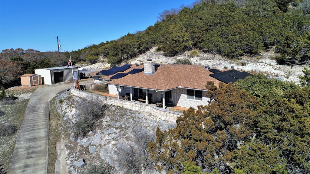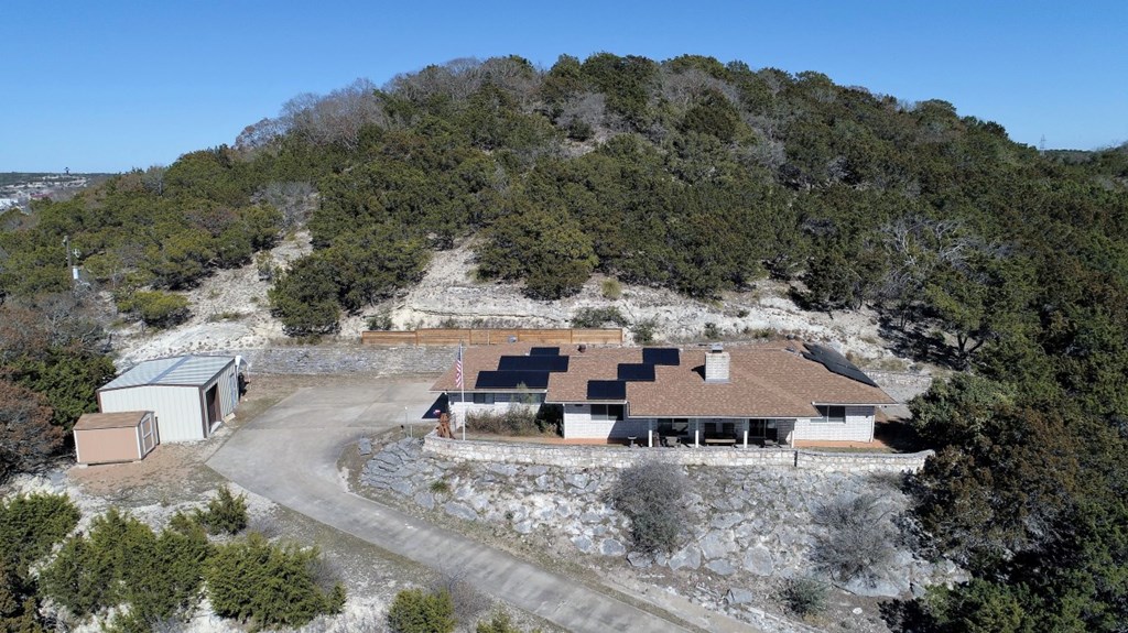 Remarkable views from this Hill Country treasure, nestled in a wooded 1.5 acres on the Hillside of Tivy Mountain. Home boasts entertaining atmosphere with its open concept Living Room & Kitchen w/bar top seating. When you're not on the front porch overlooking the City of Kerrville, you can warm up inside next to the wood burning fireplace. The Master Bedroom with walk in closet connects to a Master Bath with a walk in in Shower/Tub combo. Plenty of room for privacy with the split floorplan. Two bedrooms located at the opposite end of the house feature nice sized closets with full guest bathroom in between. Plenty of room for parking with the attached 2 car garage as well as an insulated shop/garage on the property. The Home has 28 Solar Panels on the Roof and a small storage building. The wildlife is plentiful! This charming Hill Country Home allows you the privacy of a country feel while still living in the city! It offers Spectacular Views which will not disappoint!