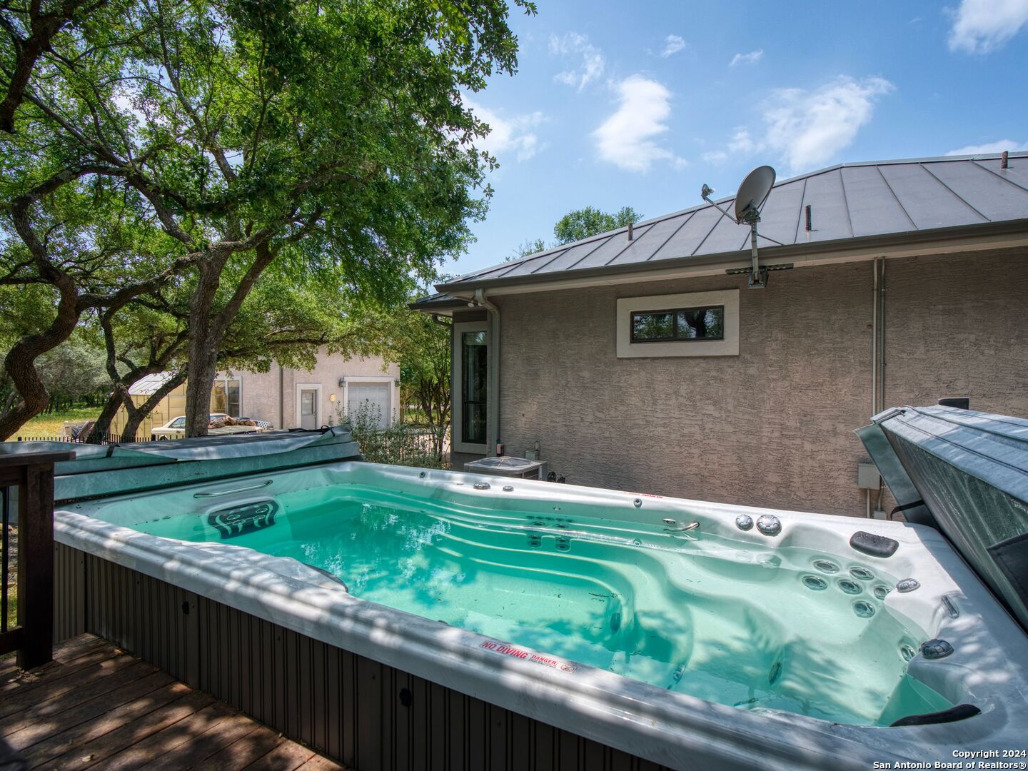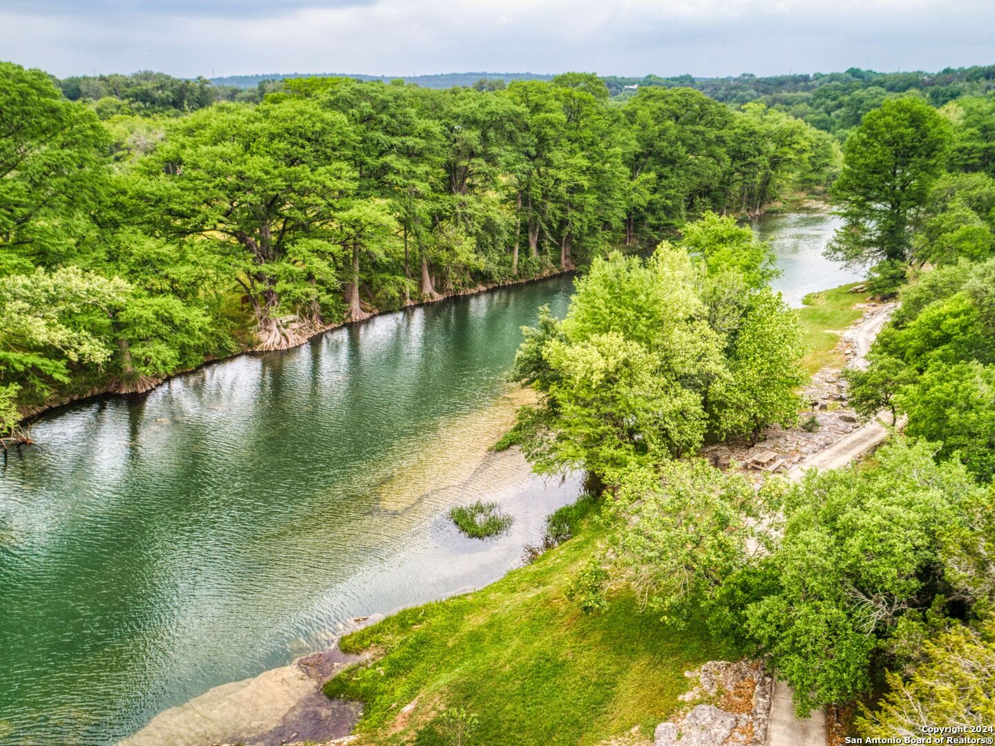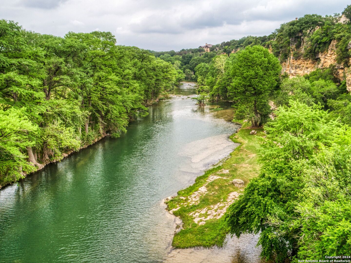 Welcome to your dream retreat nestled within the prestigious gated community of River Forest in New Braunfels. This stunning property that has been recently updated offers an unparalleled blend of luxury, functionality, and natural beauty. Step into the grandeur of this three-bedroom, two-and-a-half-bathroom home through its impressive 35-foot ceiling grand entrance and living room, where light dances through expansive windows, illuminating the spacious interior. The layout seamlessly combines elegance and comfort, with a separate dining room for formal gatherings, an office adorned with built-ins for remote work, and a versatile bonus room adaptable to your lifestyle needs. Entertainment awaits both indoors and out, with a Keith Zars pool featuring a captivating waterfall, perfect for unwinding on warm Texas afternoons. For those seeking wellness and relaxation, indulge in the 15-foot swim spa, ideal for invigorating workouts or soothing hydrotherapy sessions.The allure of outdoor living continues with access to the private river park, granting exclusive entry to the tranquil waters of the river. Spend weekends kayaking, fishing, or simply basking in the natural splendor of the surroundings. Car enthusiasts and hobbyists will delight in the amenities this property offers, including a three-car garage for ample storage, a 20x30 workshop for creative endeavors, and a greenhouse. The expansive yard provides ample space for outdoor activities and gardening. Additional features include a reverse osmosis system, a water softener, kitchen ice maker, and a central vacuum. Experience the epitome of luxury living in this unique home within River Forest, where every detail has been meticulously crafted to create a haven you'll never want to leave.