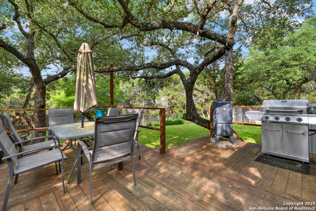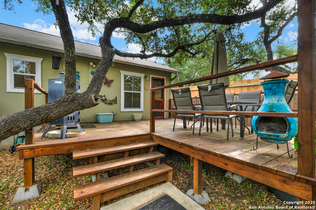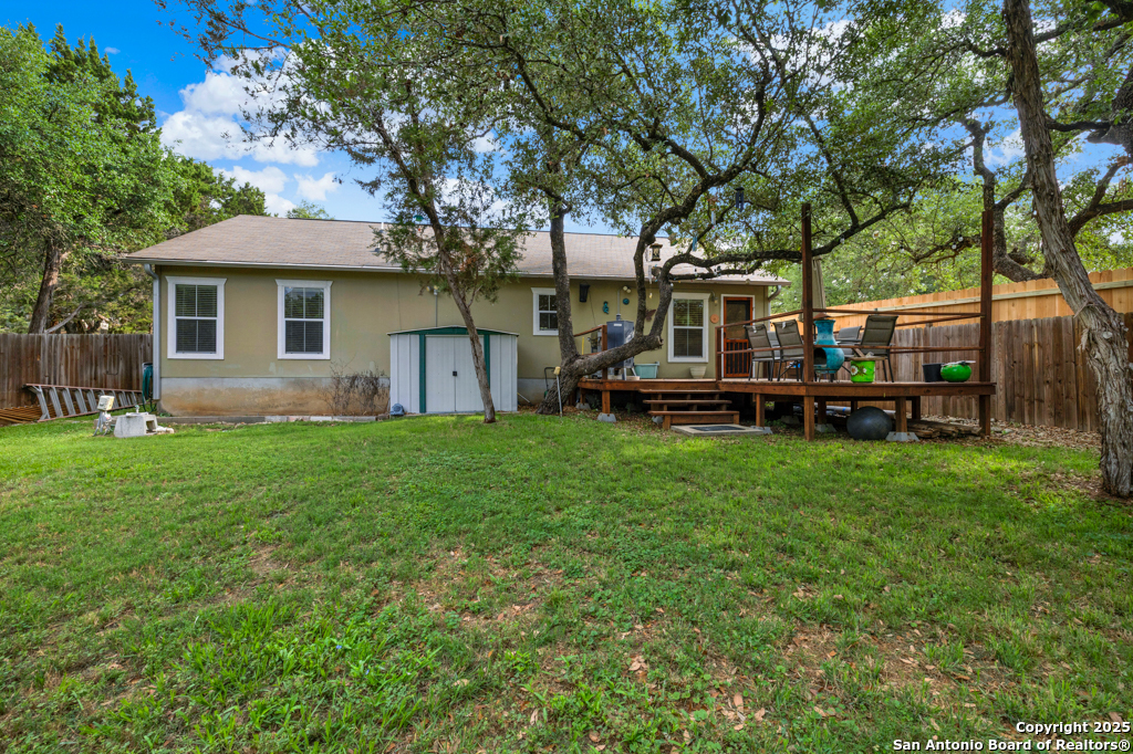 Welcome to this charming and well-maintained home nestled in a peaceful setting near the beautiful Canyon Lake. Situated just minutes from Boat Ramp 6, this inviting property offers the perfect blend of comfort, style, and convenience for those seeking a serene lifestyle. Step inside to discover an open floorplan with tile flooring throughout, creating a seamless and low-maintenance living space. Fresh interior paint gives the home a clean, modern feel. The kitchen features solid countertops, a convenient breakfast bar for casual dining, a walk-in pantry for extra storage, and all kitchen appliances included-making it truly move-in ready. The washer and dryer also convey with the home. The primary suite offers a generously sized walk-in closet, providing ample storage and organization. Step outside to enjoy the covered front porch-perfect for morning coffee-or head to the backyard deck where you can unwind in a tranquil setting surrounded by trees and partial privacy fencing. The exterior is equally impressive with well-manicured landscaping, a concrete driveway, and an additional parking pad-ideal for extra vehicles, a boat, or guest parking. Whether you're looking for a full-time residence or a weekend getaway, this home checks all the boxes. Assumable 2.25 VA Loan.