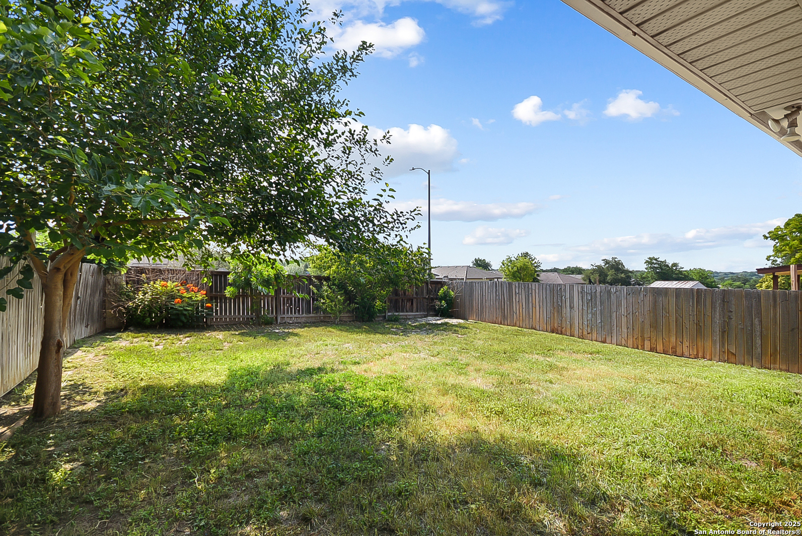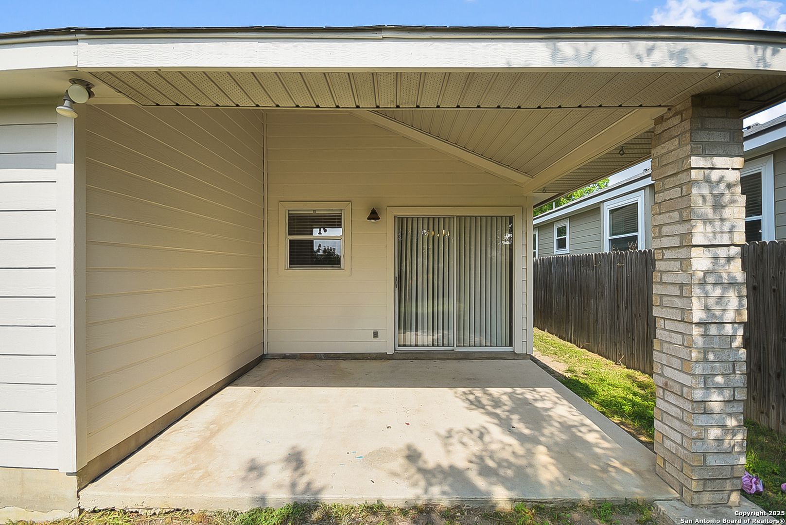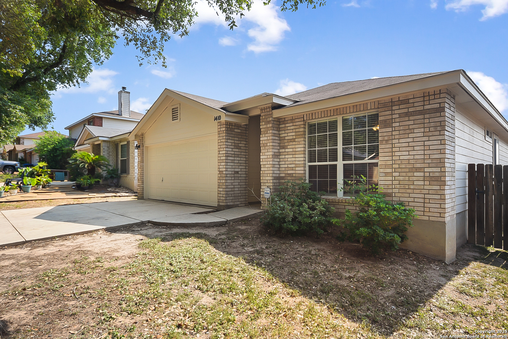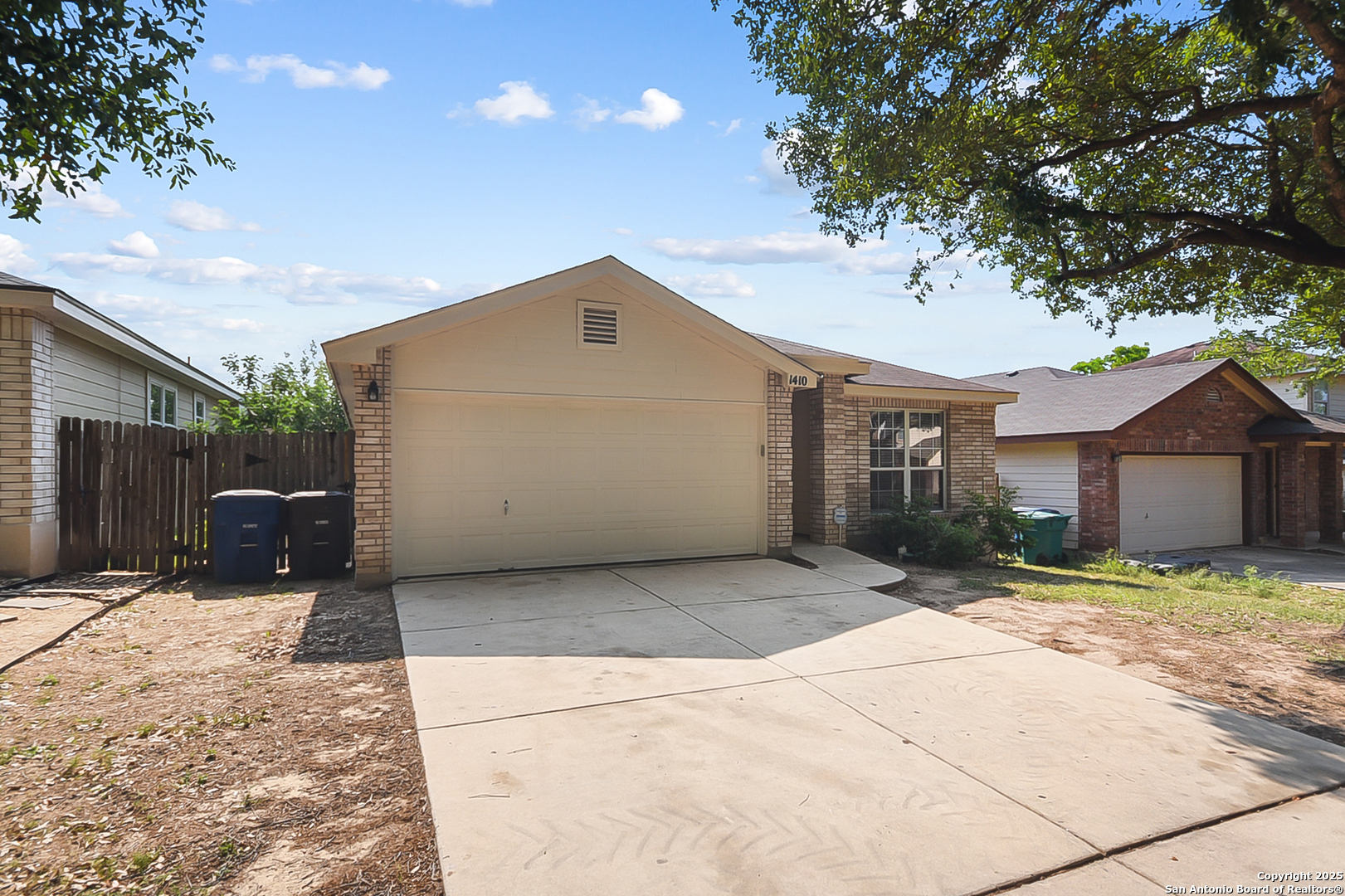 Welcome to 1410 Cougar Country, a charming one-story home nestled in the peaceful Spring Vistas community on San Antonio's thriving west side. This beautifully maintained 3-bedroom, 2-bath residence offers an open-concept layout with a spacious living area, an eat-in kitchen featuring Corian countertops and ceramic tile, and a generous primary suite with a garden tub and walk-in closet. Thoughtful upgrades include faux wood blinds, ceiling fans, modern fixtures, a water softener, and a covered patio shaded by mature trees-all complemented by double-pane windows and a privacy fence for added comfort and efficiency. Located just minutes from major thoroughfares like Loop 1604 and Potranco Road, the home offers convenient access to SeaWorld, Lackland AFB, Northwest Vista College, and an abundance of shopping and dining options. Zoned to highly rated Northside ISD schools and close to community amenities including a neighborhood pool, this home is move-in ready and perfectly situated for both comfort and convenience.