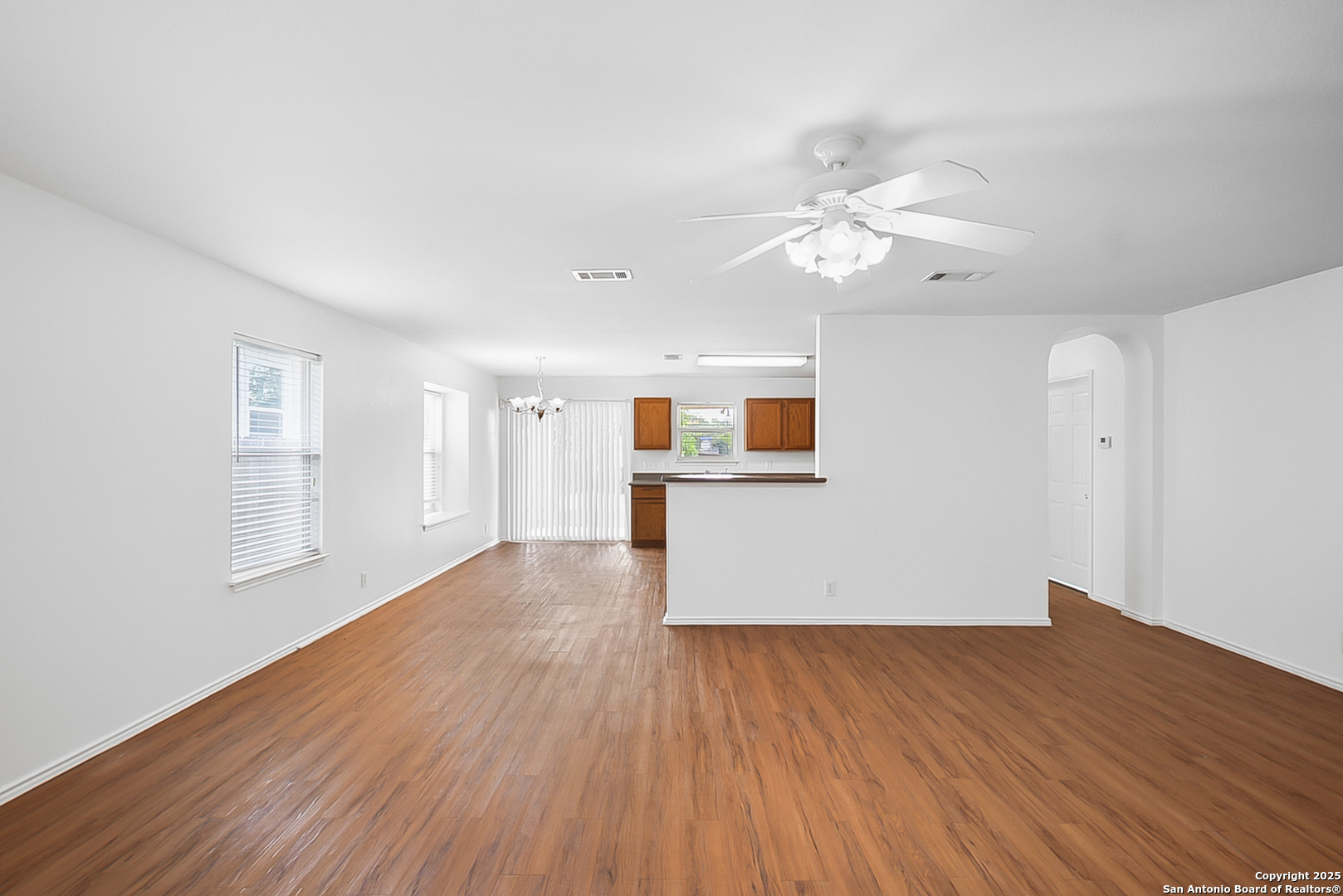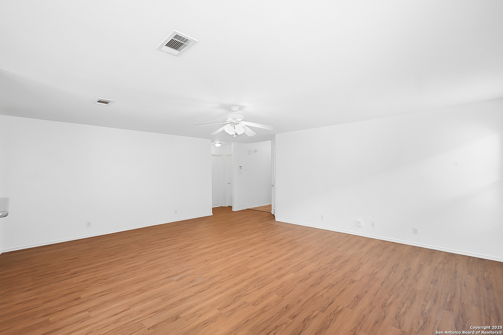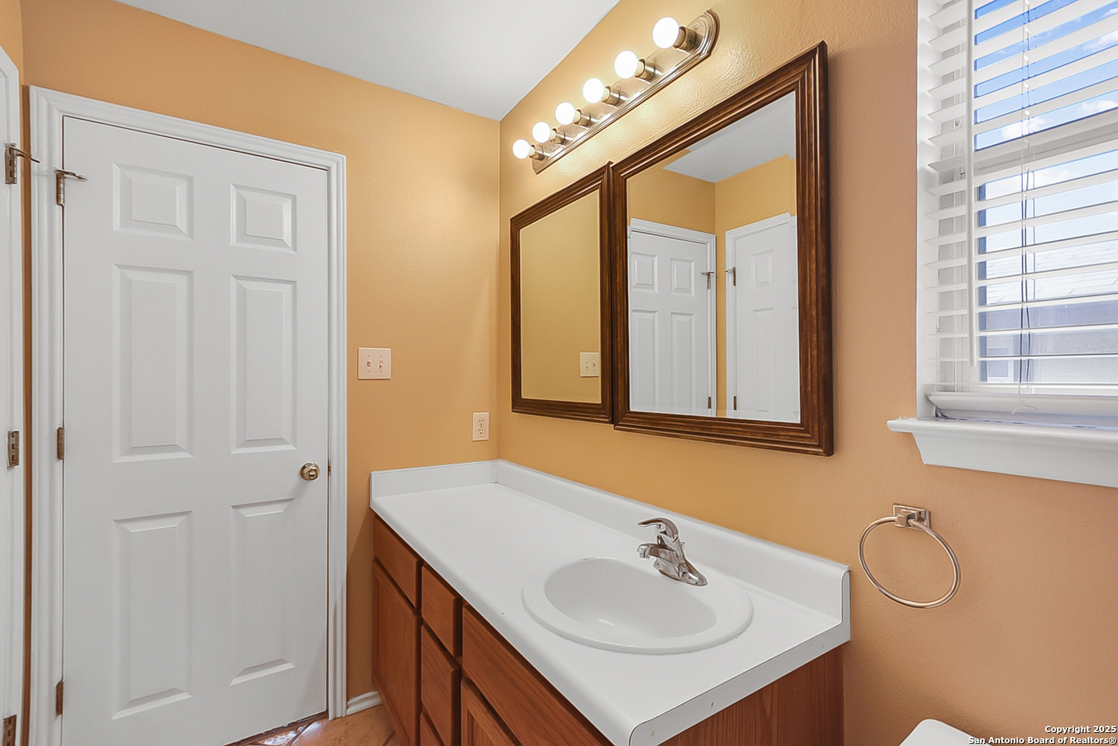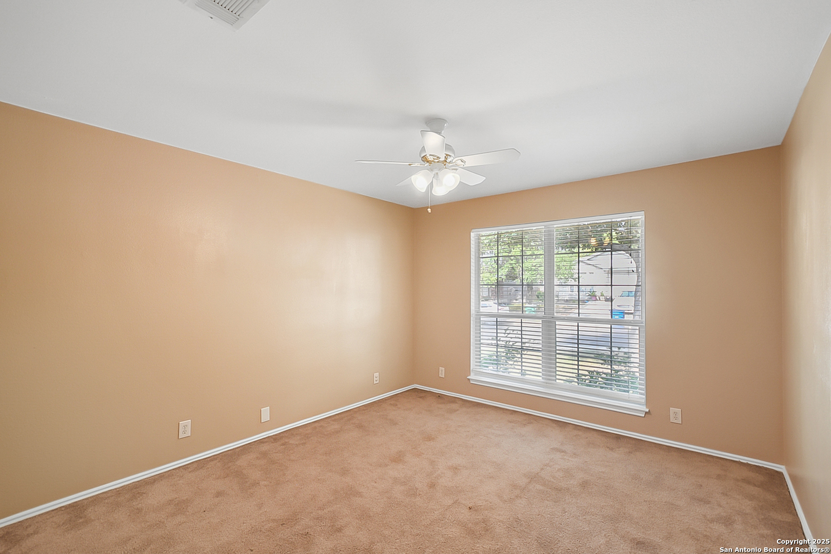Welcome to 1410 Cougar Country, a charming one-story home nestled in the peaceful Spring Vistas community on San Antonio's thriving west side. This beautifully maintained 3-bedroom, 2-bath residence offers an open-concept layout with a spacious living area, an eat-in kitchen featuring Corian countertops and ceramic tile, and a generous primary suite with a garden tub and walk-in closet. Thoughtful upgrades include faux wood blinds, ceiling fans, modern fixtures, a water softener, and a covered patio shaded by mature trees-all complemented by double-pane windows and a privacy fence for added comfort and efficiency. Located just minutes from major thoroughfares like Loop 1604 and Potranco Road, the home offers convenient access to SeaWorld, Lackland AFB, Northwest Vista College, and an abundance of shopping and dining options. Zoned to highly rated Northside ISD schools and close to community amenities including a neighborhood pool, this home is move-in ready and perfectly situated for both comfort and convenience.