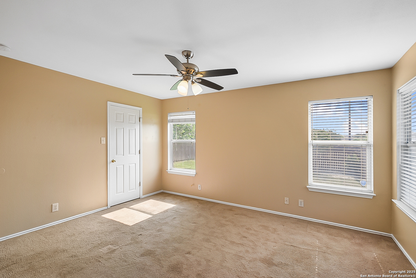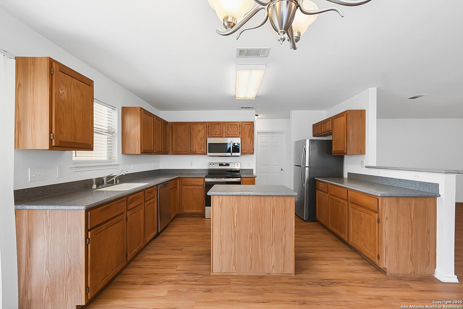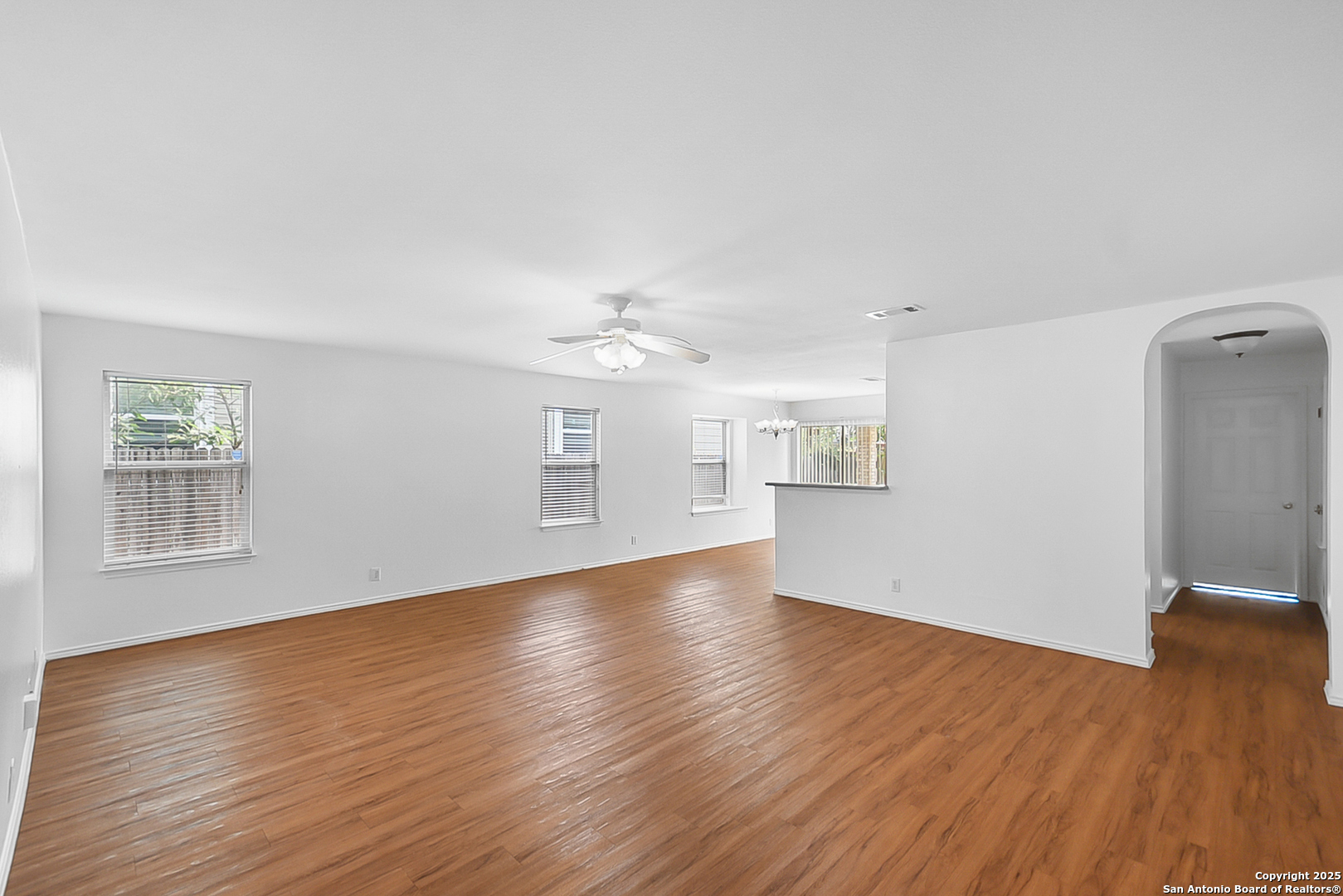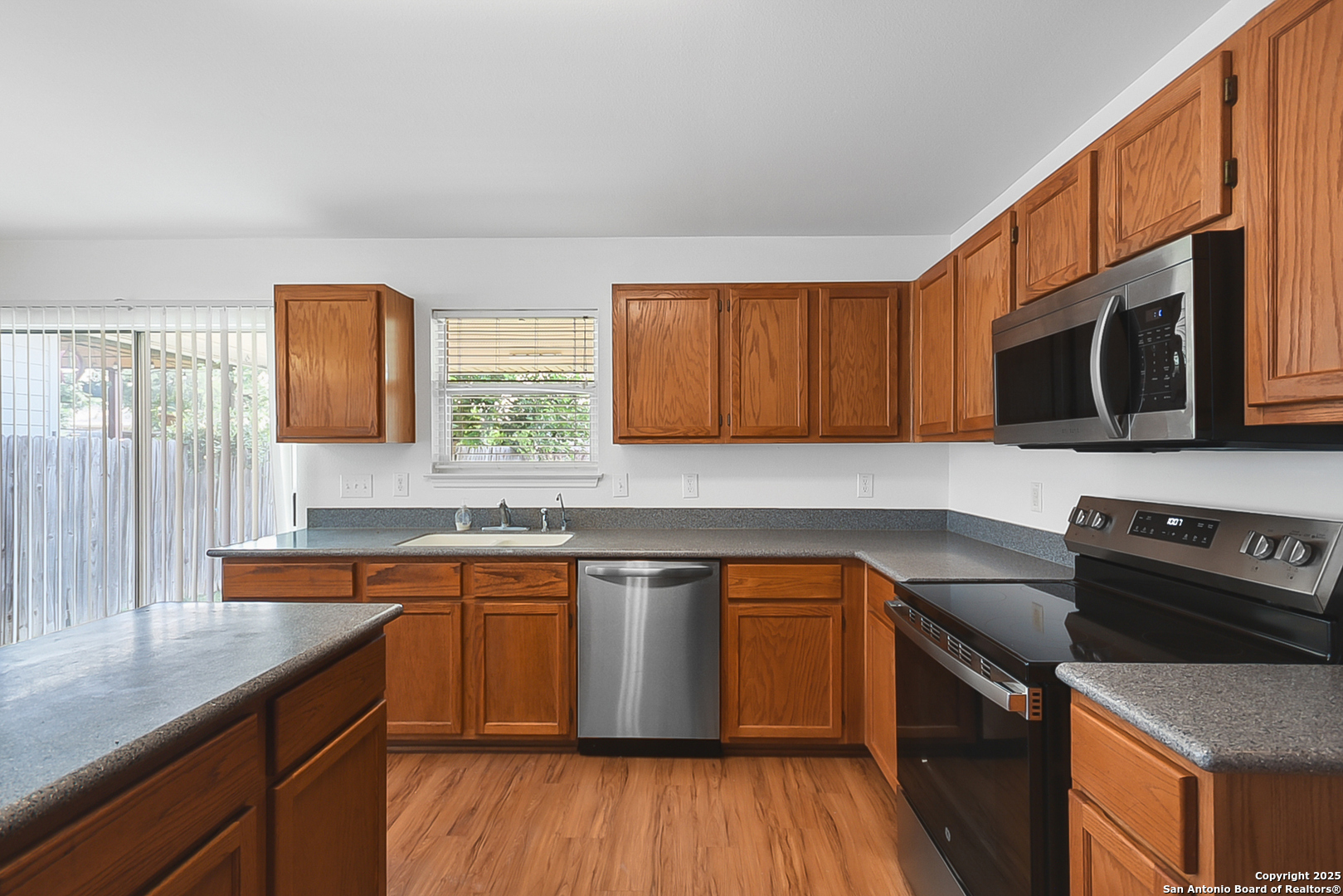 Welcome to 1410 Cougar Country, a charming one-story home nestled in the peaceful Spring Vistas community on San Antonio's thriving west side. This beautifully maintained 3-bedroom, 2-bath residence offers an open-concept layout with a spacious living area, an eat-in kitchen featuring Corian countertops and ceramic tile, and a generous primary suite with a garden tub and walk-in closet. Thoughtful upgrades include faux wood blinds, ceiling fans, modern fixtures, a water softener, and a covered patio shaded by mature trees-all complemented by double-pane windows and a privacy fence for added comfort and efficiency. Located just minutes from major thoroughfares like Loop 1604 and Potranco Road, the home offers convenient access to SeaWorld, Lackland AFB, Northwest Vista College, and an abundance of shopping and dining options. Zoned to highly rated Northside ISD schools and close to community amenities including a neighborhood pool, this home is move-in ready and perfectly situated for both comfort and convenience.