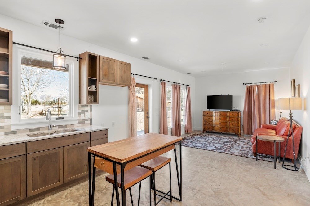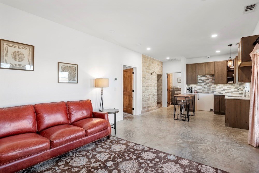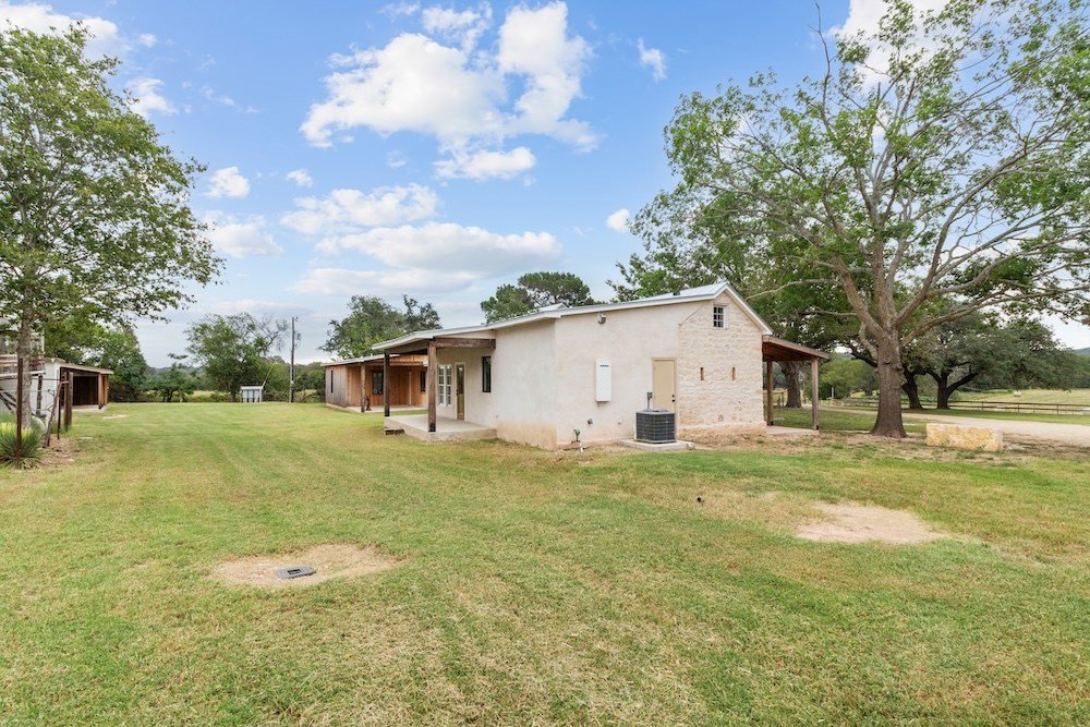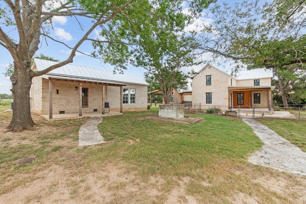 RUEBSAHM HAUS – Originally built around 1890 by Emil and Emma Ruebsahm, this old pioneer homestead has so much to offer! In addition this compound offers two additional homes including a 1 bedroom and 2 bath rock home newly built in 2021 (“new house”). The “new house” features high vaulted ceilings with a gorgeous masonry fireplace in the open living area. The tasteful kitchen is open to the living and dining area with granite counter tops, a big island, gas range and tons of cabinetry and storage. The Master suite is spacious with high ceilings lots of light and a spa like master bath equipped with a walk-in shower and elegant soaking tub. There is also a huge pantry/utility area plus a second full bath with walk-in shower just off the mud room. The “new” house is equipped with a standing seam metal roof and would make a great main home all by itself or serve as a very comfortable guest house or in-law quarters. The “little” house consists of what was likely the first structure built on the property. It is an 1800's one room rock home complete with rifle windows. Now, the little house offers old world charm but is nicely updated to a 1 bedroom 1 bath home with modern amenities. The spacious living area and kitchen are open and bright with high ceilings and incorporate the exposed stone of the original structure. The master bedroom also has towering ceilings and even incorporates the old root cellar which is now finished out with rock floors and would be a cool home office, hobby room or flex space of your choosing. Moving on too the third house on the property, the “big” house, where 7 generations of family have passed through its doors. This home makes a great example of the early settler's architectural skills. The big house now offers over 3,400+ sqft with high ceilings, exposed rock stone walls, 3 bedrooms and 3.5 baths ready for your finishing touches. All the hard work on this remodel is complete including, new plumbing and electrical, and a new HVAC system which has not been hooked up yet. As you step inside you are greeted with two den/sitting rooms, one of the living rooms incorporates exposed beams, a beautiful masonry fireplace with the original wood mantle, and if you look closely you may find the Ruebsahm family name etchings. The home features additional dining and living flex spaces throughout easily converted to a home office or dining rooms. There is a great master bedroom downstairs with tall ceilings and a huge bath ready and plumbed for a walk-in shower and double vanity sinks. plus two additional bedrooms upstairs each already plumbed with their own bath with walk-in showers. The big open kitchen is equipped with a half bath and is ready for your pick of cabinets or the option to reuse the old original cabinets in the home. Just off the kitchen is a great space easily incorporated into a wet bar and a huge utility room off of the kitchen/wet bar with access to the back covered patio. This is really a great and unique opportunity to place your finishing touches to a historic property. OUTSIDE – the 48.09 acres offers lots of mature trees around the improvements with the back field being great open pasture land. Last year the owner produced 200 bales of hay from the fertile field. In addition to having great soil for growing, it is great for the animal lover, whether you want a few long horns, cattle or for the equestrian lover. There is also an additional majestic old rock barn made of huge hand cut stones which could also be repurposed into more living space, a game room or even makes for great storage space or workshop. No matter what you use it for its stately appearance adds to the property. Wait there is more, an additional cedar sided workshop offers more space that could be finished out as a work out room, art studio, you name it! Just 3 mins to Luckenbach, TX, 8 mins to the Hwy 290 Wine Trail & 15 mins to Fredericksburg, TX. A historic property with the value of multiple opportunities!