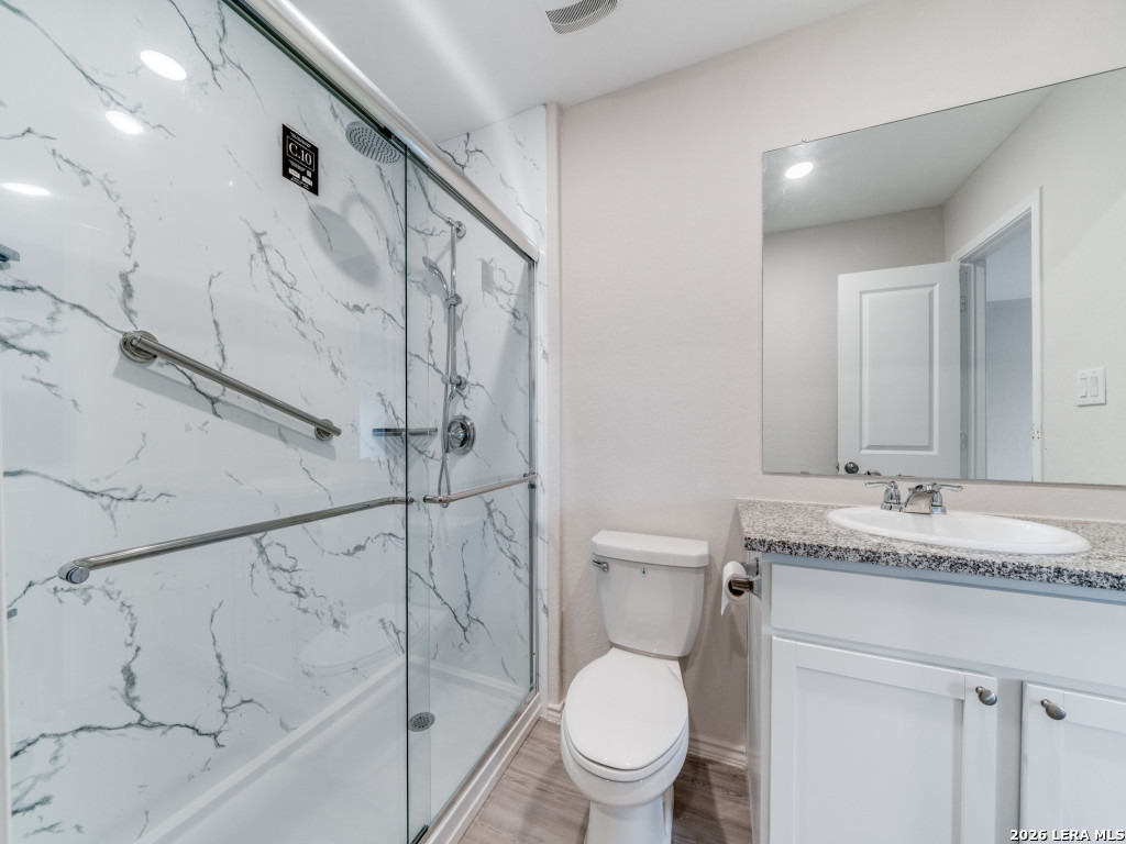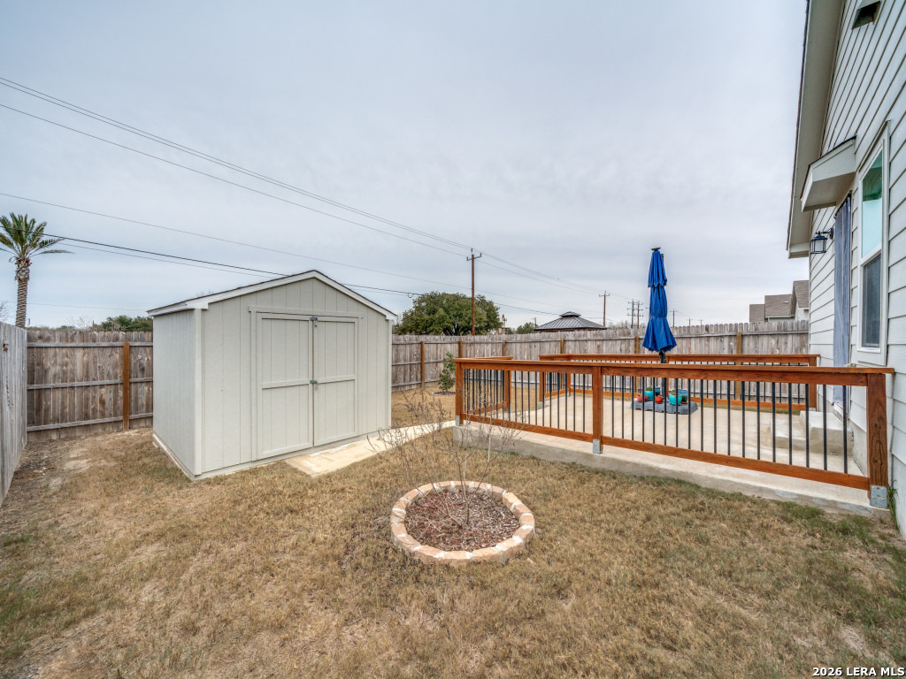 Amazing one-story home just 20 minutes from downtown with No City Taxes and truly move-in ready. Barely lived in and freshly painted inside and out, this home features recessed lighting, wood laminate flooring, and 2" blinds throughout. The open kitchen offers gas cooking, ample cabinetry, and a stainless refrigerator that conveys. Bathrooms have been upgraded with modern finishes and glass shower doors. Outdoor living is a standout, with an extended patio featuring built-in railings, a new storage shed, and exceptional views of the event center and large pond-ideal for relaxing or entertaining. Additional features include a garage door opener, tankless water heater, and recently serviced HVAC system. Located in a small community offering a pool and playground, this is the one!