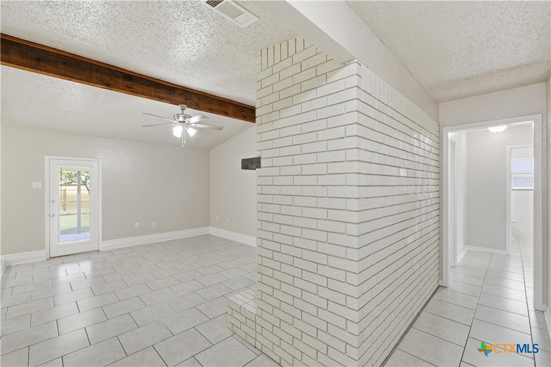 Welcome to 1412 Becker Drive in Killeen—where comfort, style, and major upgrades come together in a home that truly stands out. This beautifully maintained 3-bedroom, 2-bathroom, four-sided brick home offers durability, timeless appeal, and all the updates you’ve been looking for. Step inside to find fresh interior paint and ceramic tile flooring throughout, creating a clean, cohesive feel that’s both stylish and easy to maintain. The spacious living room is the heart of the home, featuring a stunning brick wood-burning fireplace—perfect for cozy nights and adding warmth and character. The kitchen is both functional and inviting, complete with granite countertops, stainless steel appliances, and a full appliance package including a cooktop, oven, microwave, dishwasher, and refrigerator that conveys. Updated light fixtures throughout the home add a fresh, modern touch. This home has been thoughtfully updated with major improvements already done for you, including a brand new impact-resistant architectural shingle roof (April 2026), a new water heater, and an air handler replaced in 2019—giving you peace of mind for years to come. The primary suite offers a comfortable retreat with a walk-in closet, a single long vanity, and a walk-in shower. The secondary bathroom is well-appointed with a shower/tub combo, perfect for guests or everyday use. Enjoy the best of Texas living outside with a large covered front porch and a huge covered patio, ideal for relaxing or entertaining. The expansive backyard provides plenty of room to play, garden, or create your own outdoor oasis. If you’ve been searching for a move-in ready home with solid construction, thoughtful updates, and great indoor and outdoor space—this is the one.