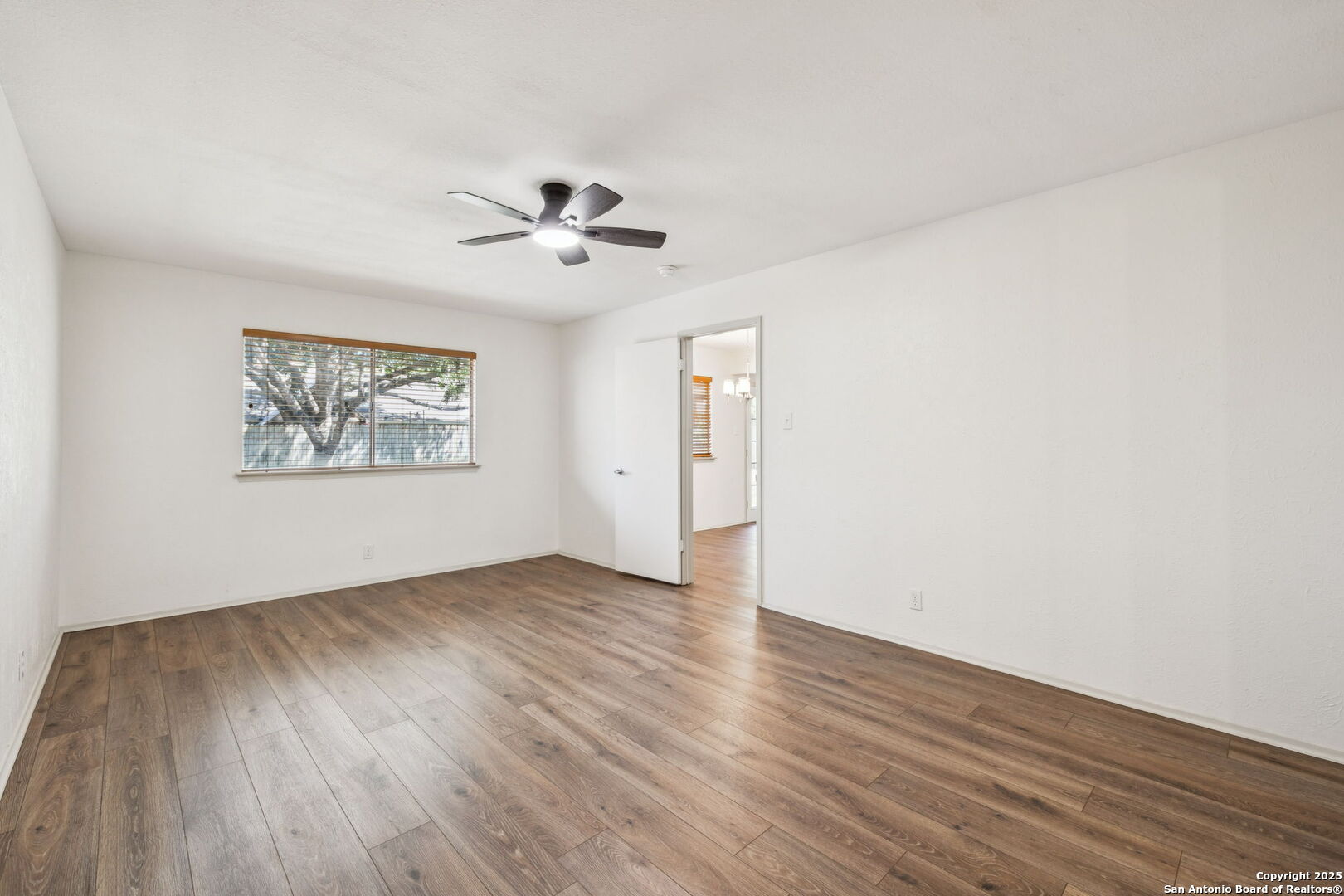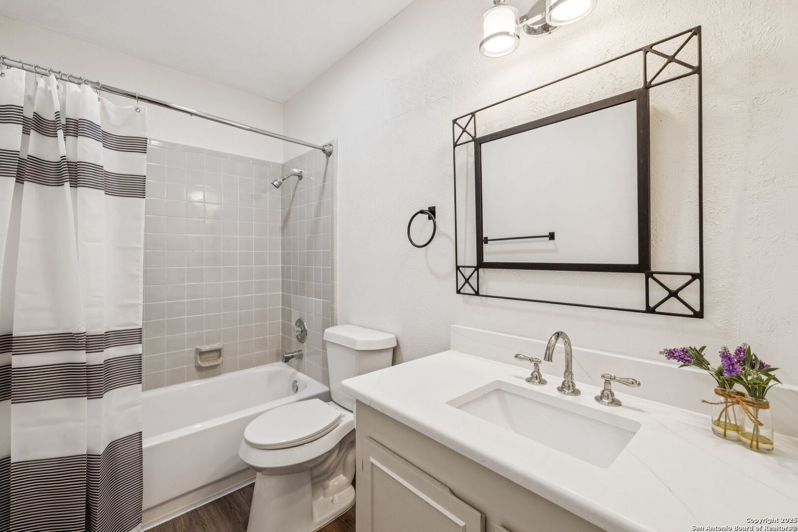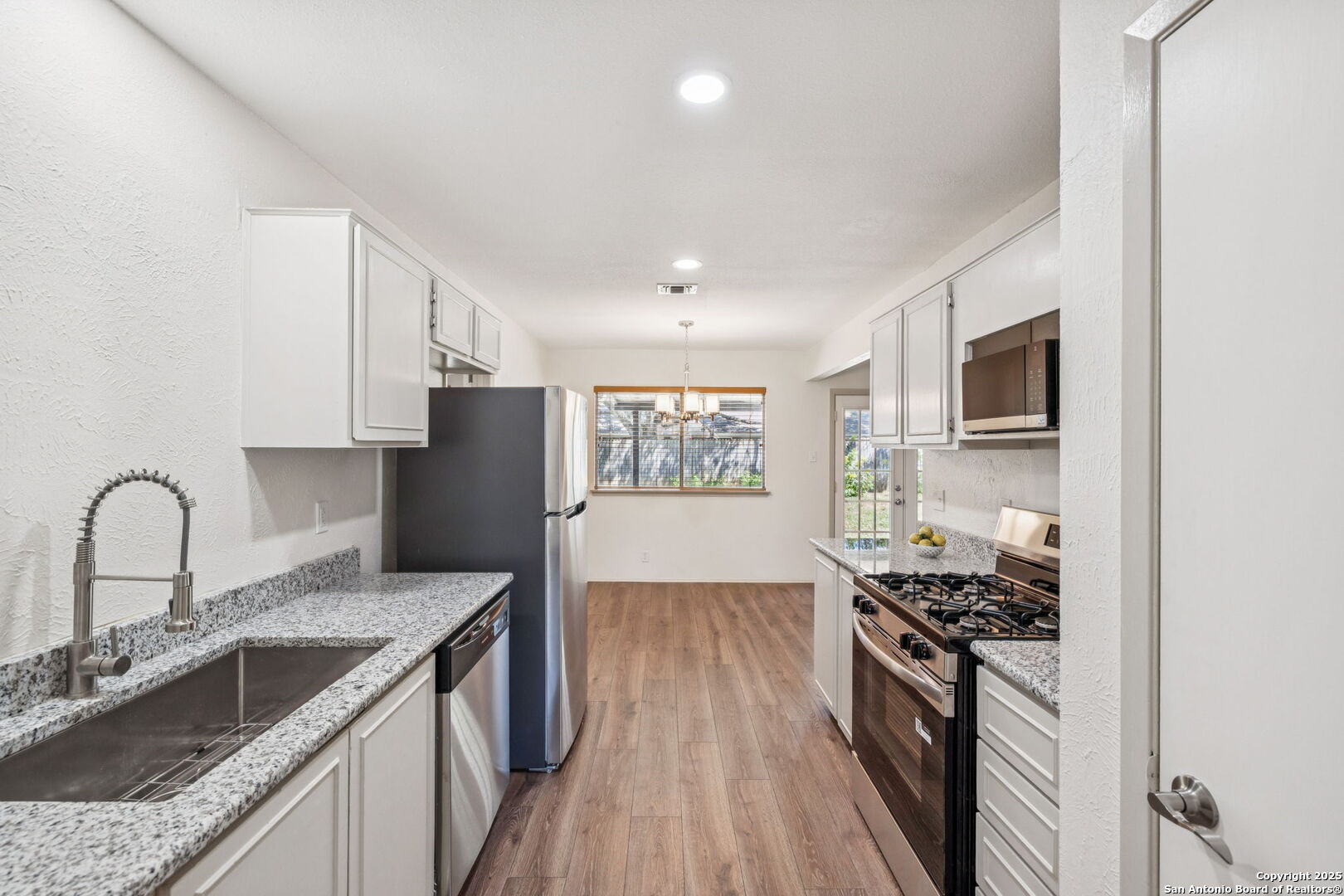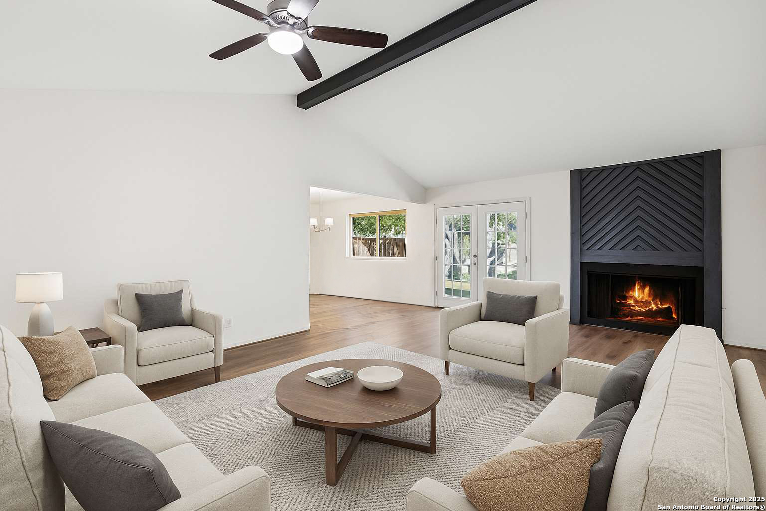 Wow! Recently renovated home, approximately $32,000 spent. Interior and exterior paint, popcorn ceilings removed, luxury vinyl plank floors, new ceiling fans, light fixtures, sinks, faucets. Kitchen has granite, new appliances including gas stove, and recessed lighting. Both bathrooms have new quartz countertops, new toilets, new sinks and faucets. Living room has high ceilings, wet bar, and fireplace with gas starter. Front separate room could be dining room, office, or second living area. Primary bedroom has large walk-in closet. Refrigerator to convey. Great central location! Seller is heir of original owner. Covered patio. Roof replaced May 2022. Corner lot. AHS warranty, $715 total, Shield Plus $640 plus $75 seller coverage.