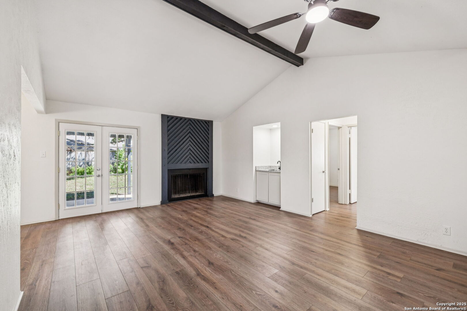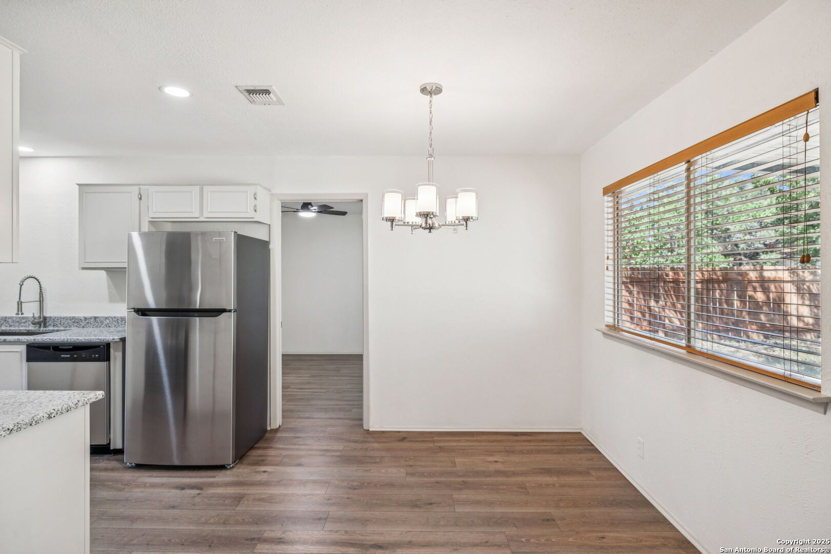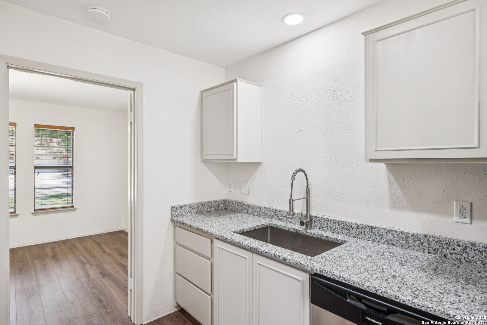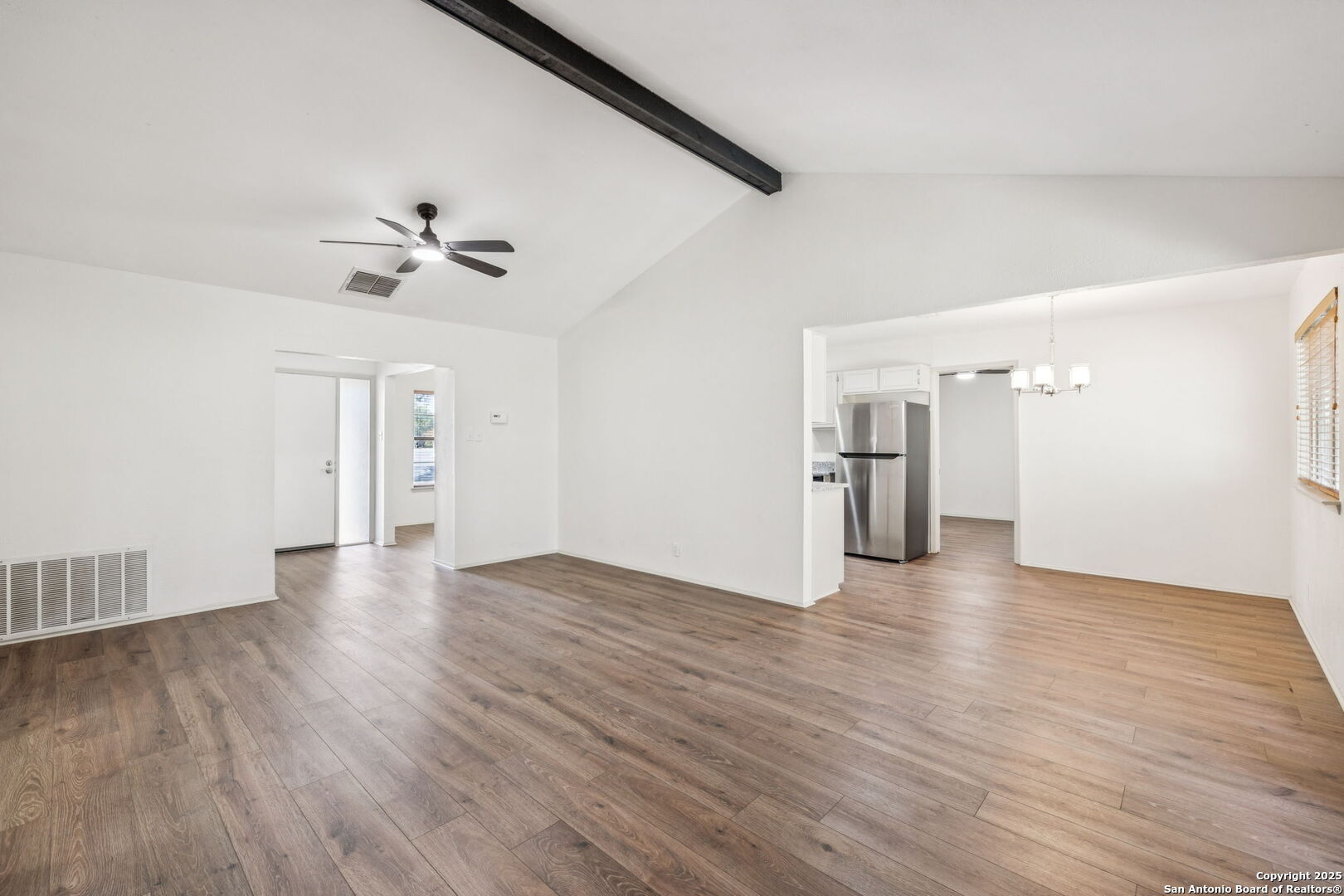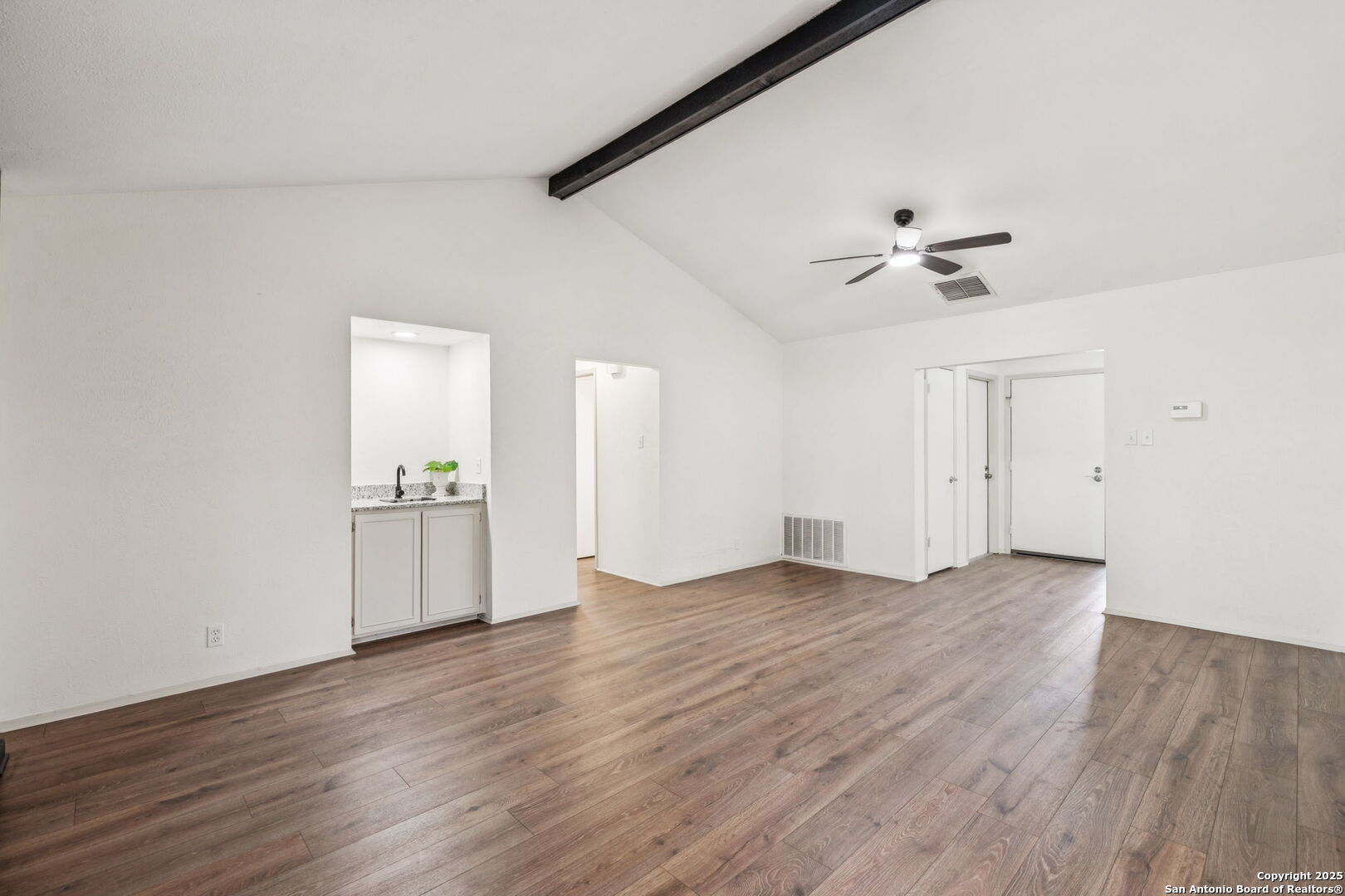 Wow! Recently renovated home, approximately $32,000 spent. Interior and exterior paint, popcorn ceilings removed, luxury vinyl plank floors, new ceiling fans, light fixtures, sinks, faucets. Kitchen has granite, new appliances including gas stove, and recessed lighting. Both bathrooms have new quartz countertops, new toilets, new sinks and faucets. Living room has high ceilings, wet bar, and fireplace with gas starter. Front separate room could be dining room, office, or second living area. Primary bedroom has large walk-in closet. Refrigerator to convey. Great central location! Seller is heir of original owner. Covered patio. Roof replaced May 2022. Corner lot. AHS warranty, $715 total, Shield Plus $640 plus $75 seller coverage.