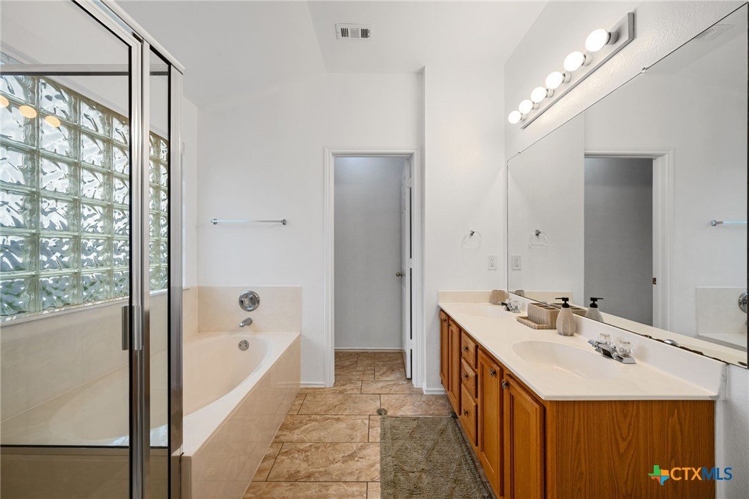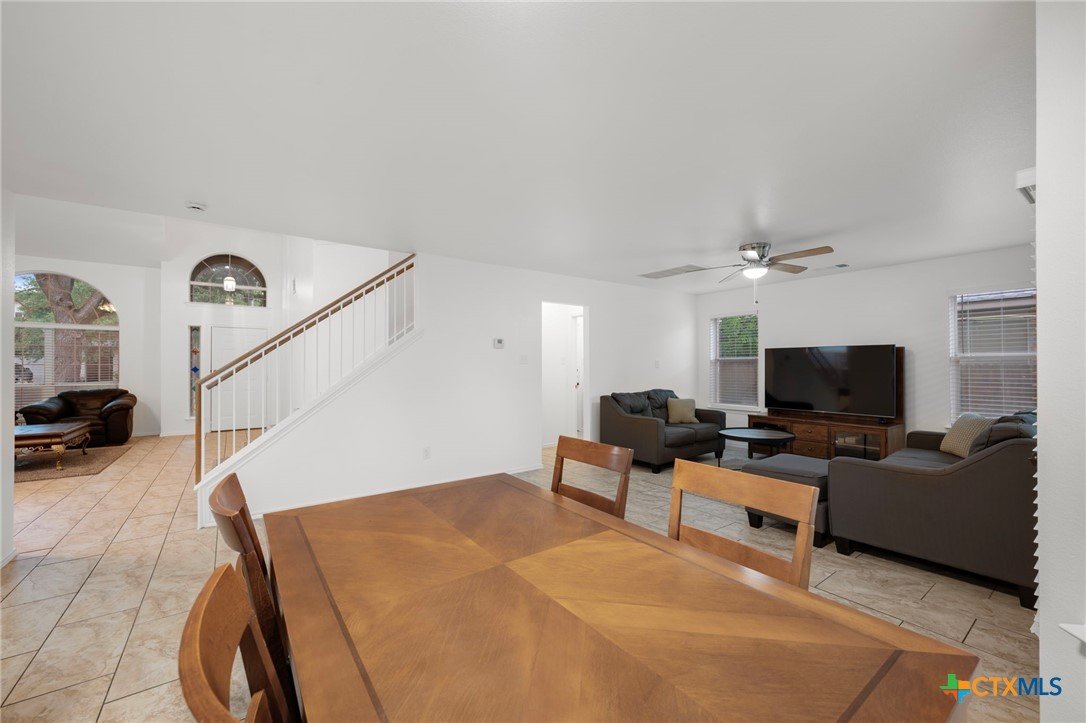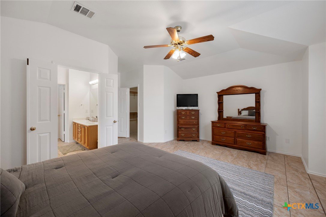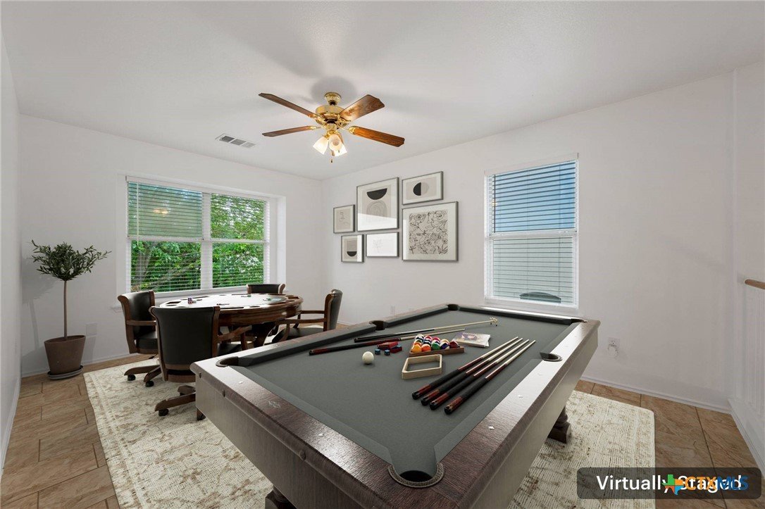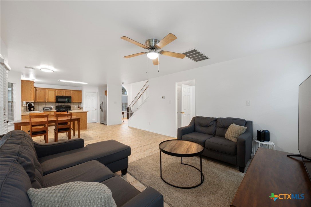 This beautifully maintained home offers comfort, space, and flexibility in every corner. With three spacious bedrooms, 2.5 bathrooms, and a generous loft that can easily serve as an office, game room, or serene yoga retreat, this layout adapts effortlessly to your lifestyle. Each bedroom comfortably fits queen-sized beds, while the expansive primary suite is a true retreat—easily accommodating a California king with room to spare for a sitting area and walk-in closet . The en suite bath features a separate tub, shower stall and private toilet room, designed with both comfort and privacy in mind. An open floor plan fills the home with natural light, and the soaring ceilings in the living area enhance the airy, welcoming ambiance. The kitchen opens to the dining and living areas, perfect for entertaining or casual gatherings, and includes a large pantry and abundant cabinetry. Enjoy the versatility of both a cozy family room and a formal living room—ideal for relaxing or hosting. Outside, the spacious backyard features a grassy area for play or gardening and a shaded patio perfect for outdoor lounging. Major updates include a new roof and HVAC system (Jan 2023), fresh interior and exterior paint (April 2025), new blinds, digital lock, vents, power outlets, repaired fencing, and new gutters (Jan 2025), ensuring modern convenience and peace of mind. This home is truly move-in ready and full of potential.