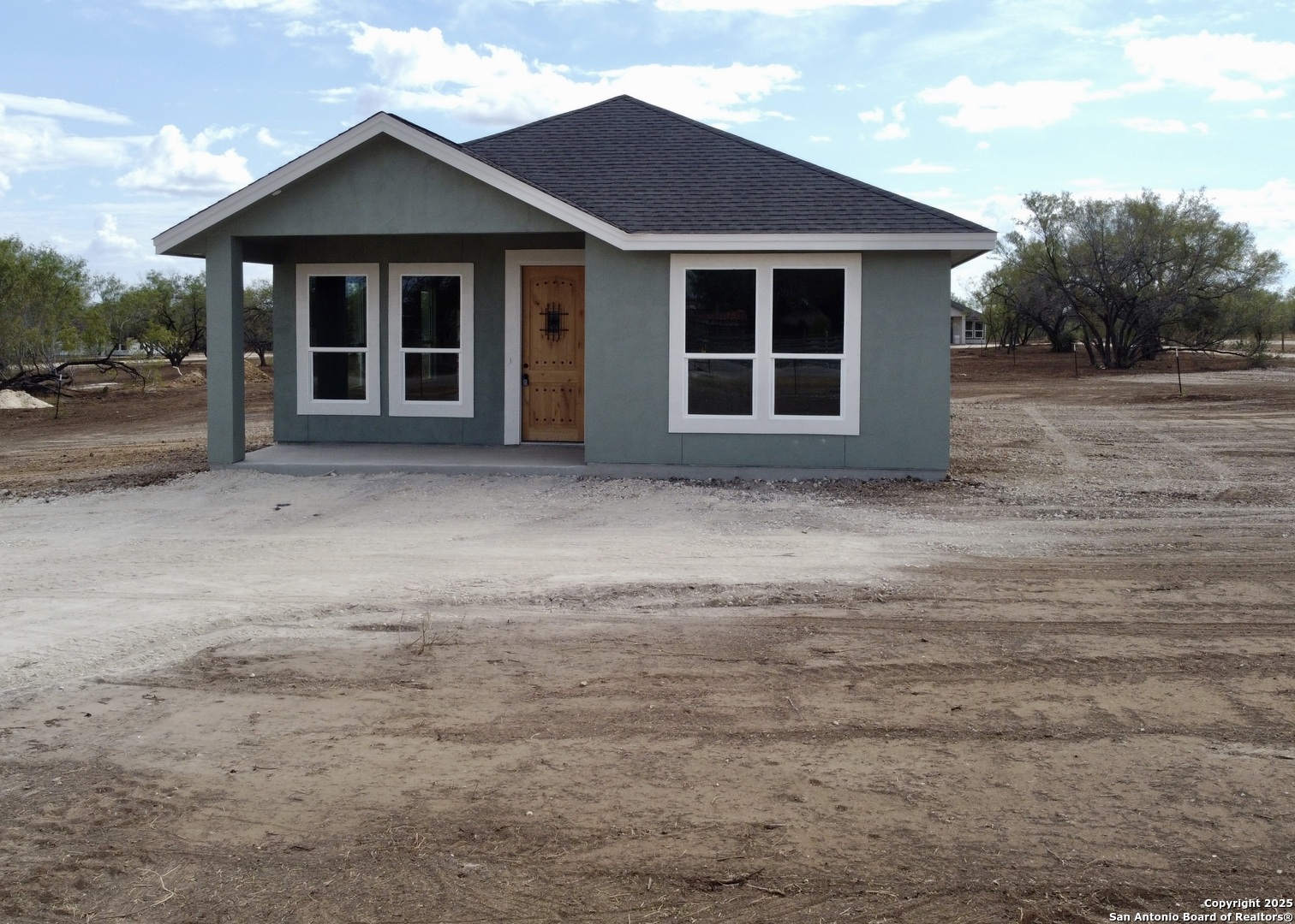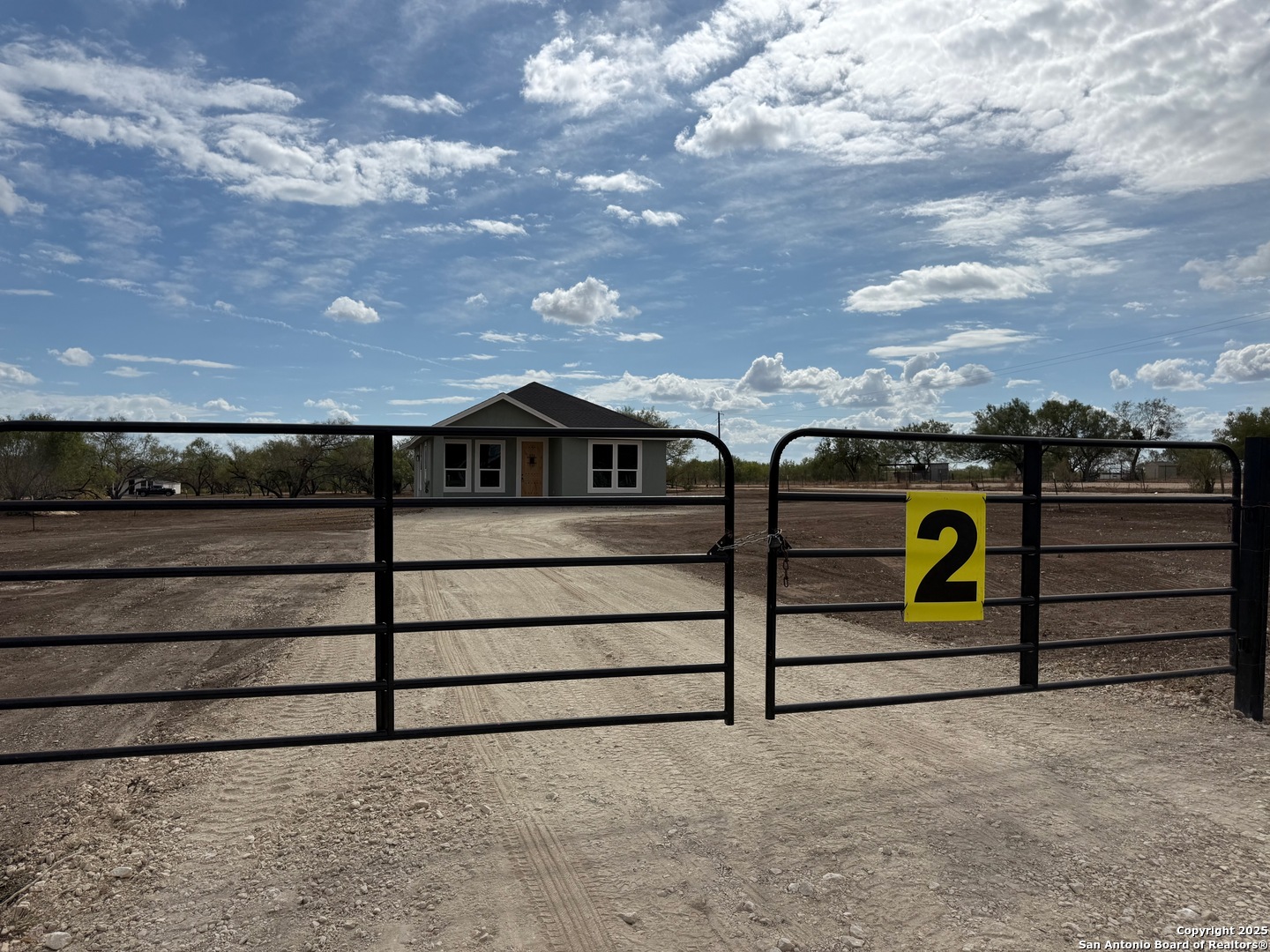 Discover the perfect blend of space, privacy, and convenience with this beautifully designed 3-bedroom, 2-bathroom home set on over 1 acres-just 10 minutes from Pleasanton and only 40 minutes from downtown San Antonio. Enjoy the freedom of no city permits and no city taxes while still being close to everything you need. The home features an open layout with no carpet throughout, making maintenance a breeze and ideal for allergy-sensitive buyers. The primary bedroom includes its own private bathroom, and the kitchen showcases custom cabinets with under-cabinet lighting and solid countertops. Whether you're looking to garden, build, or simply enjoy wide-open spaces, this property offers the privacy and flexibility you've been searching for.